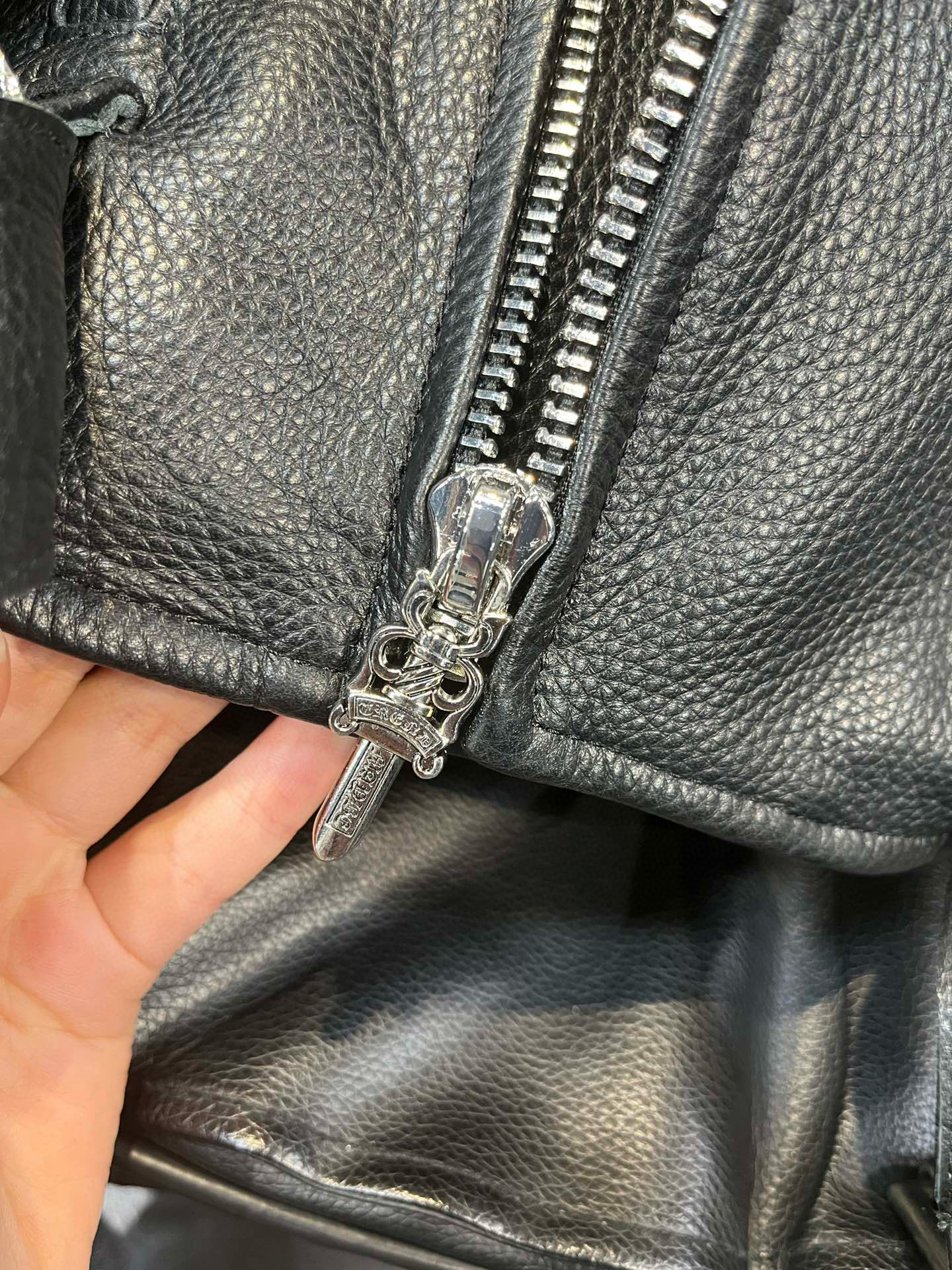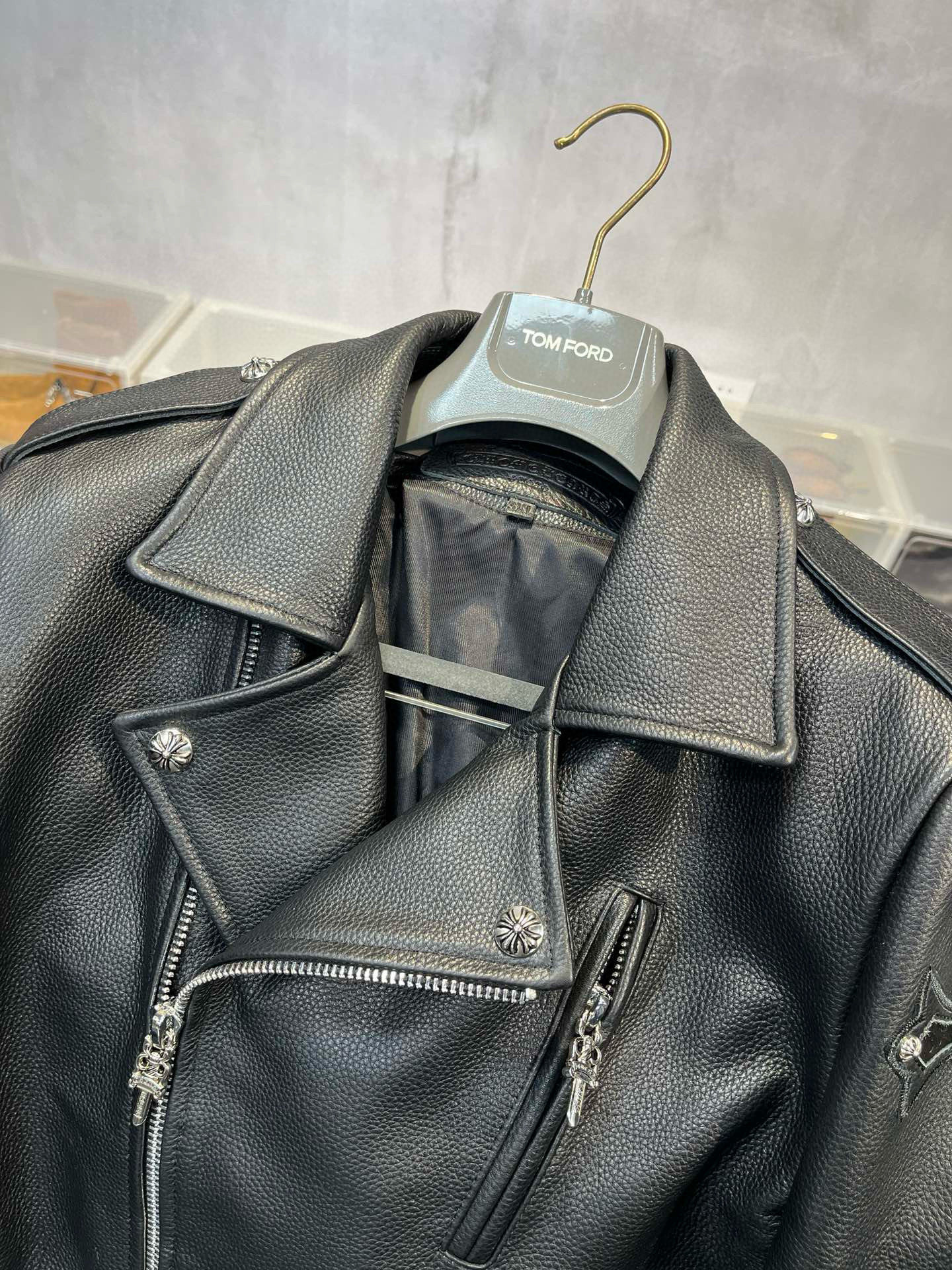 NIGO Chrome Hearts Men's Spring And Autumn Black Lapel Zipper Long Sleeve Fitted Cross Leather Coat Jacket #nigo98699
