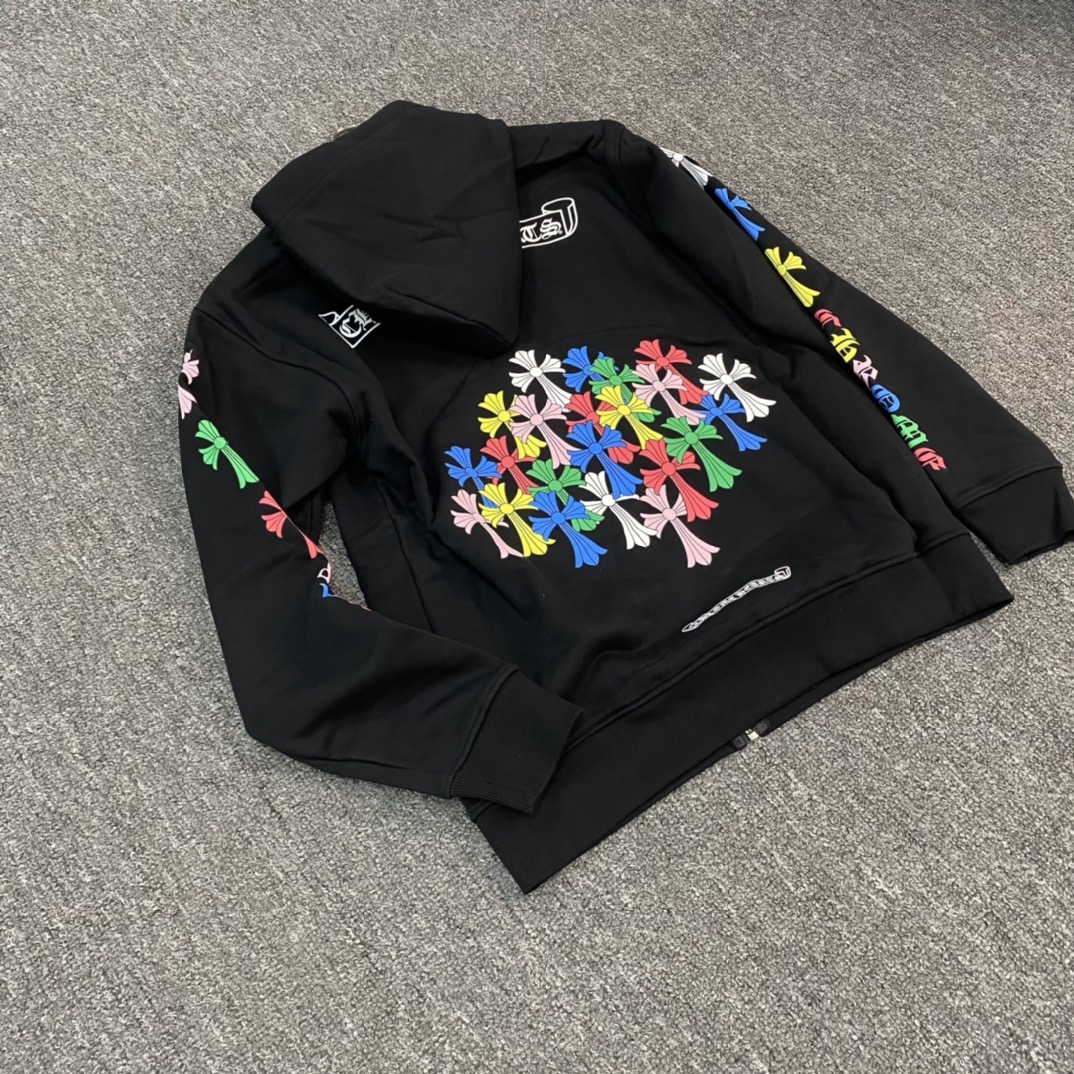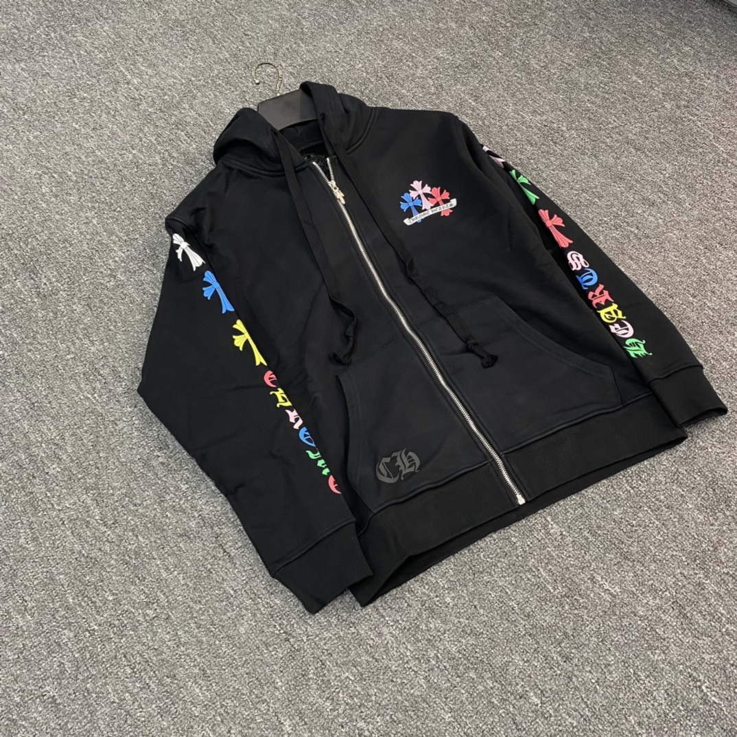 NIGO Chrome Hearts Men's Spring and Fall Black Logo Printed Zipper Long Sleeve Hooded Jacket #nigo72485