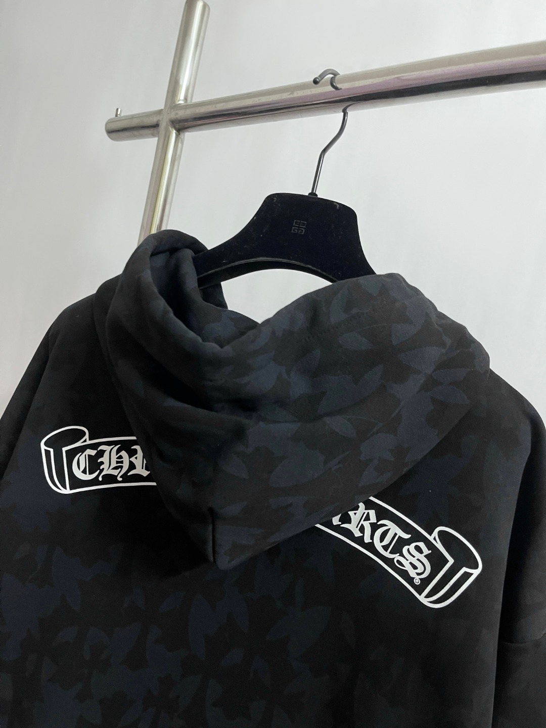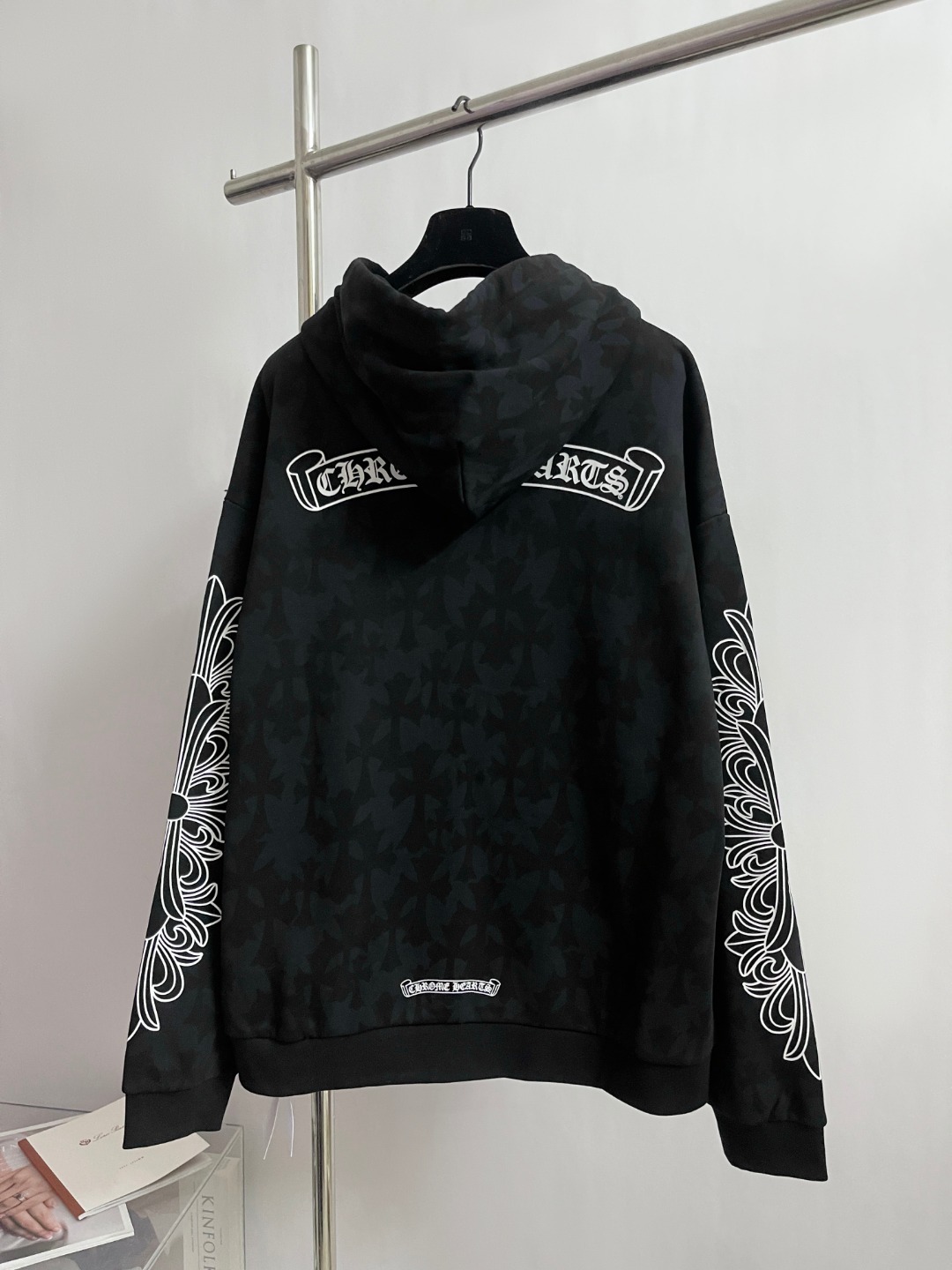 NIGO Chrome Hearts Men's Spring and Fall Black Logo Printed Zipper Long Sleeve Hooded Jacket #nigo73992