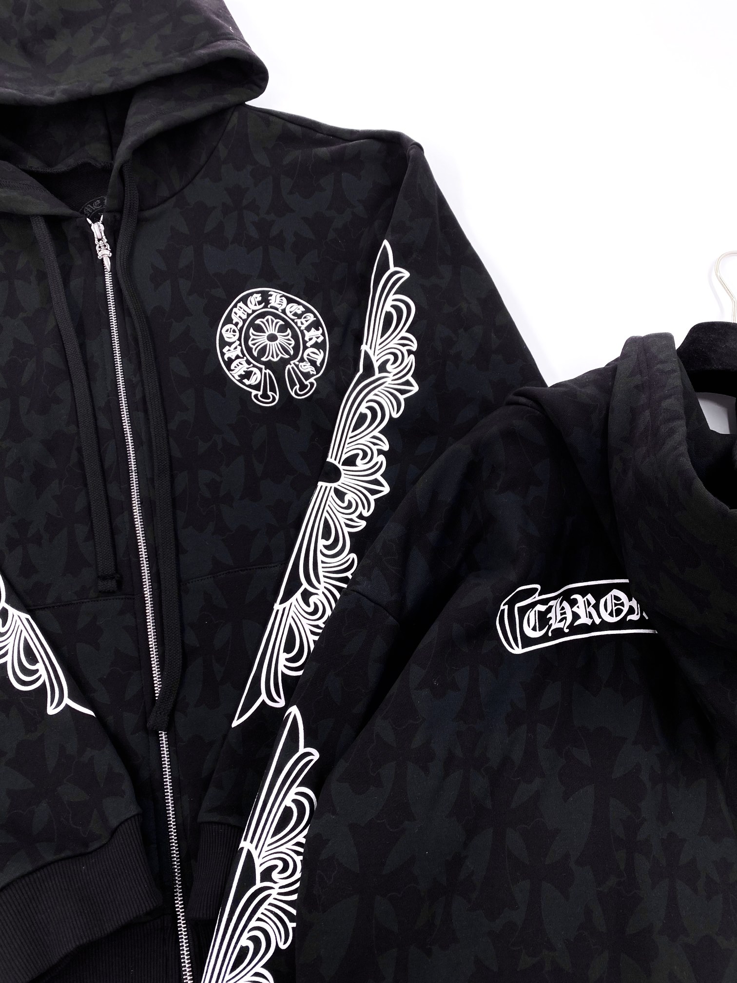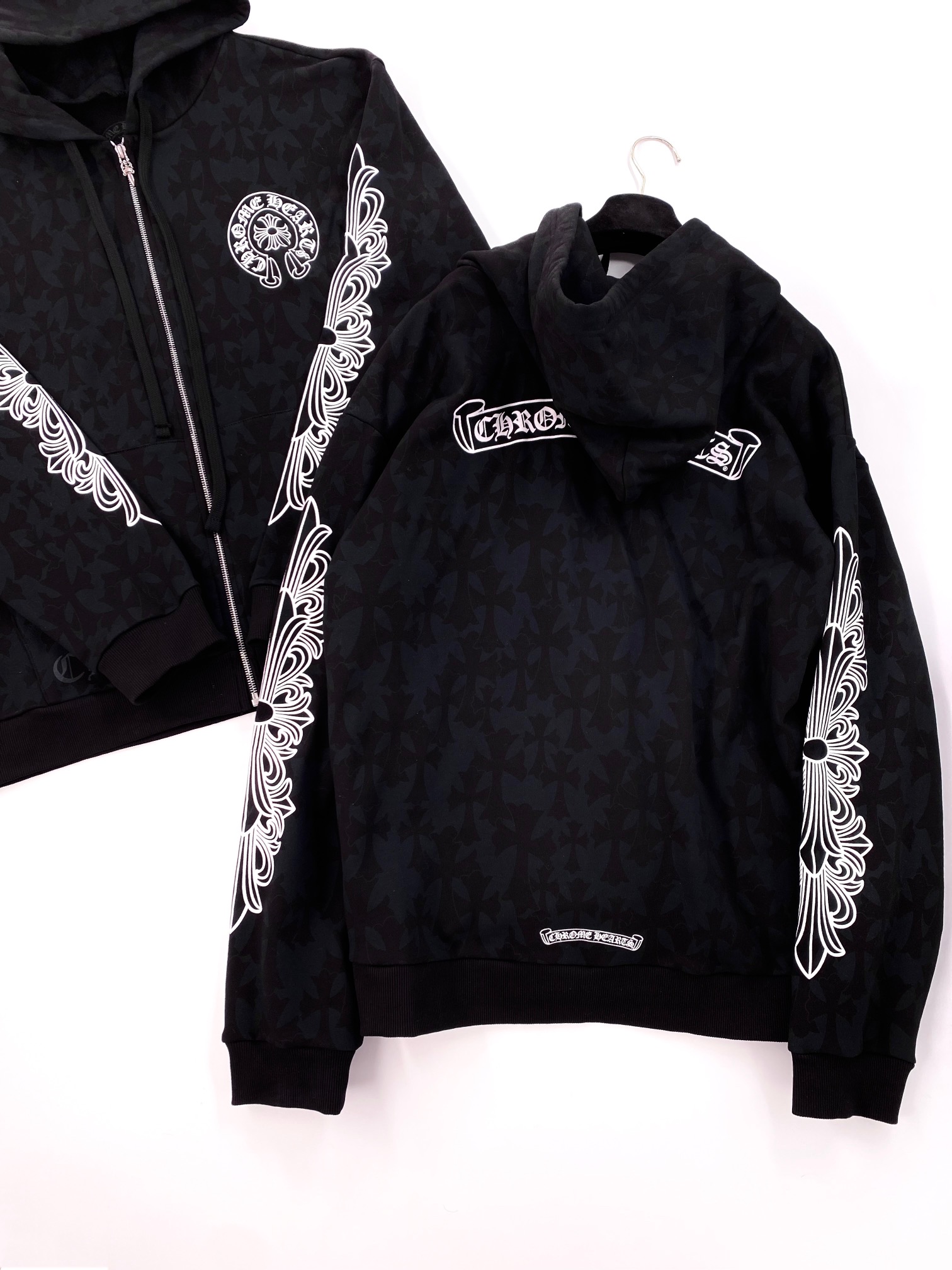 NIGO Chrome Hearts Men's Spring and Fall Black Logo Printed Zipper Long Sleeve Hooded Jacket #nigo99847