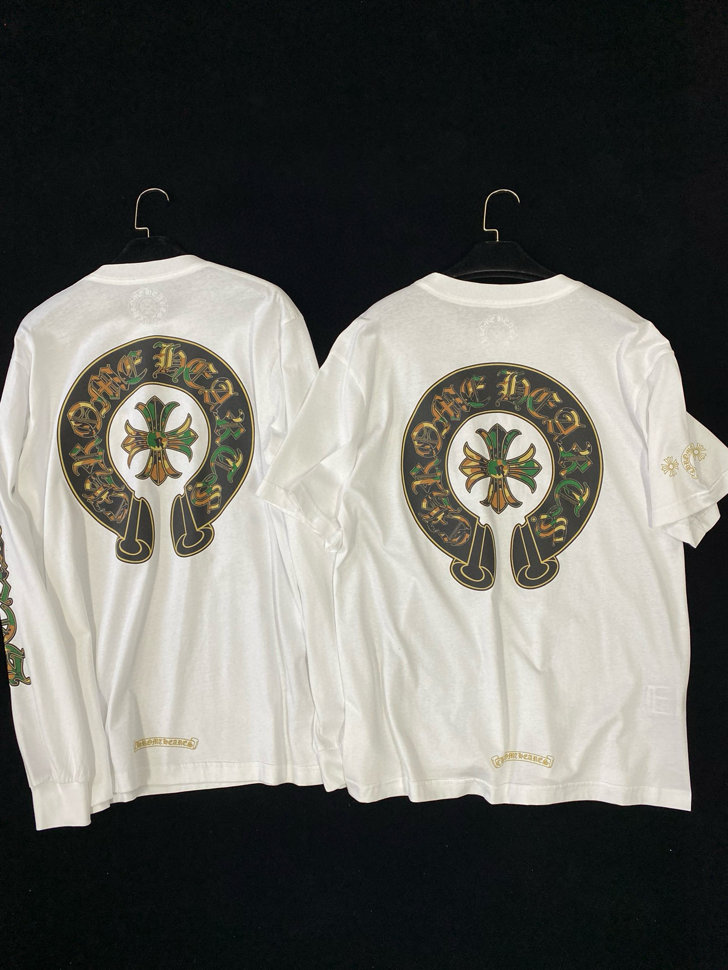 NIGO Chrome Hearts Men's Spring, Summer And Fall Logo Print Casual Round Neck White Fitted Straight Long Sleeve Short Sleeve T-Shirt #nigo98695