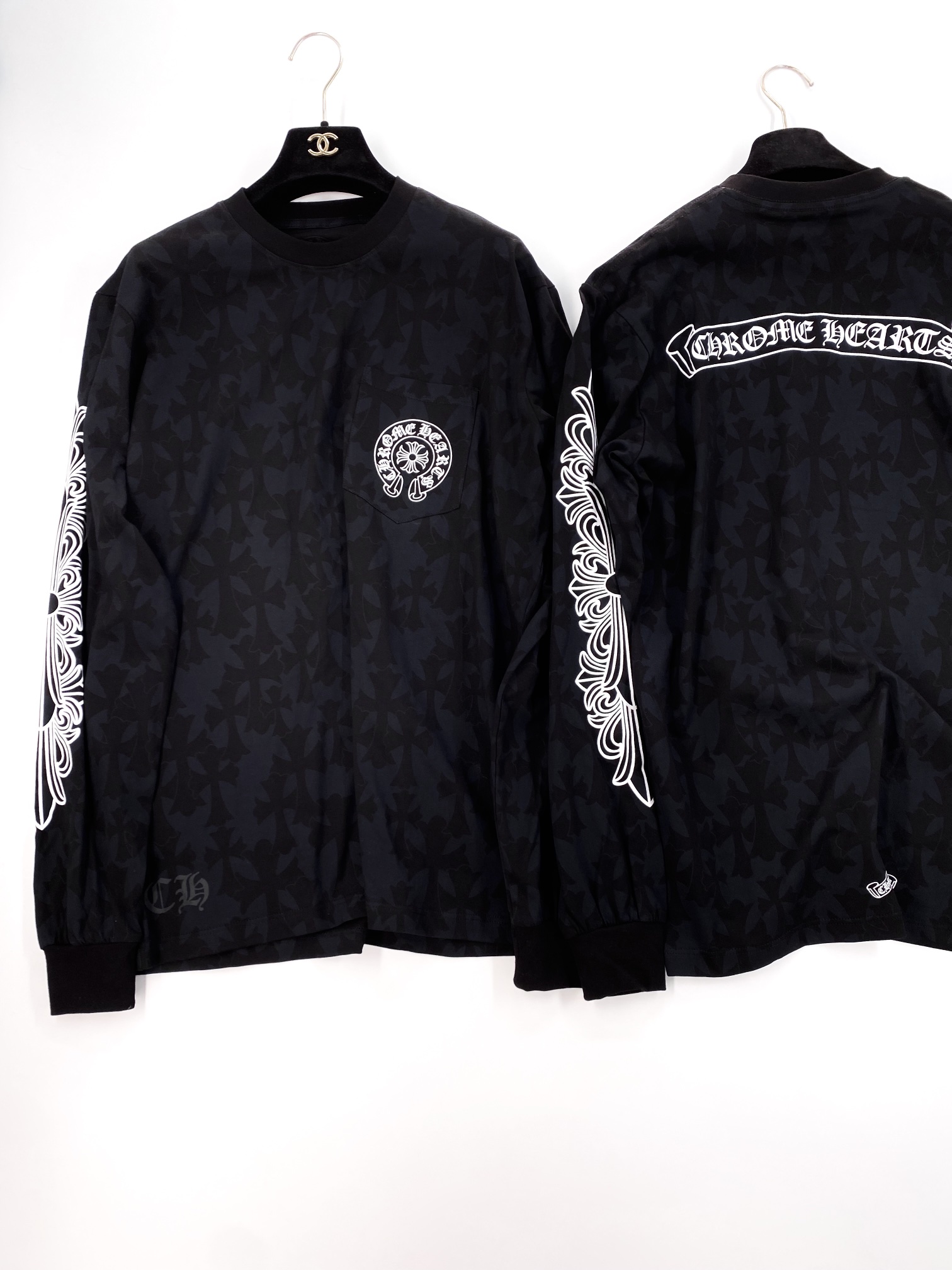 NIGO Chrome Hearts Men's Summer Black Logo Print Round Neck Straight Long Sleeve T-Shirt #nigo99845