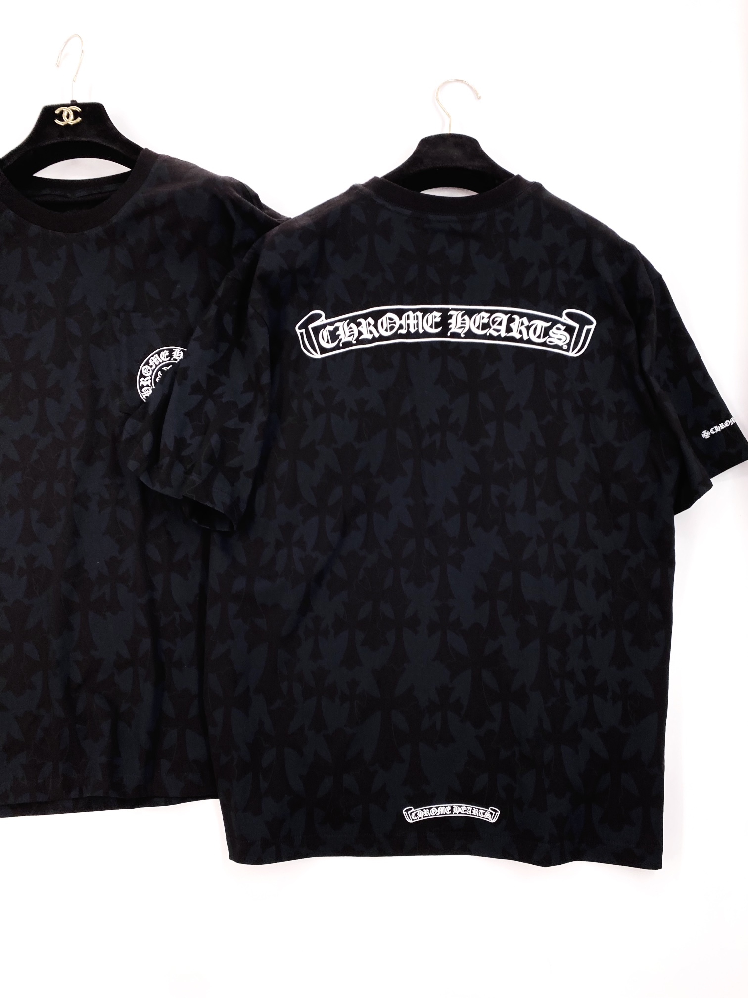 NIGO Chrome Hearts Men's Summer Black Logo Printed Round Neck Straight Short Sleeve T-Shirt #nigo99844