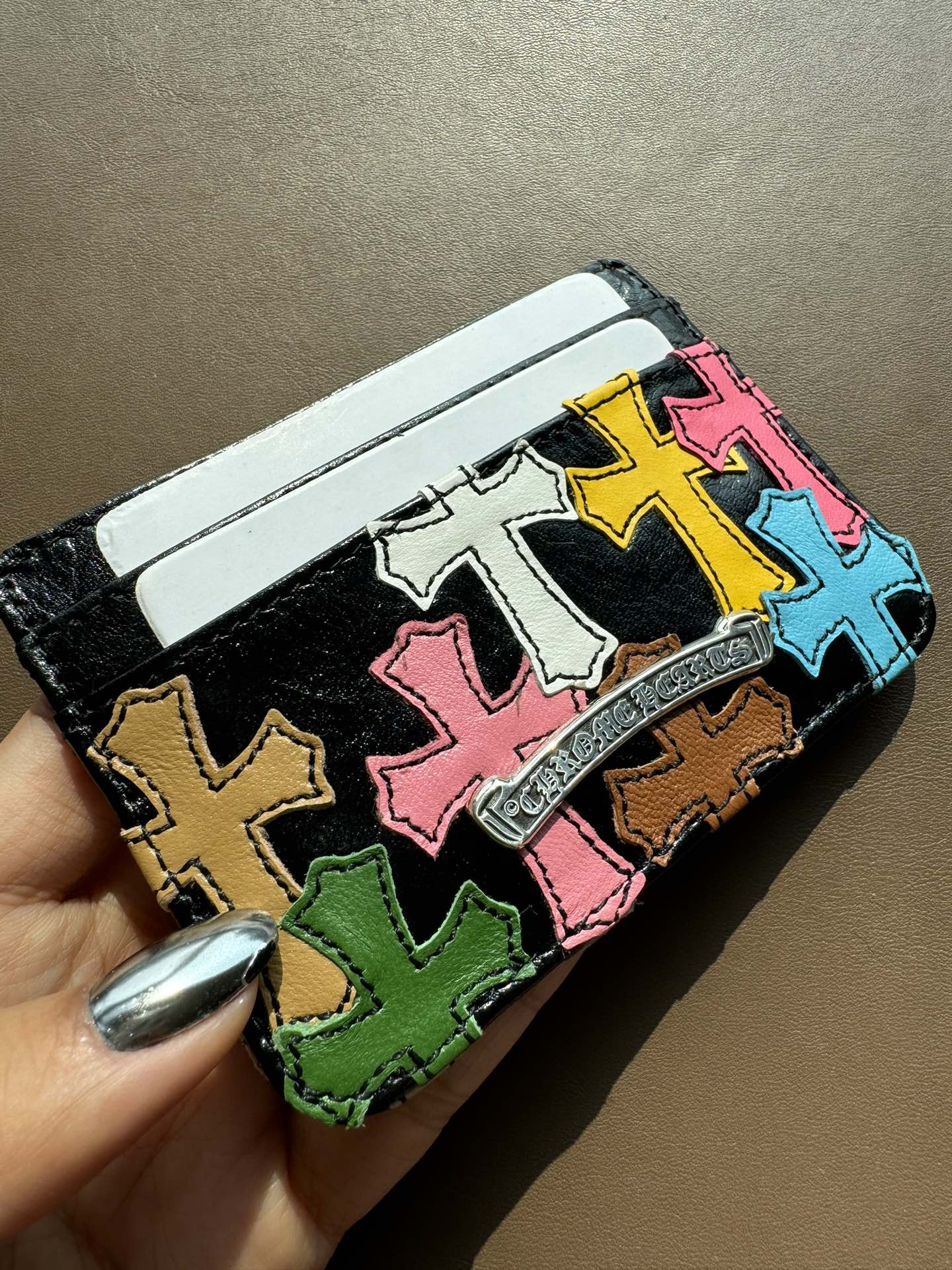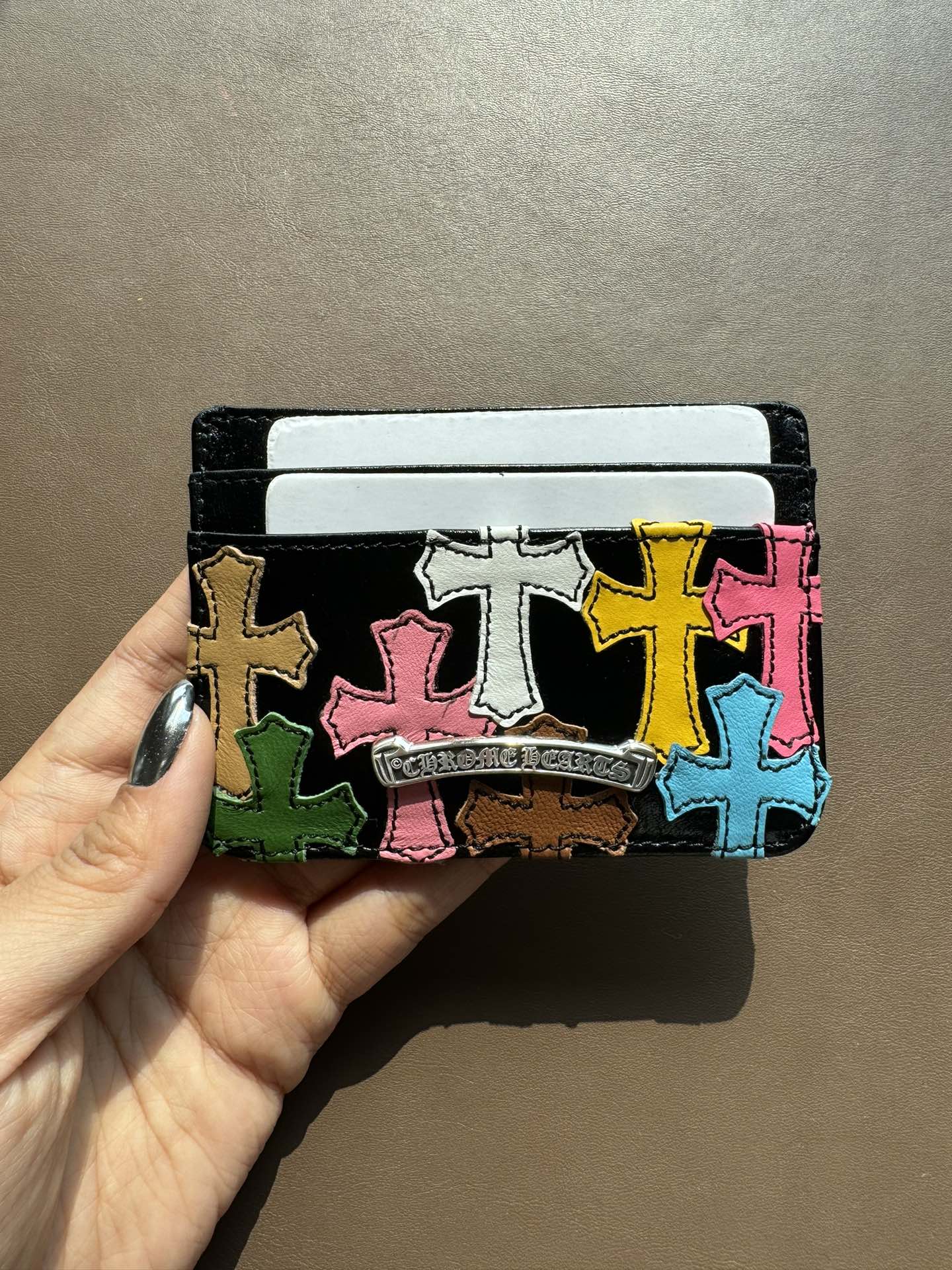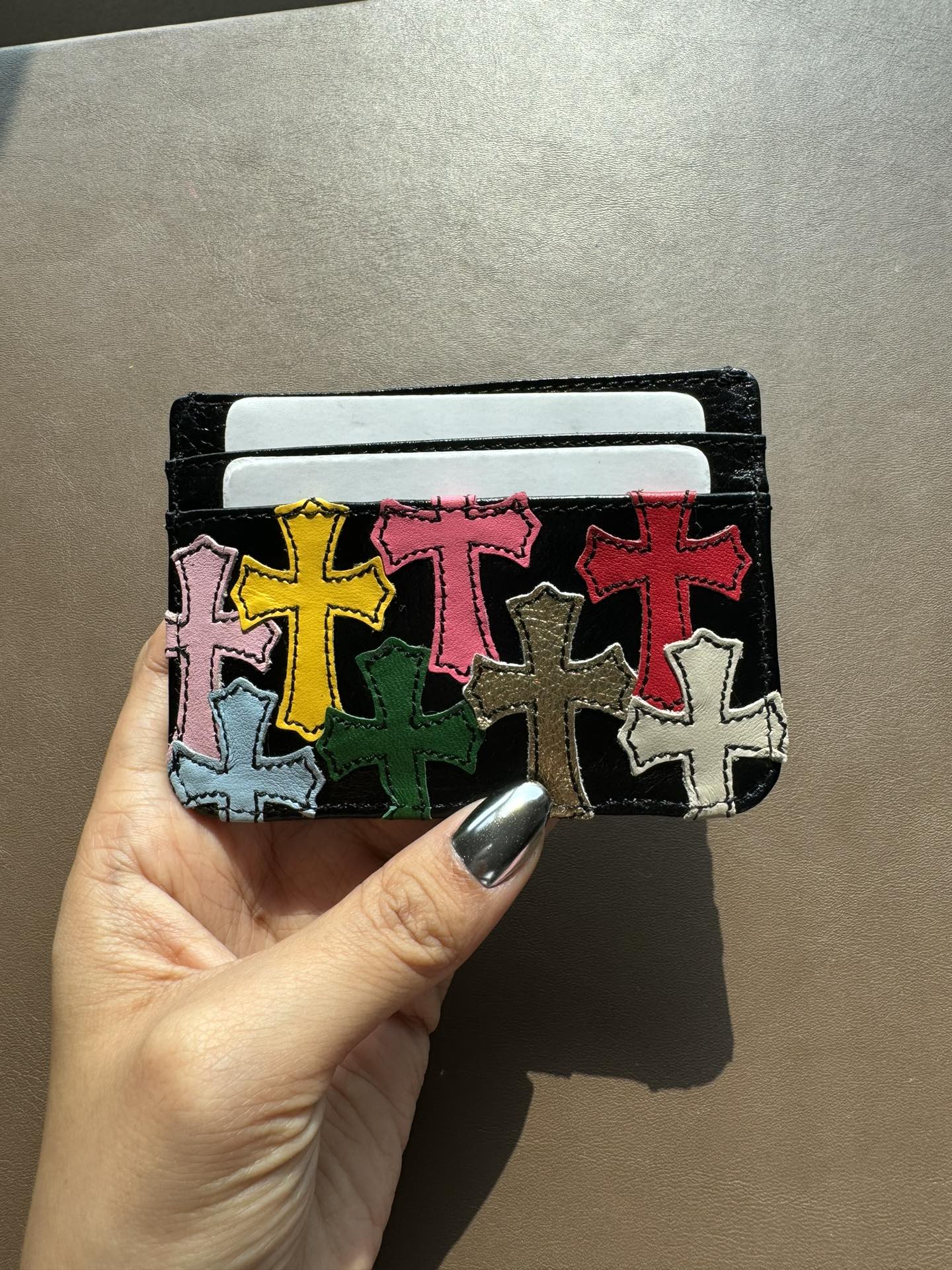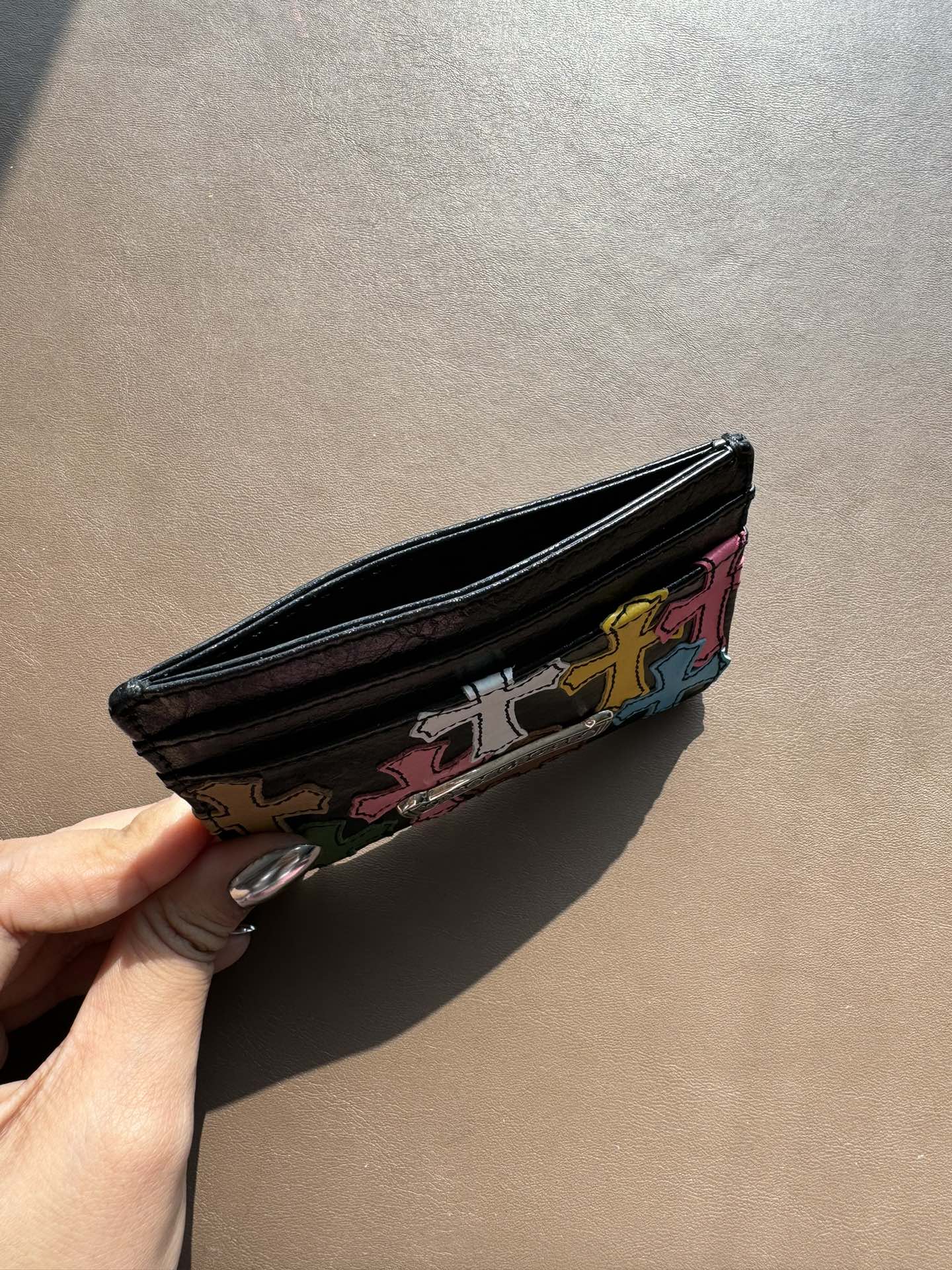 NIGO Chrome Hearts Men's Women's Colourful Cross Card Holder Purses Coin Purse Black Leather Fashion High Street Trend Personalised Wallet Bags Bag #nigo81255