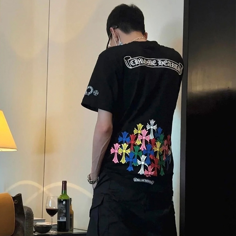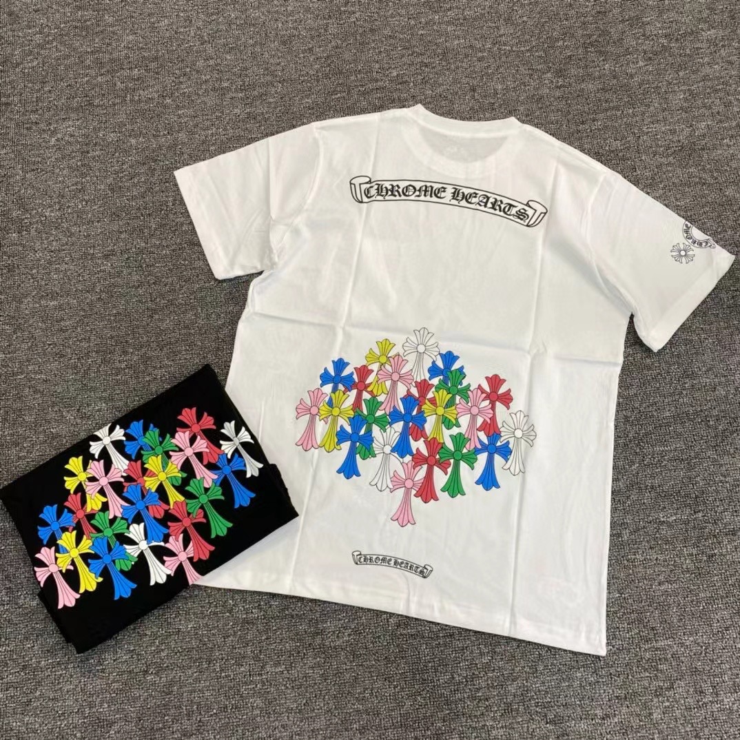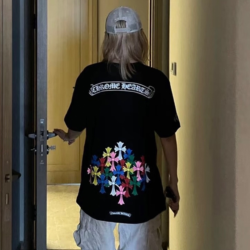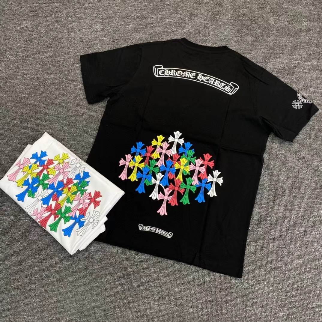 NIGO Chrome Hearts Men's Women's Summer Tide Sanskrit Letters Colourful Cross Logo Short-Sleeved T-Shirt Round Neck Short-Sleeved Casual T-Shirt #nigo81147