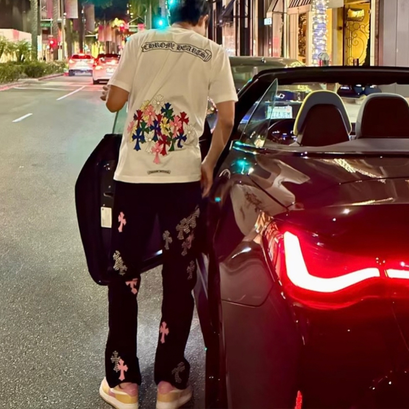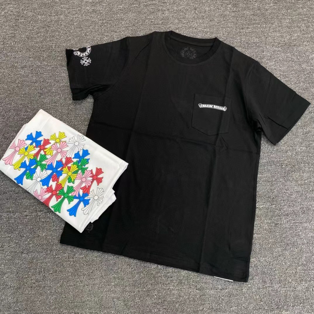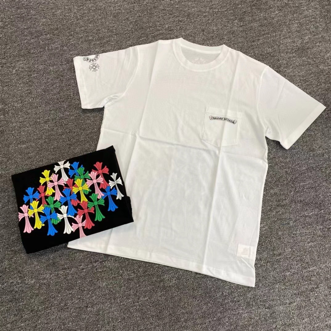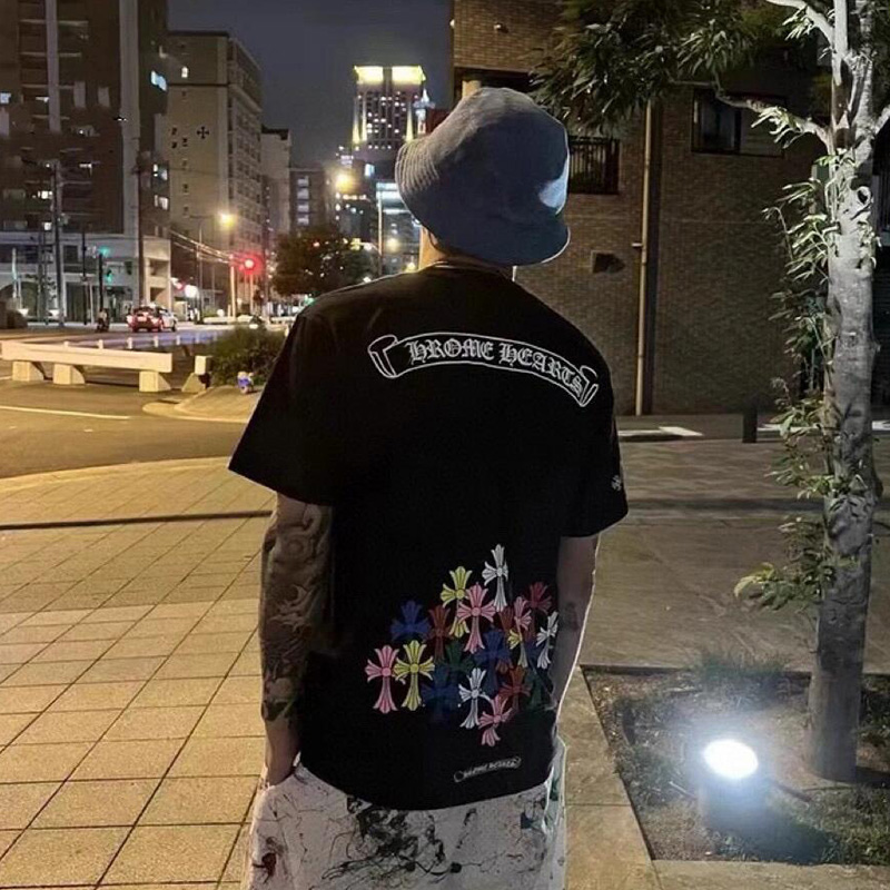 NIGO Chrome Hearts Men's Women's Summer Tide Sanskrit Letters Colourful Cross Logo Short-Sleeved T-Shirt Round Neck Short-Sleeved Casual T-Shirt #nigo81147