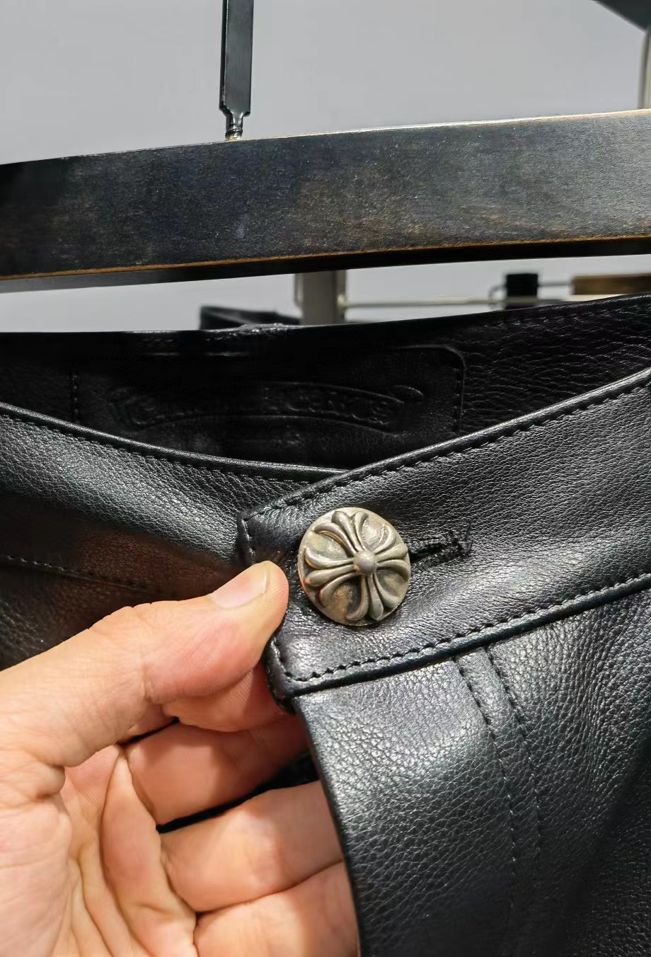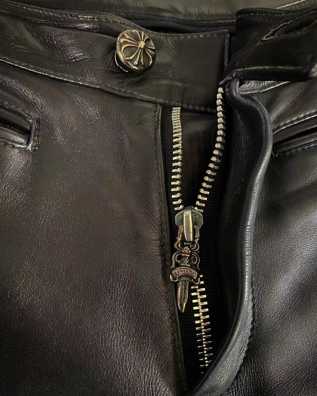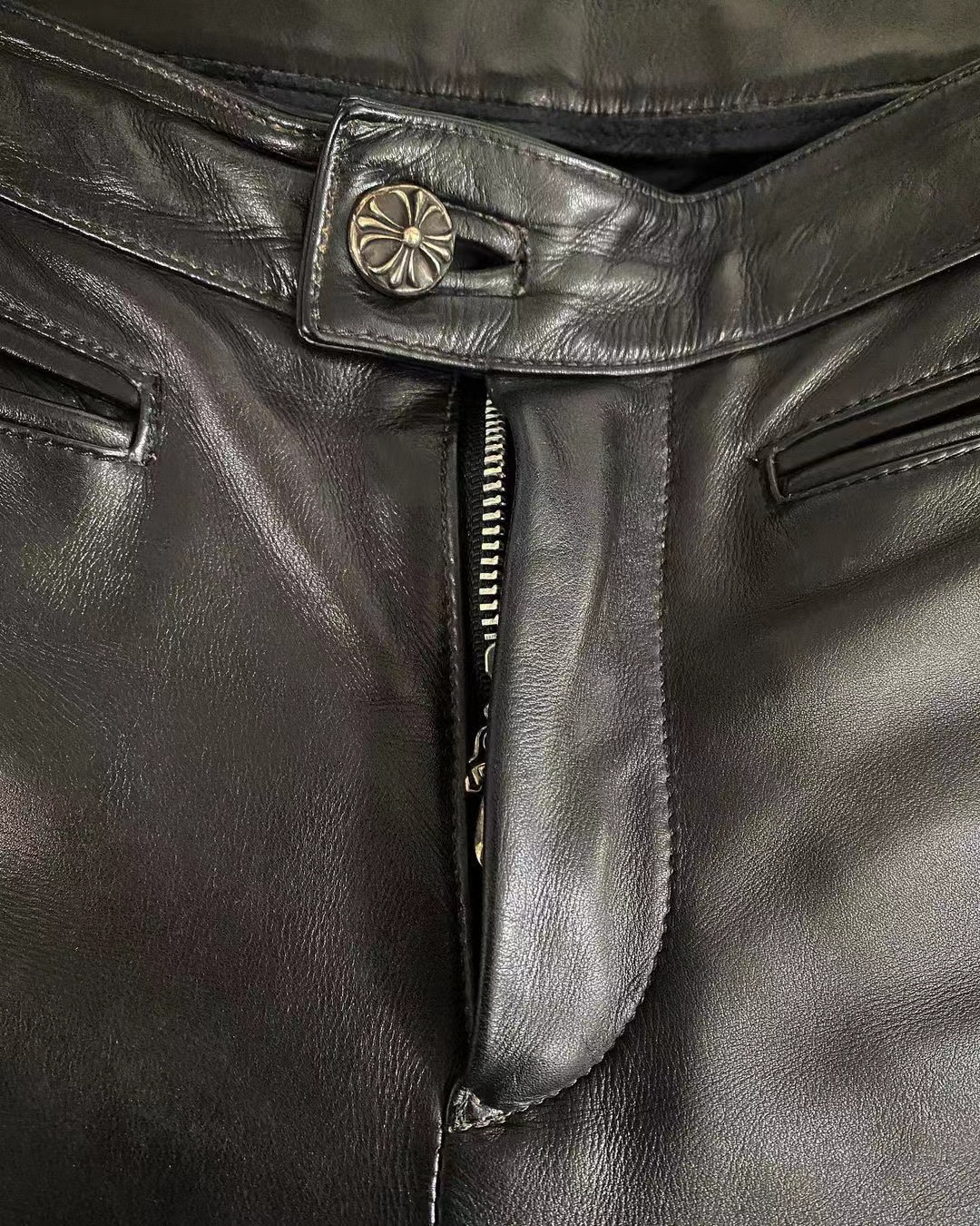 NIGO Chrome Hearts Mens Black Leather Slim Fit Trousers Pants #nigo96922