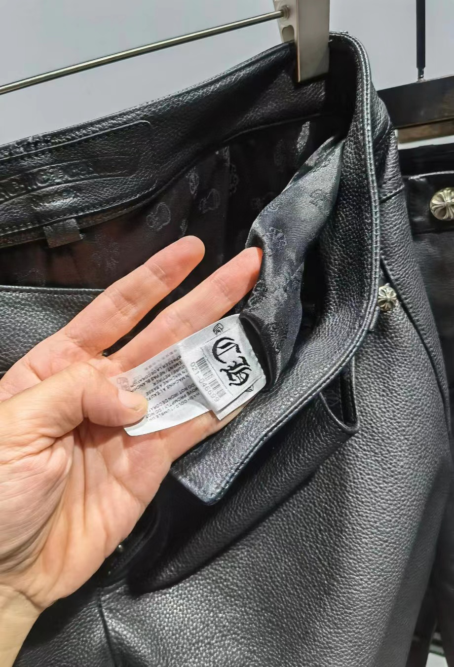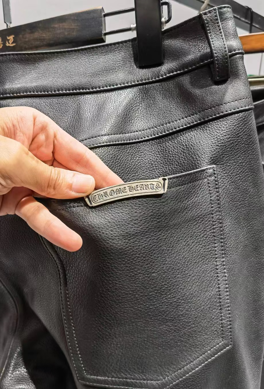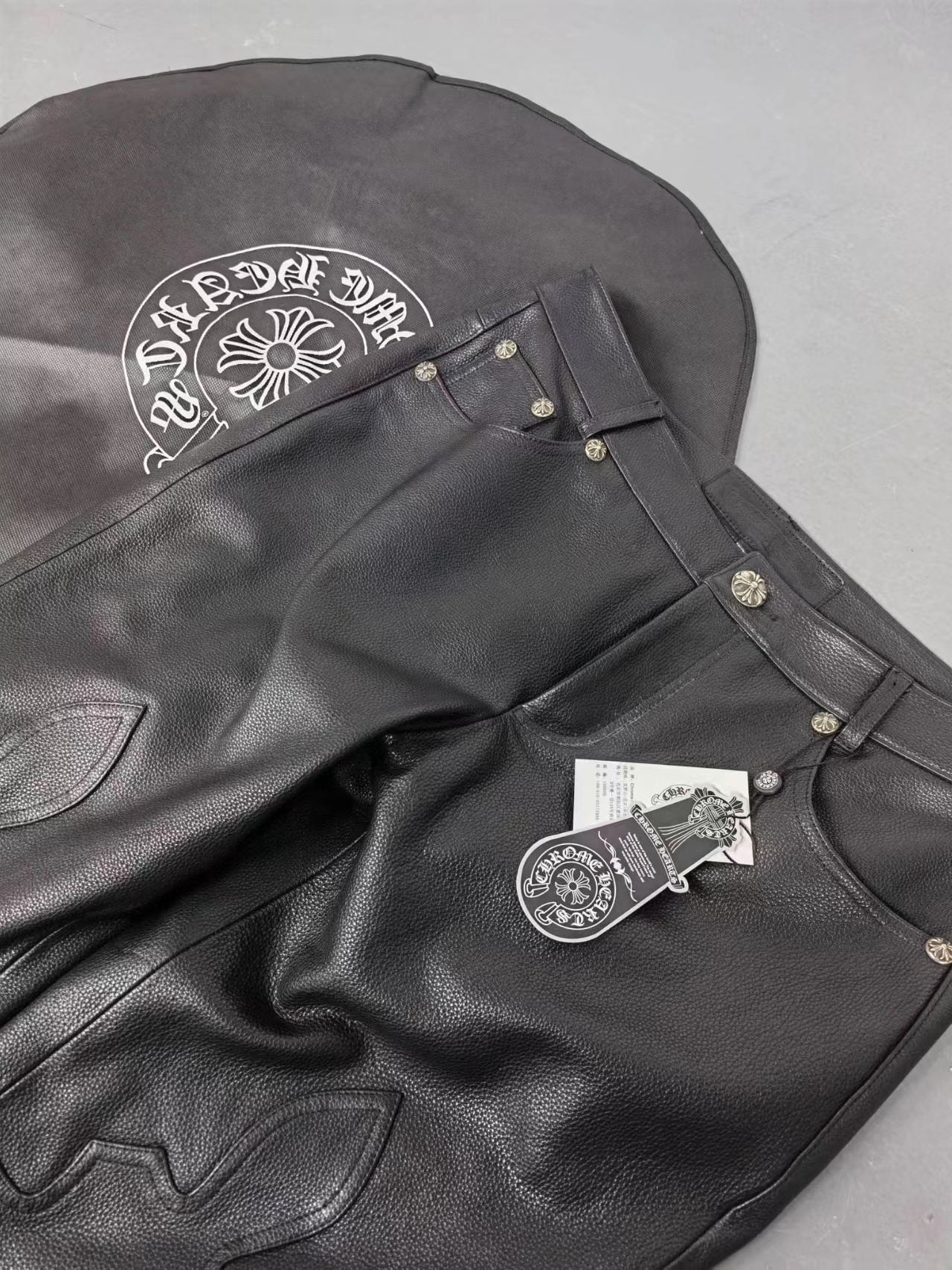 NIGO Chrome Hearts Mens Black Leather Slim Fit Trousers Pants #nigo96922