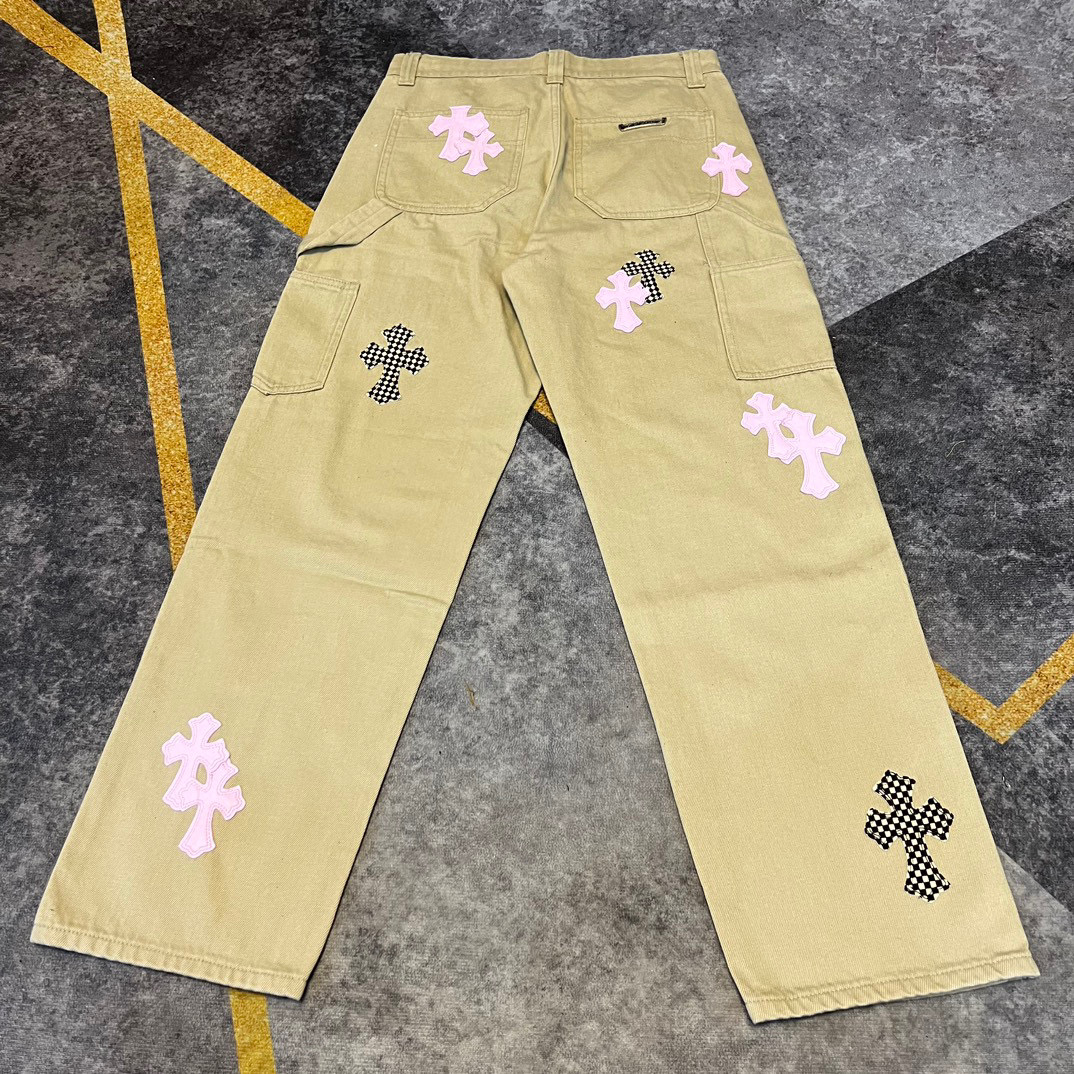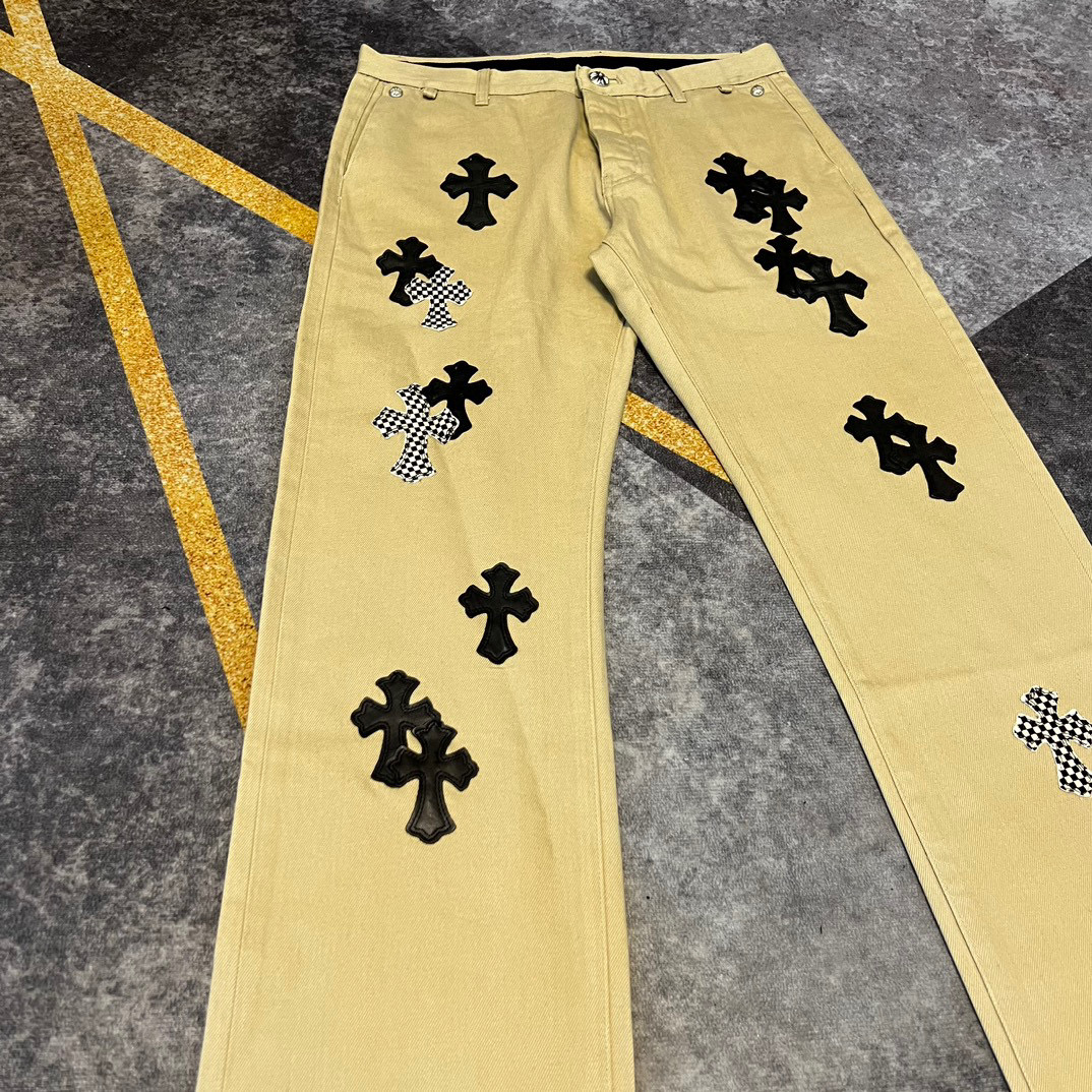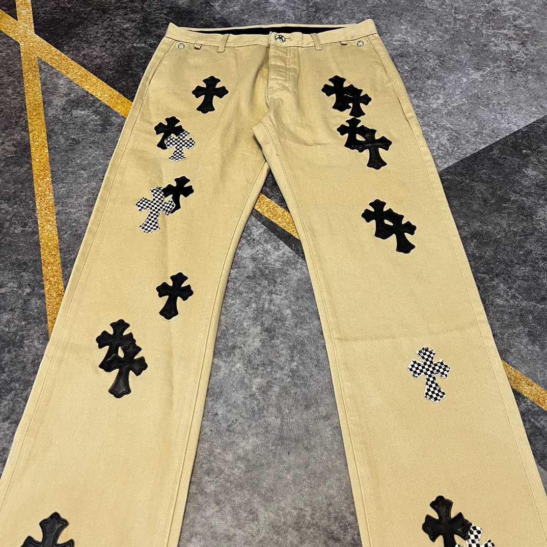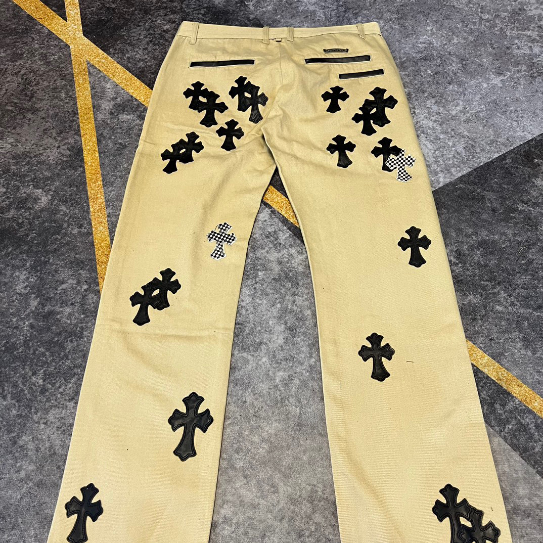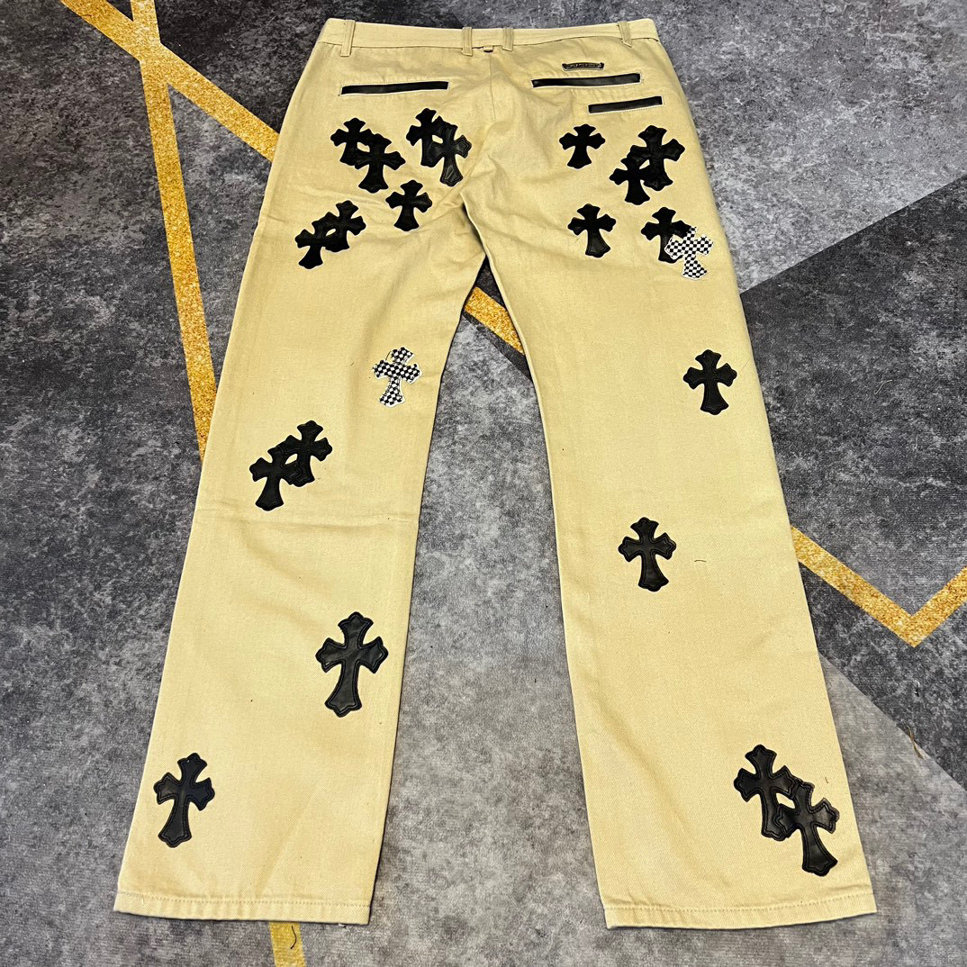 NIGO Chrome Hearts Patchwork Leather Cross Embroidered Straight Leg Aged High Street Loose Jeans Pants #nigo96918