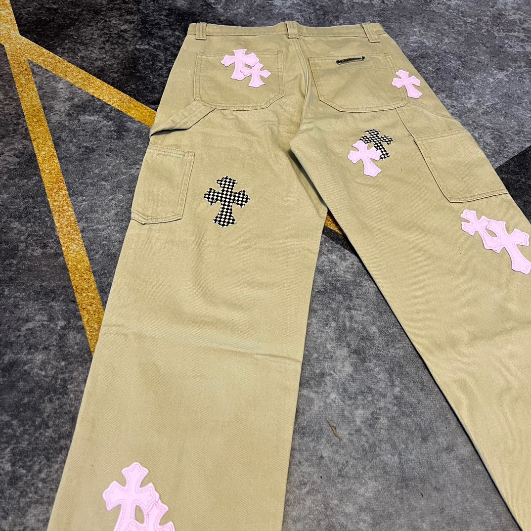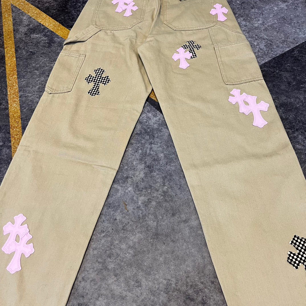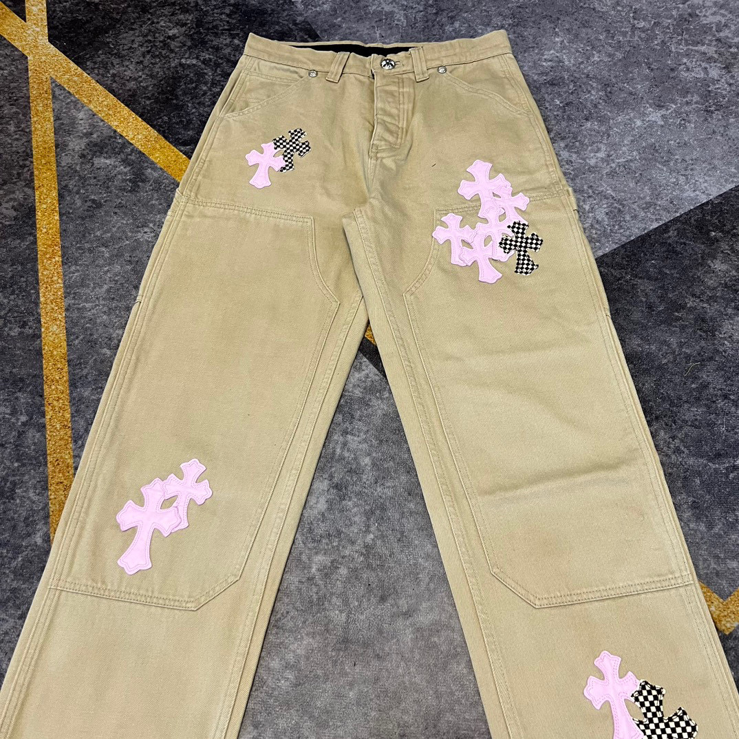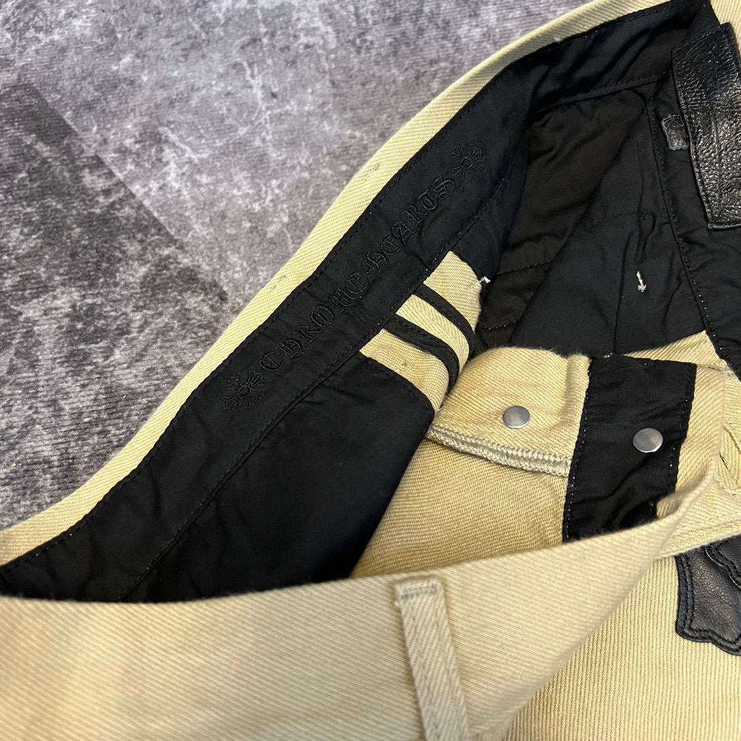 NIGO Chrome Hearts Patchwork Leather Cross Embroidered Straight Leg Aged High Street Loose Jeans Pants #nigo96918