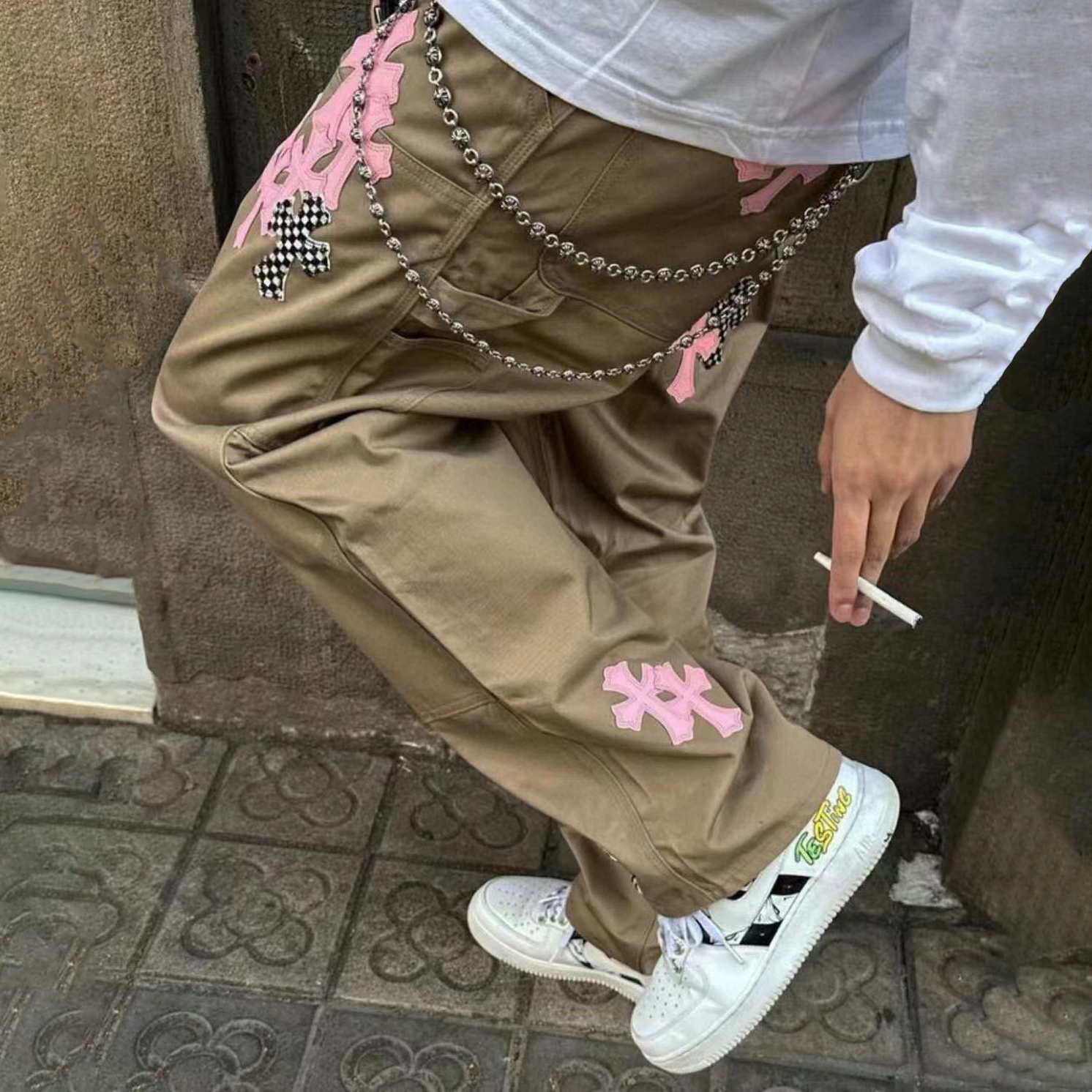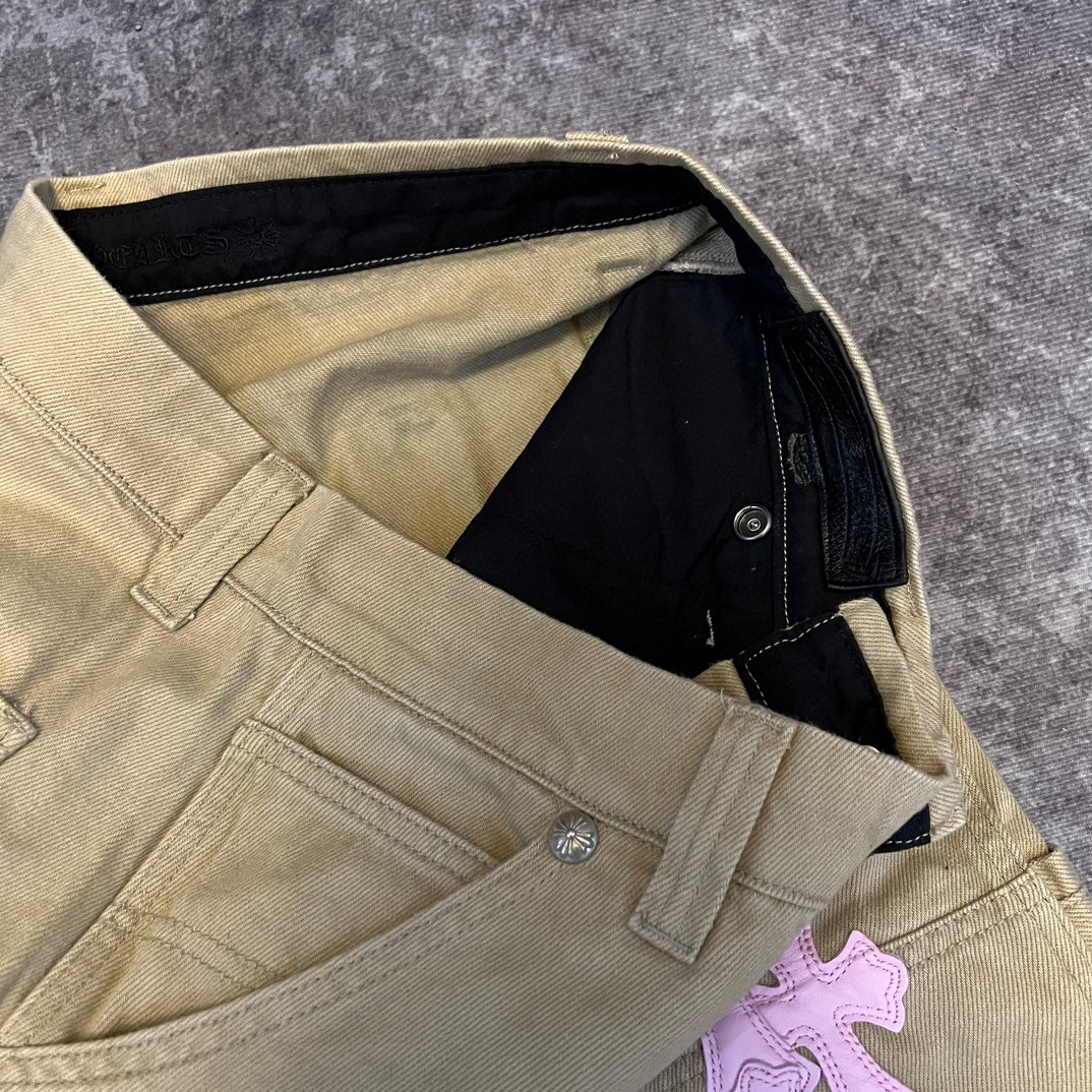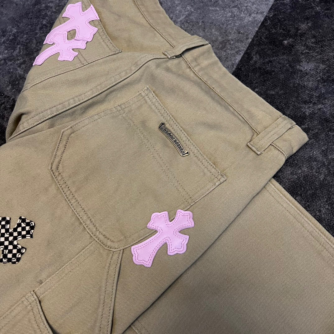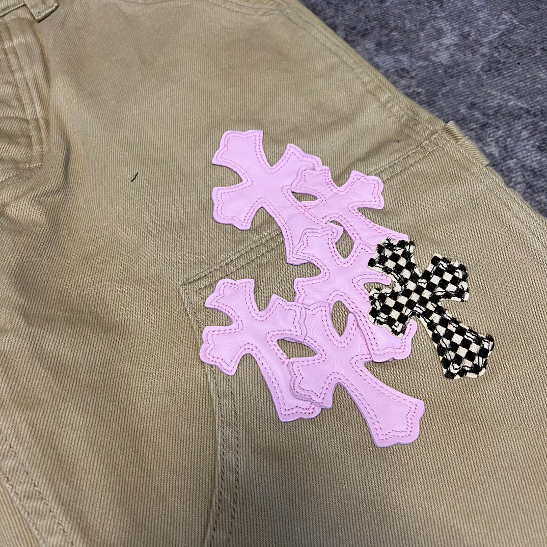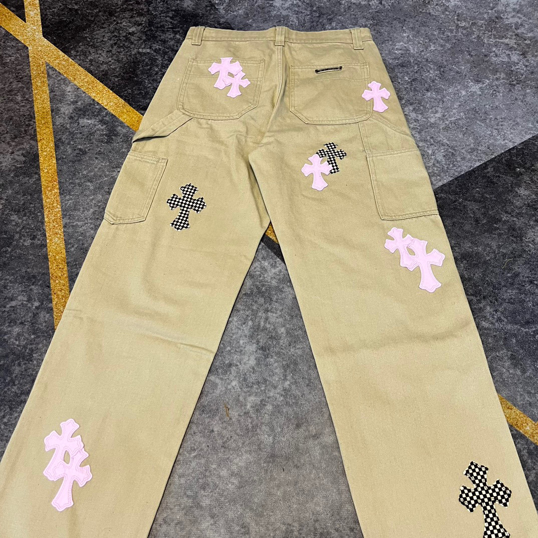 NIGO Chrome Hearts Patchwork Leather Cross Embroidered Straight Leg Aged High Street Loose Jeans Pants #nigo96918