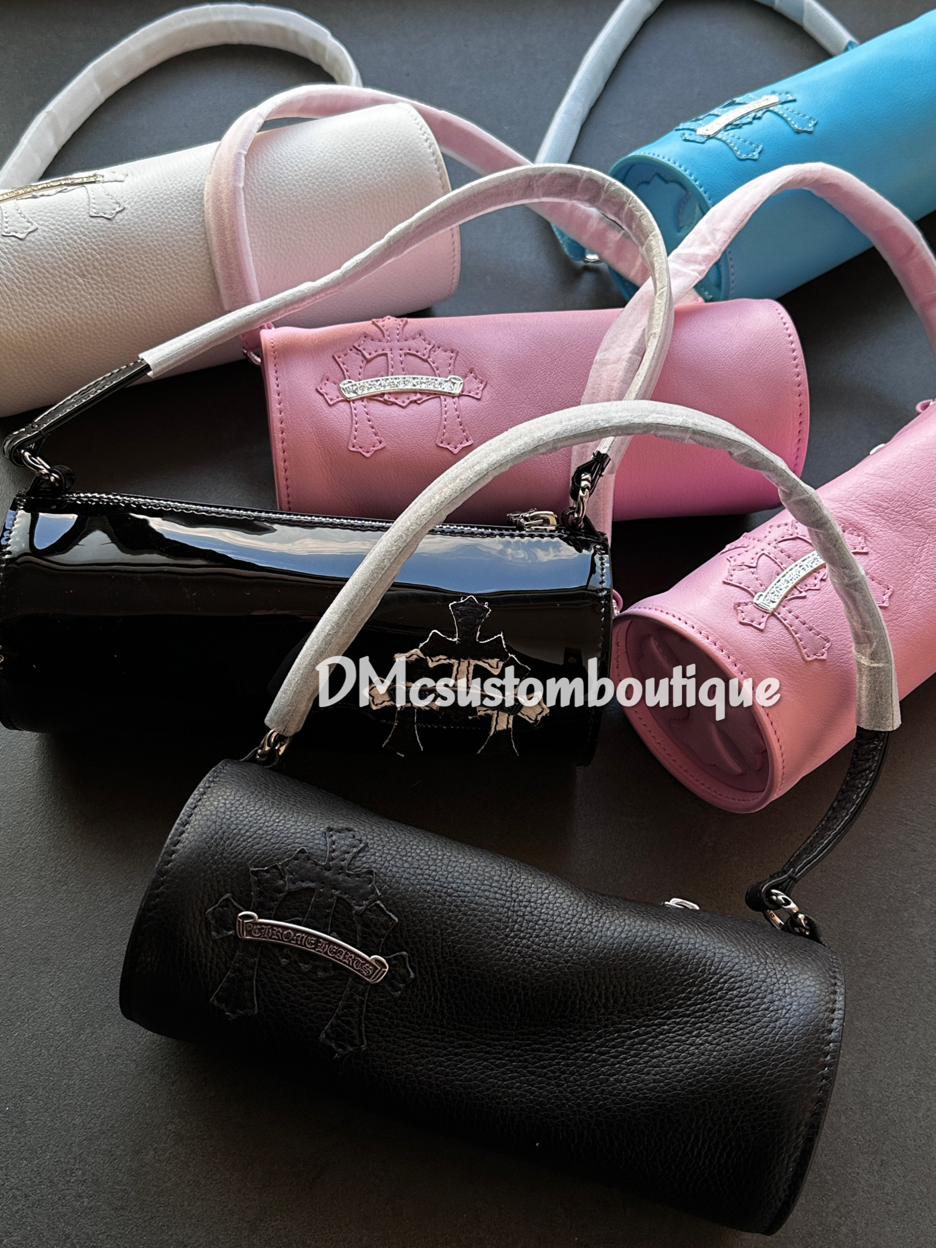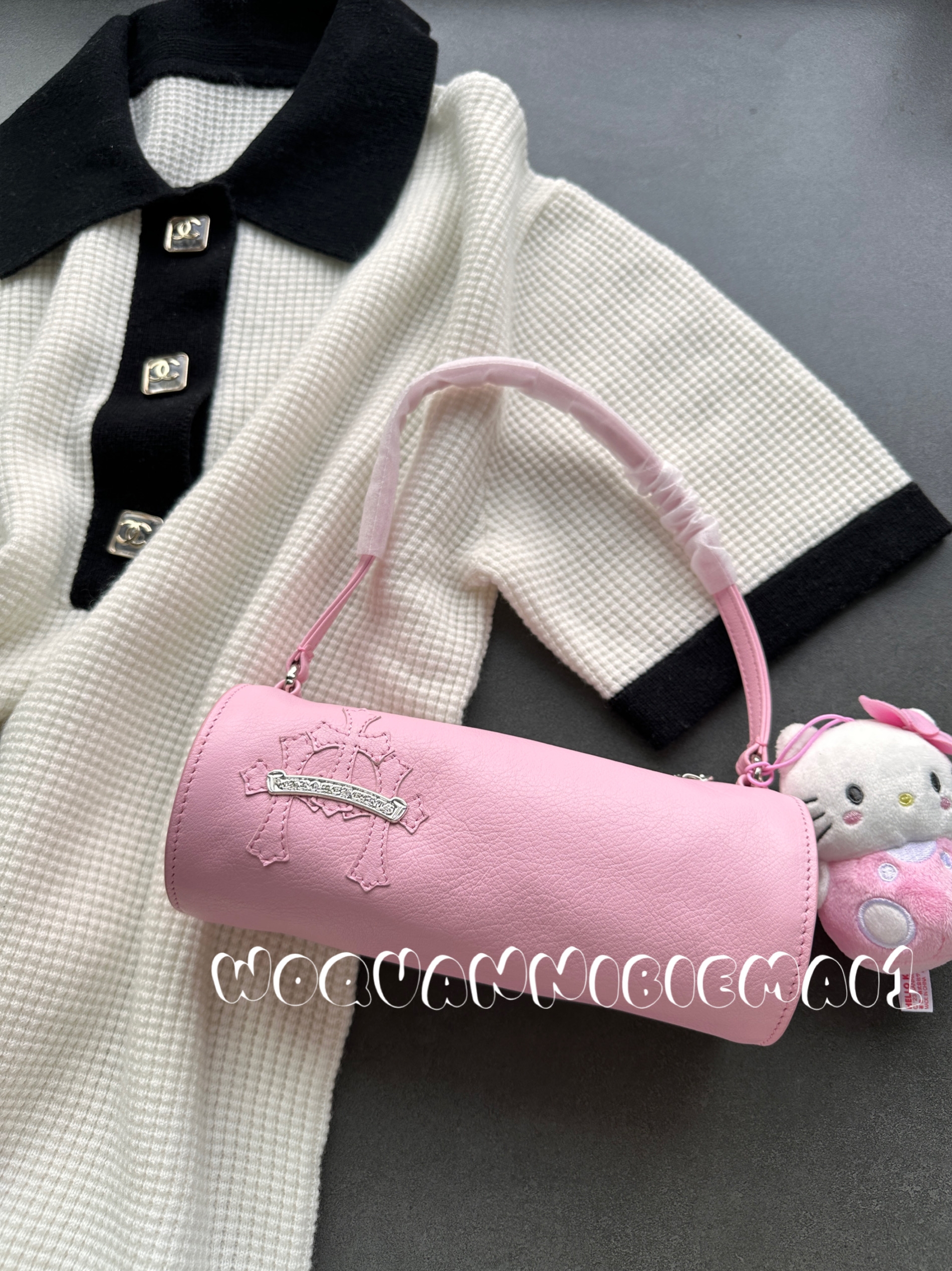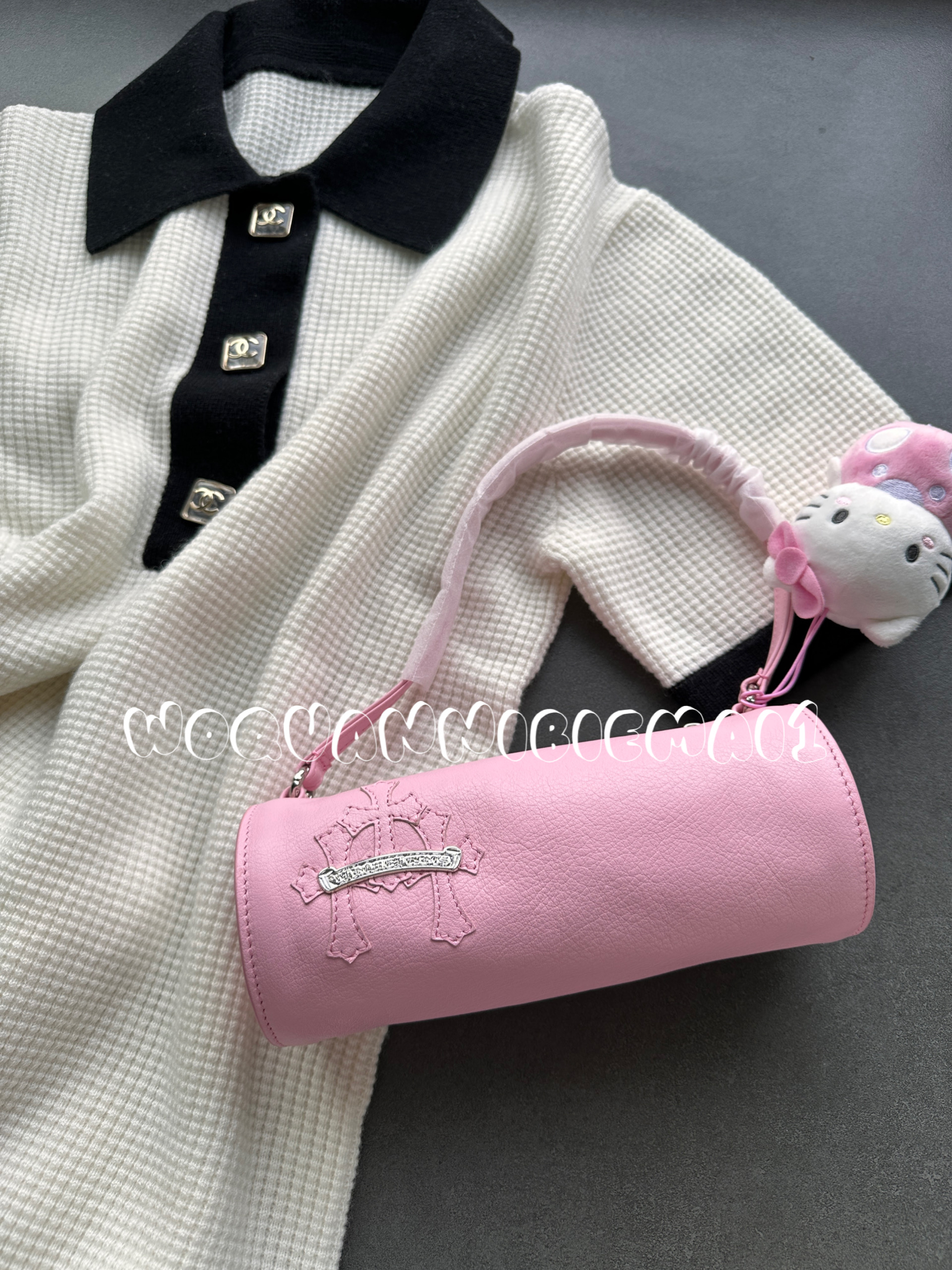 NIGO Chrome Hearts Women's Leather Label Cylinder Underarm Bag Tote Shoulder Bags #nigo99223