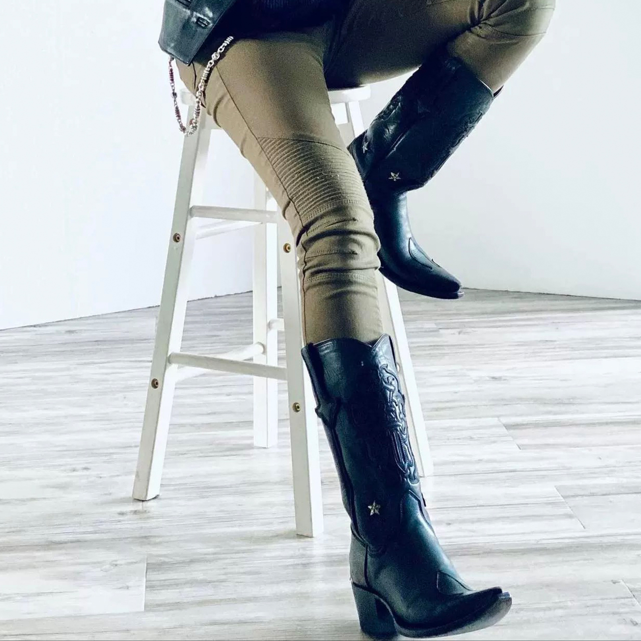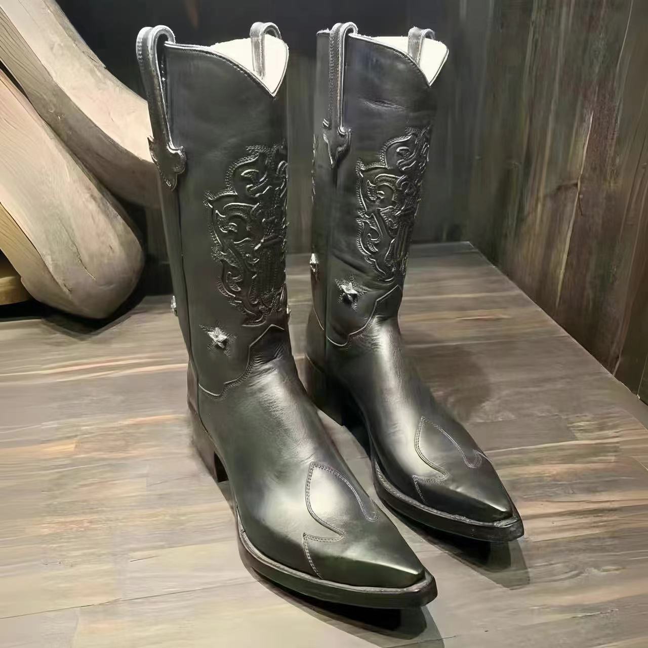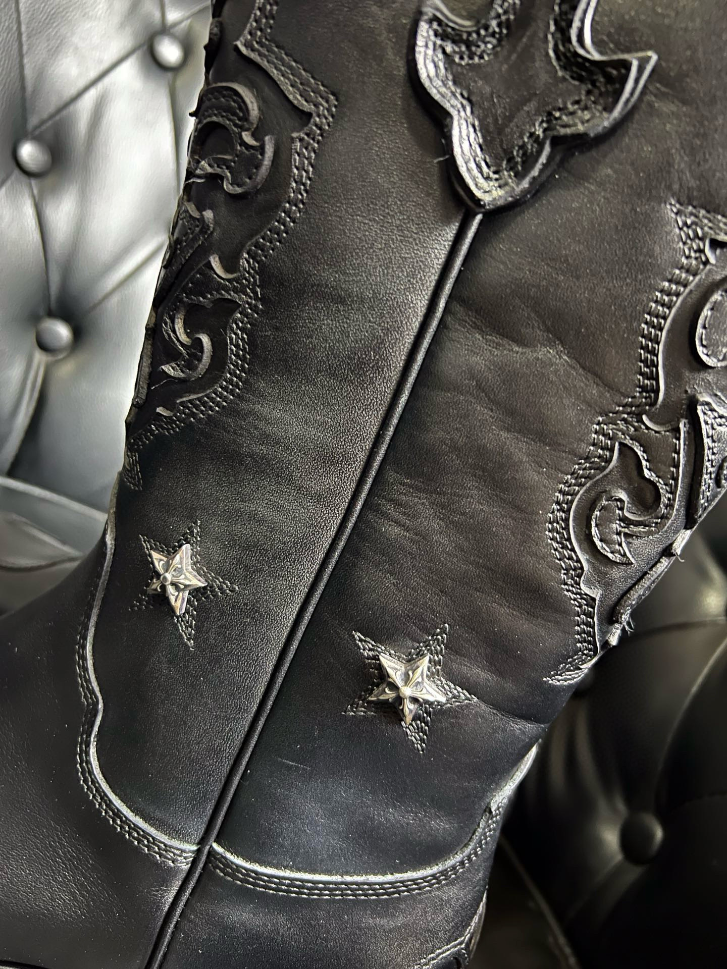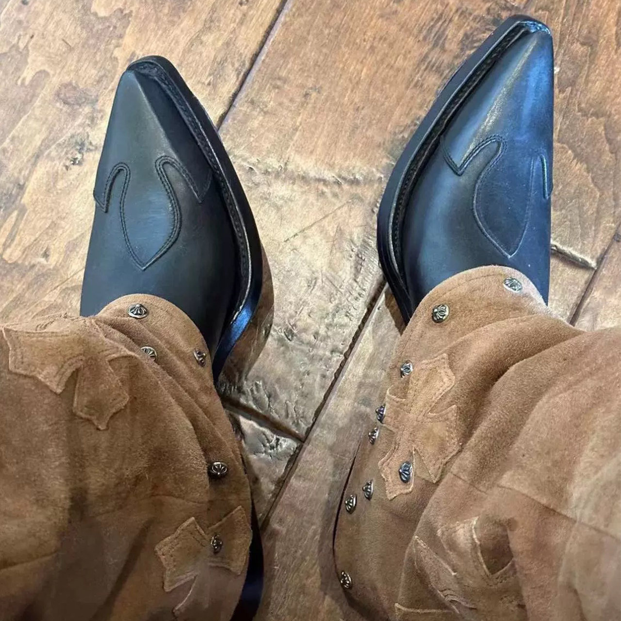 NIGO Chrome Hearts Women's Men's Black Thigh High Boots Metal Decoration Leather Shoes Fashion Trend High Street Boots Ngvp #nigo7811