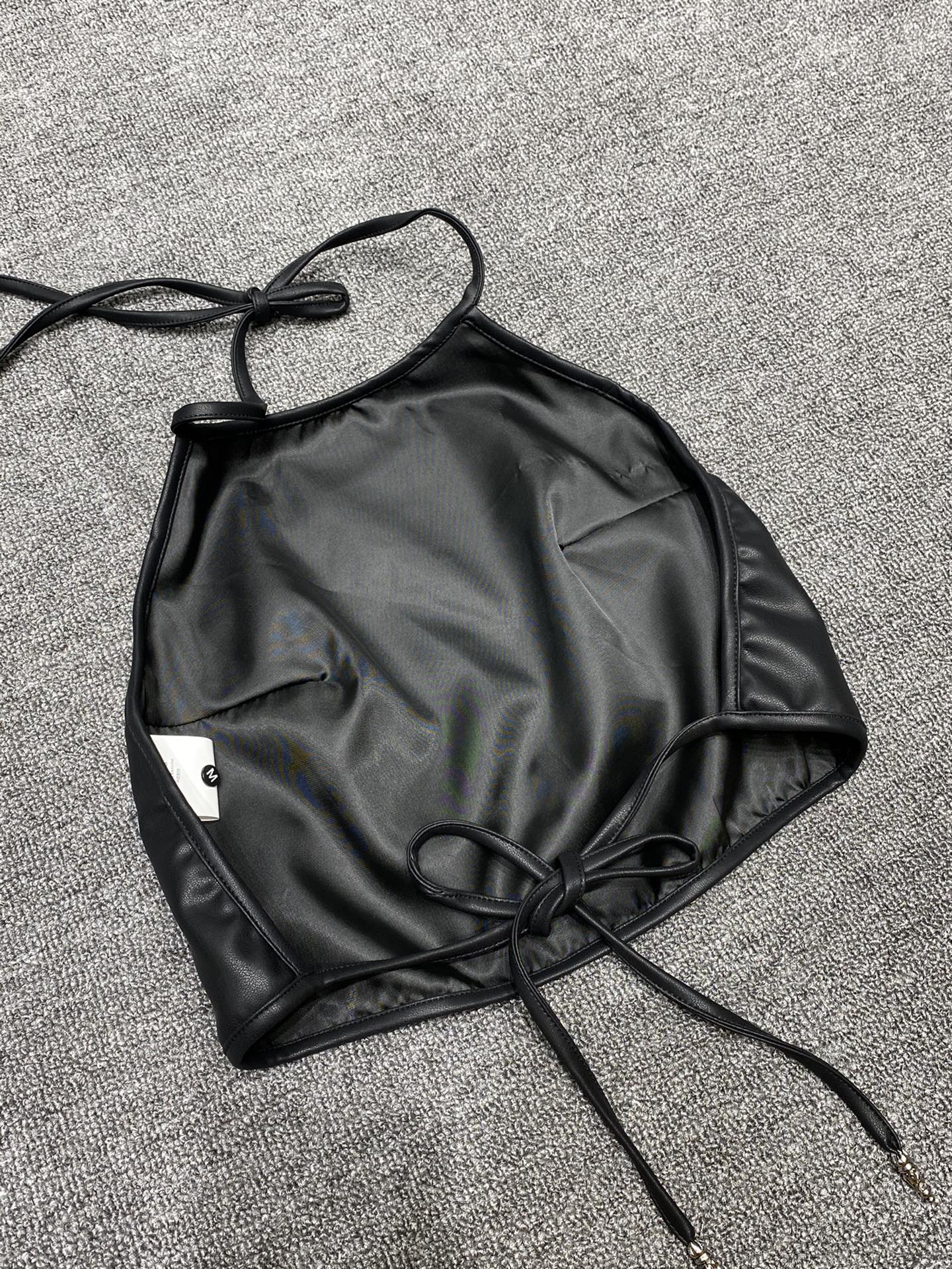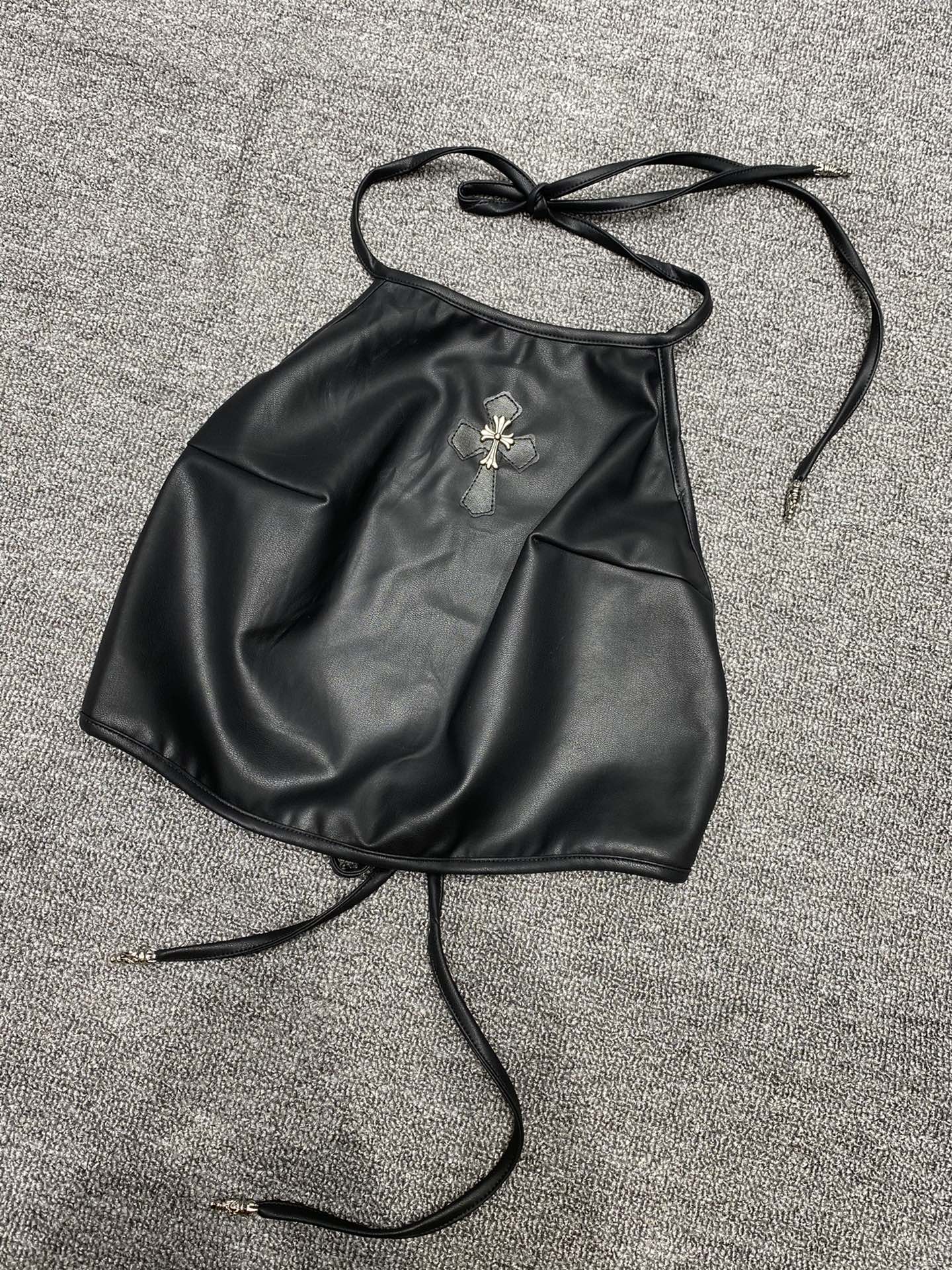 NIGO Chrome Hearts Women's Summer Black Leather Sling Belly Bib Top #nigo99678
