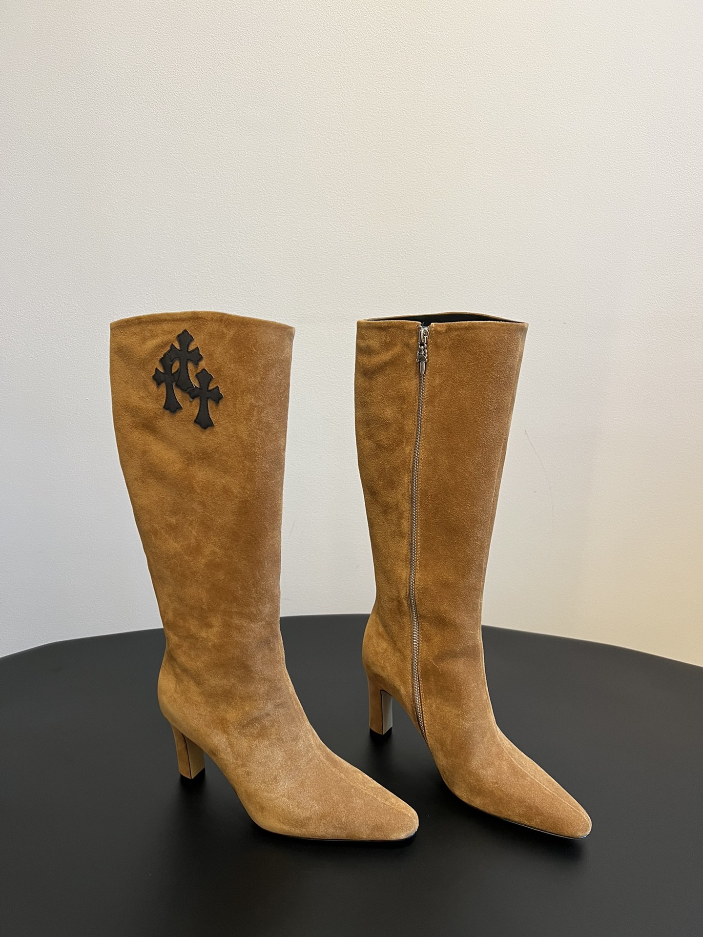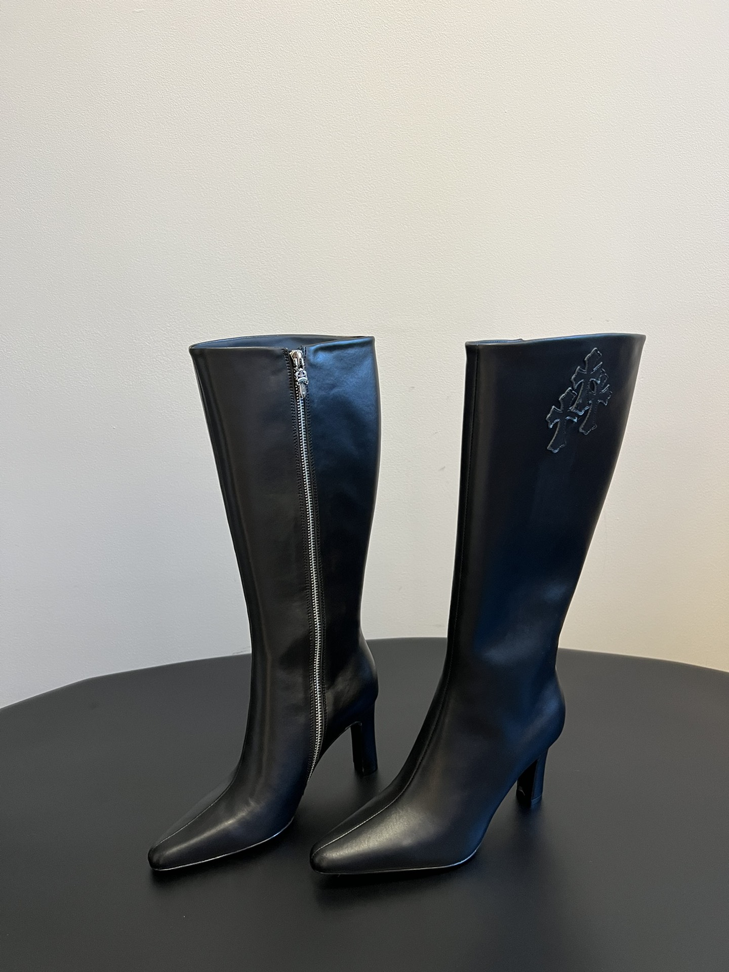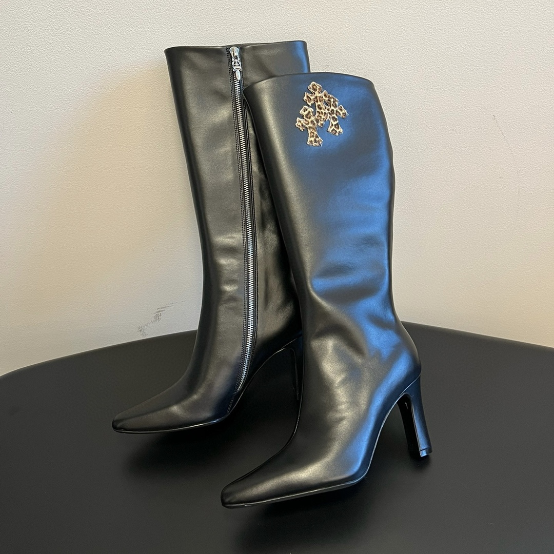 NIGO Chrome Hearts Women's Thigh High Boots Metallic Embellishment Zipper Leather Shoes Fashion Trend High Street Boots #nigo74585