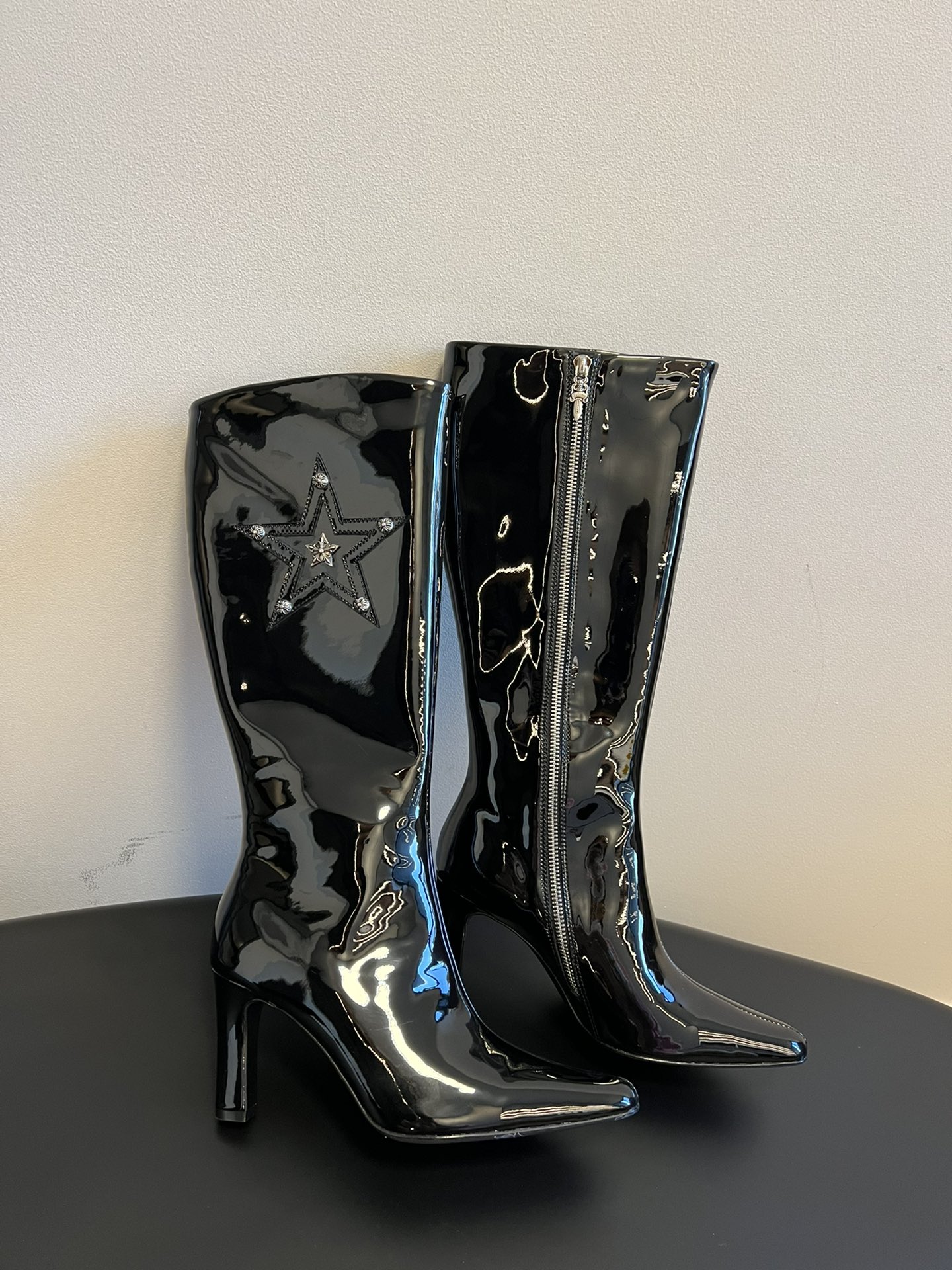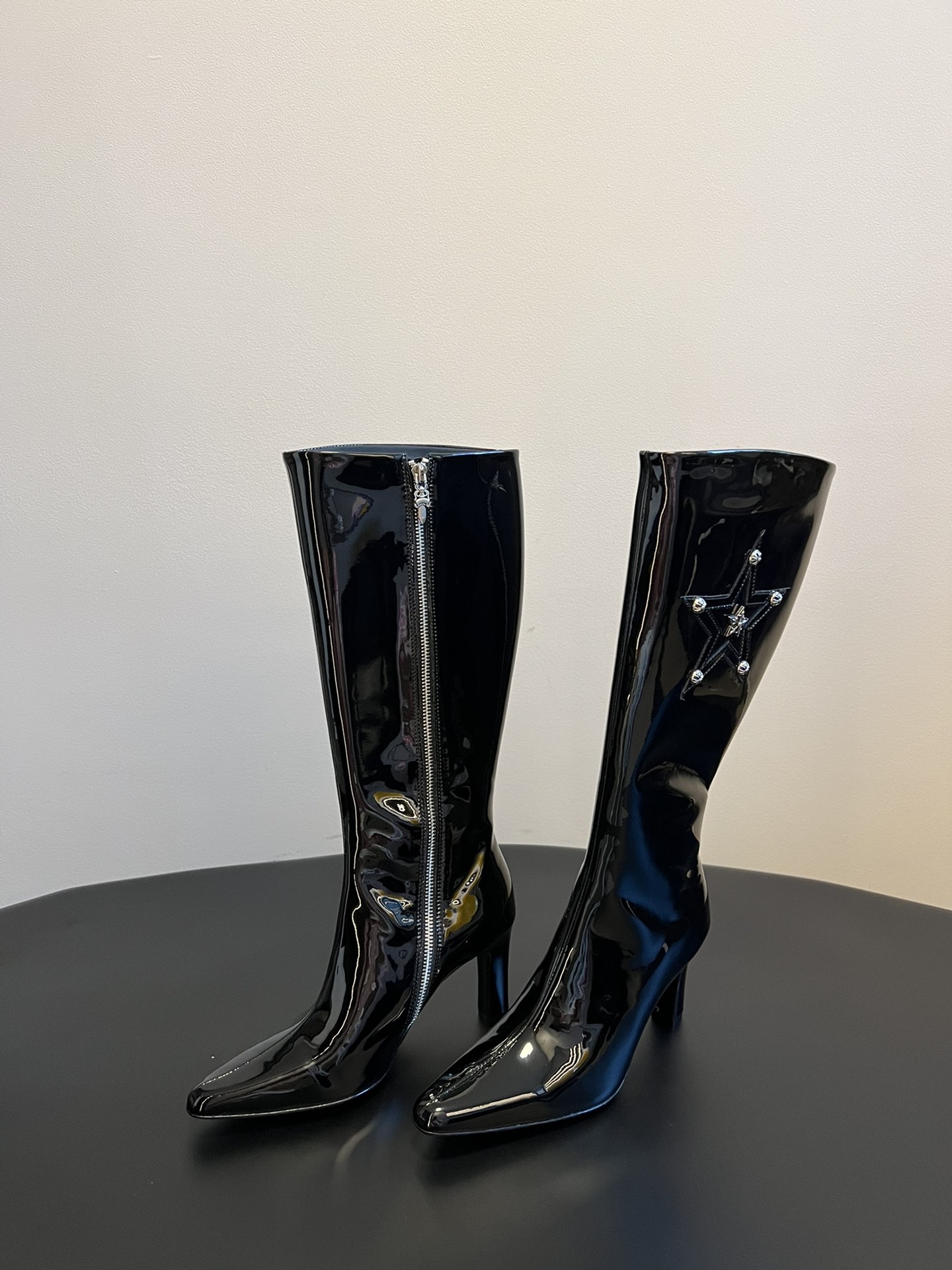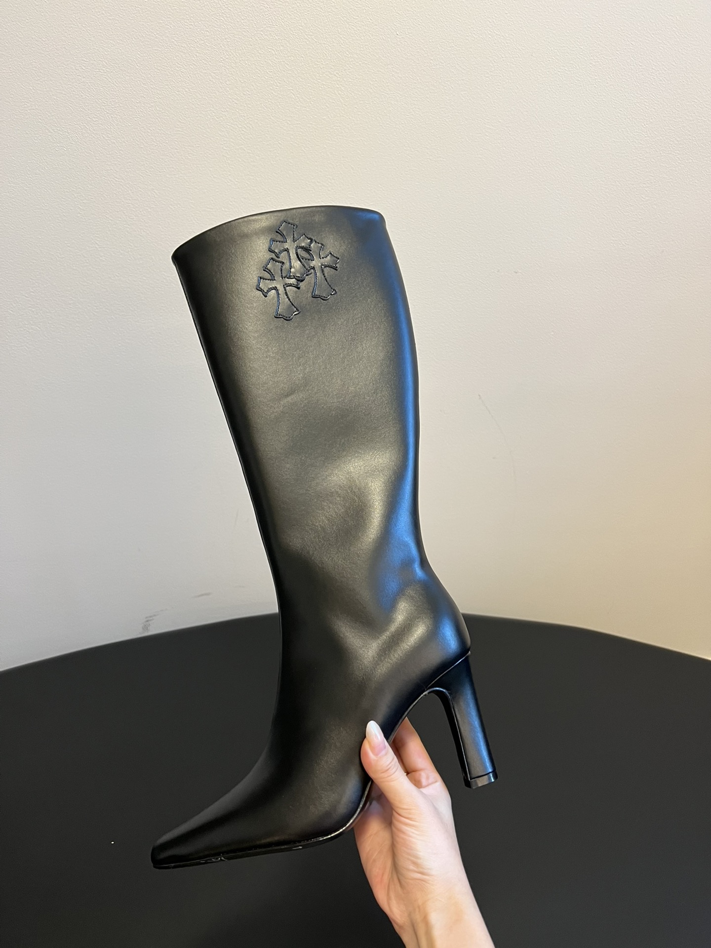 NIGO Chrome Hearts Women's Thigh High Boots Metallic Embellishment Zipper Leather Shoes Fashion Trend High Street Boots #nigo74585