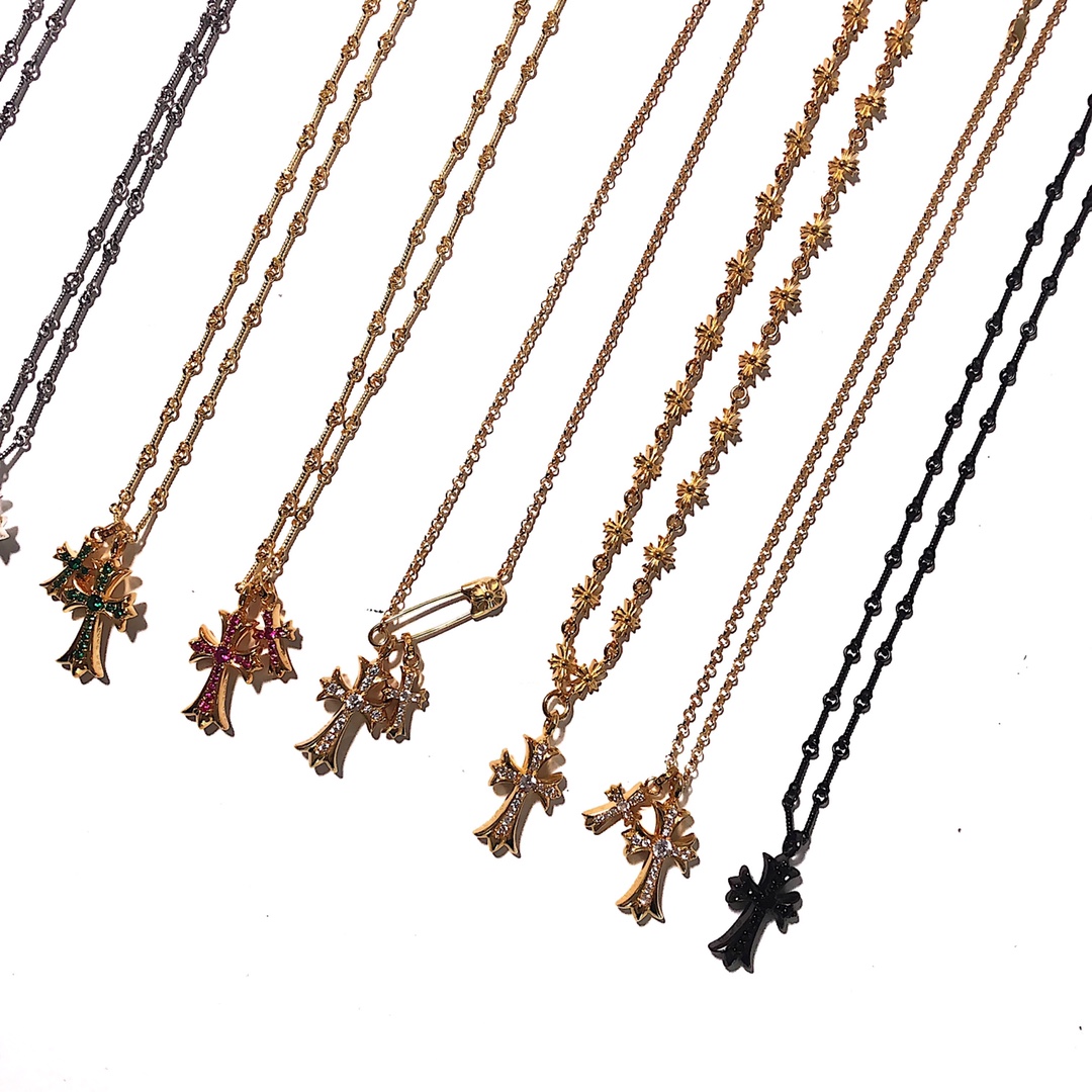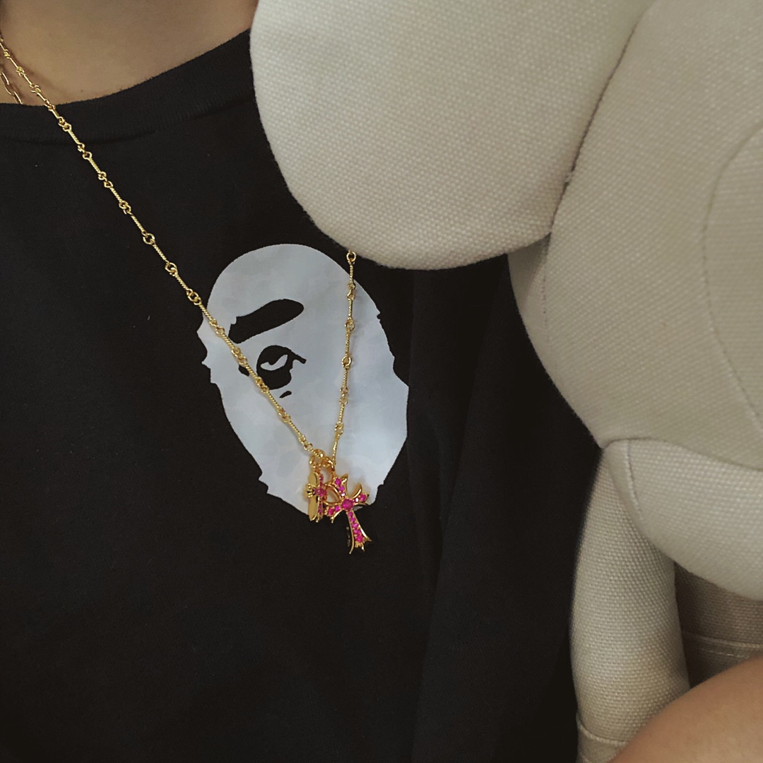 NIGO Chrome Hearts Men's And Women's Cross With Diamond Pendant Bamboo Lockbone Chain Necklace Jewelry #nigo75726