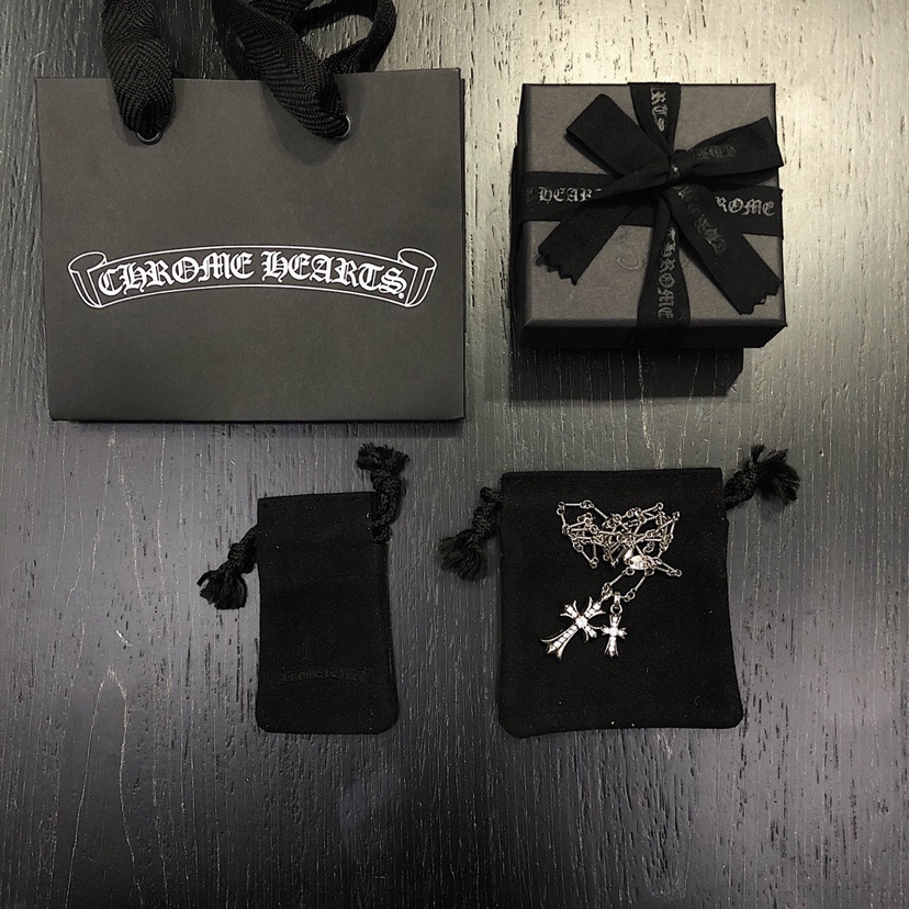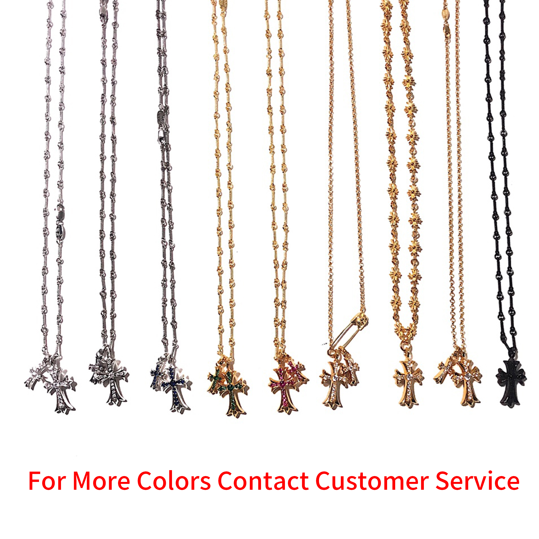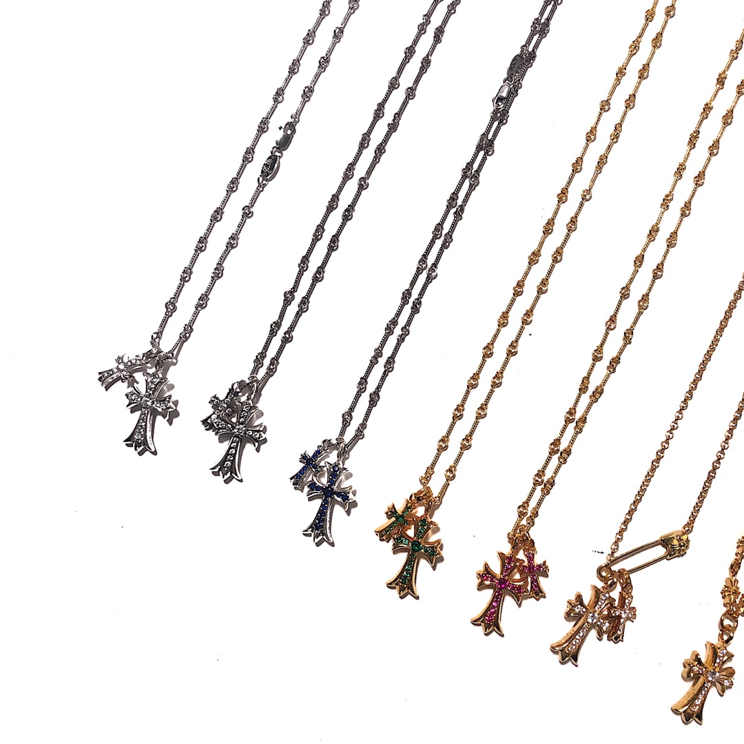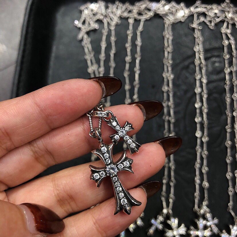 NIGO Chrome Hearts Men's and Women's Silver Cross Black and White Diamonds Necklace Jewelry #nigo75327