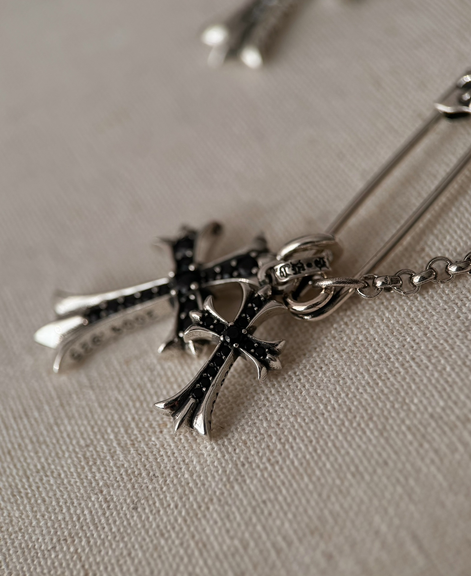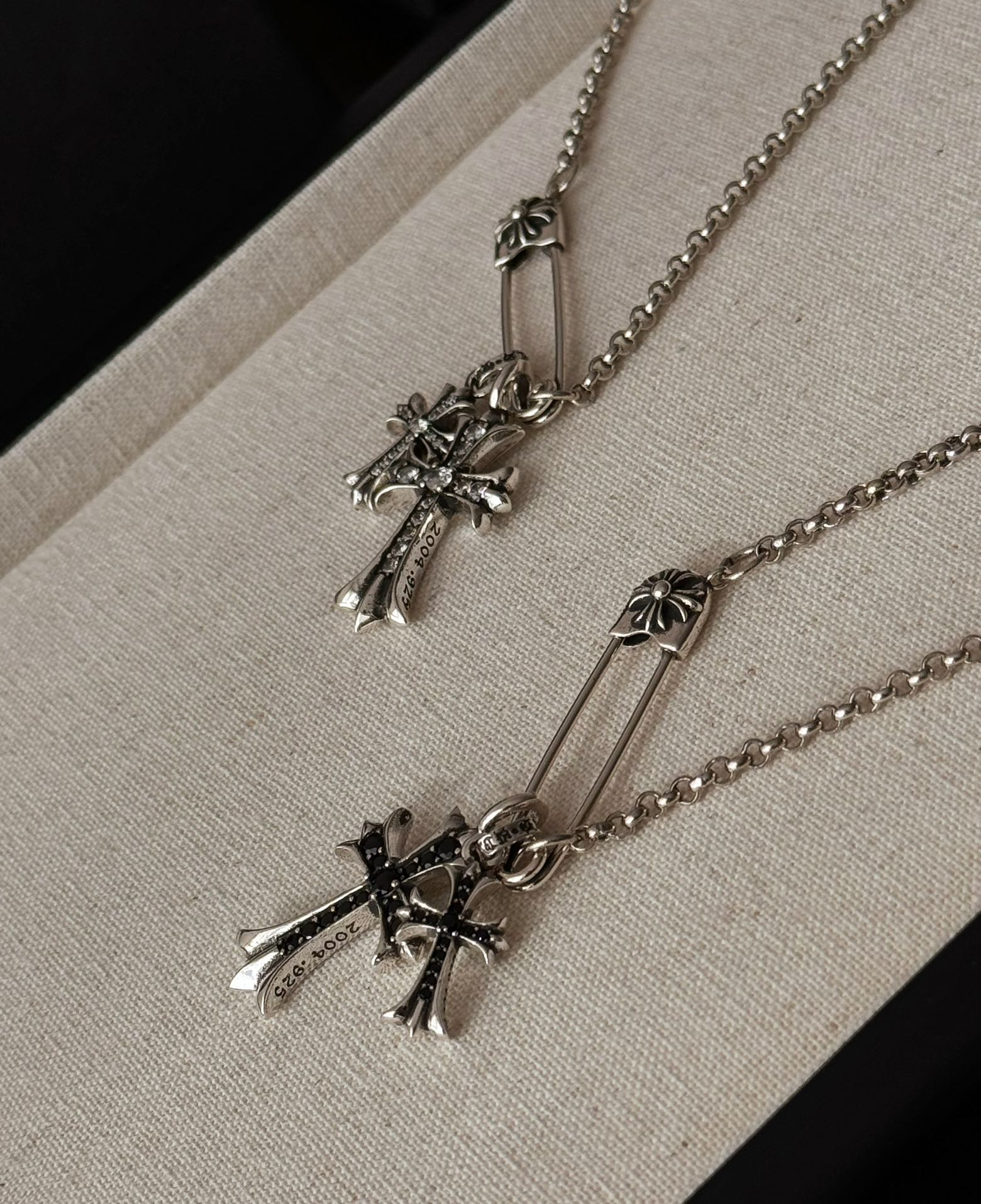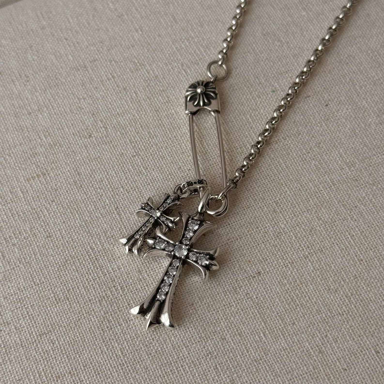 NIGO Chrome Hearts Men's and Women's Silver Cross Black and White Diamonds Necklace Jewelry #nigo75327