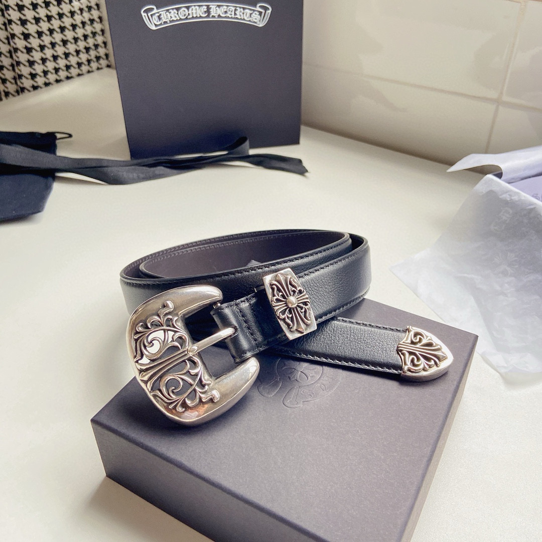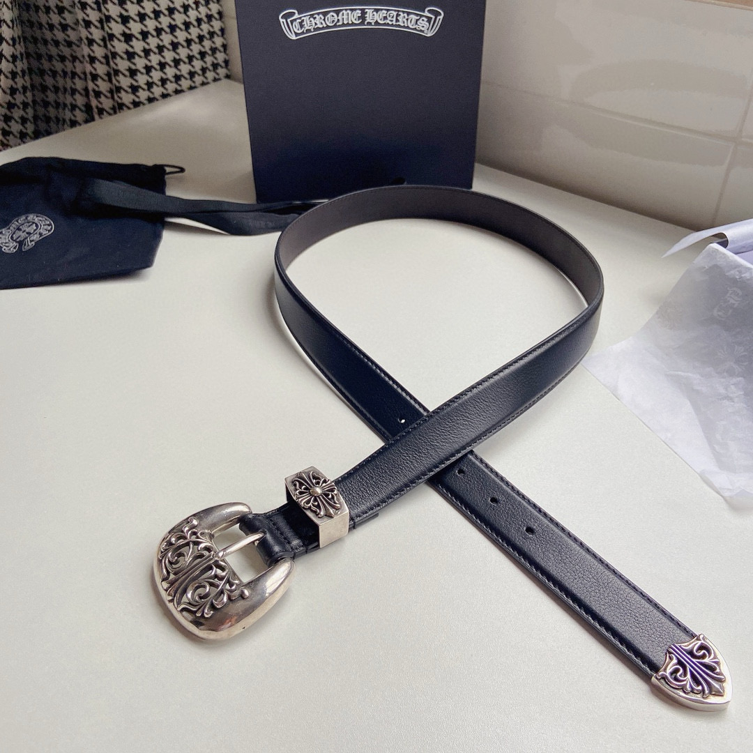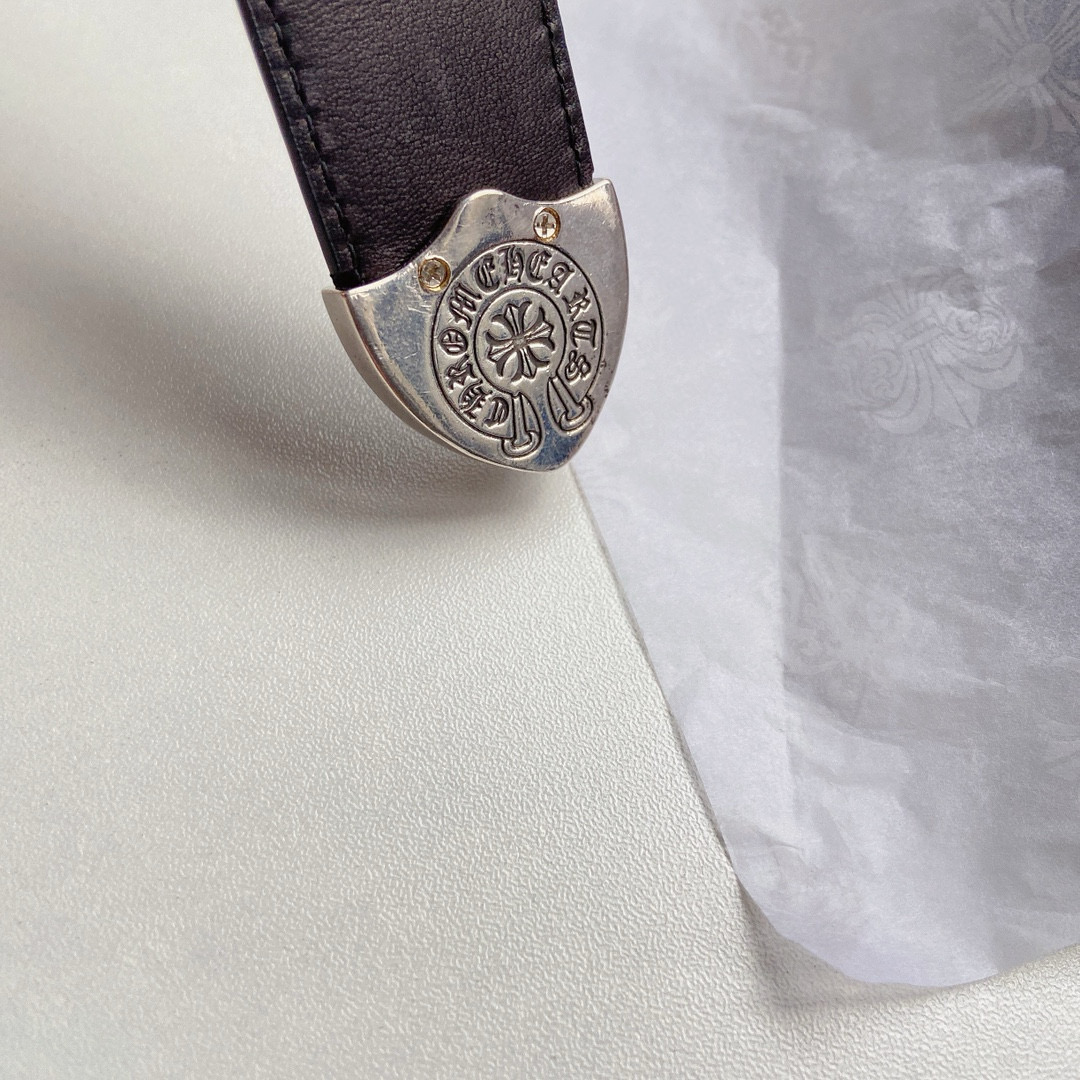 NIGO Chrome Hearts Men's Logo Leather Belt Pure Copper Thick Gold Plated 3cm Wide Belt Jewelry Accessories #nigo71931