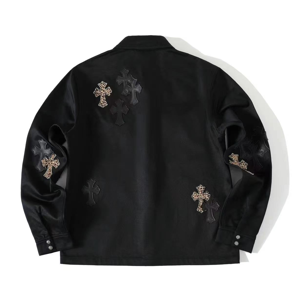 NIGO Chrome Hearts Men's Autumn and Winter Solid Color Leather Labeled Single Breasted Long Sleeve Jacket #nigo73973