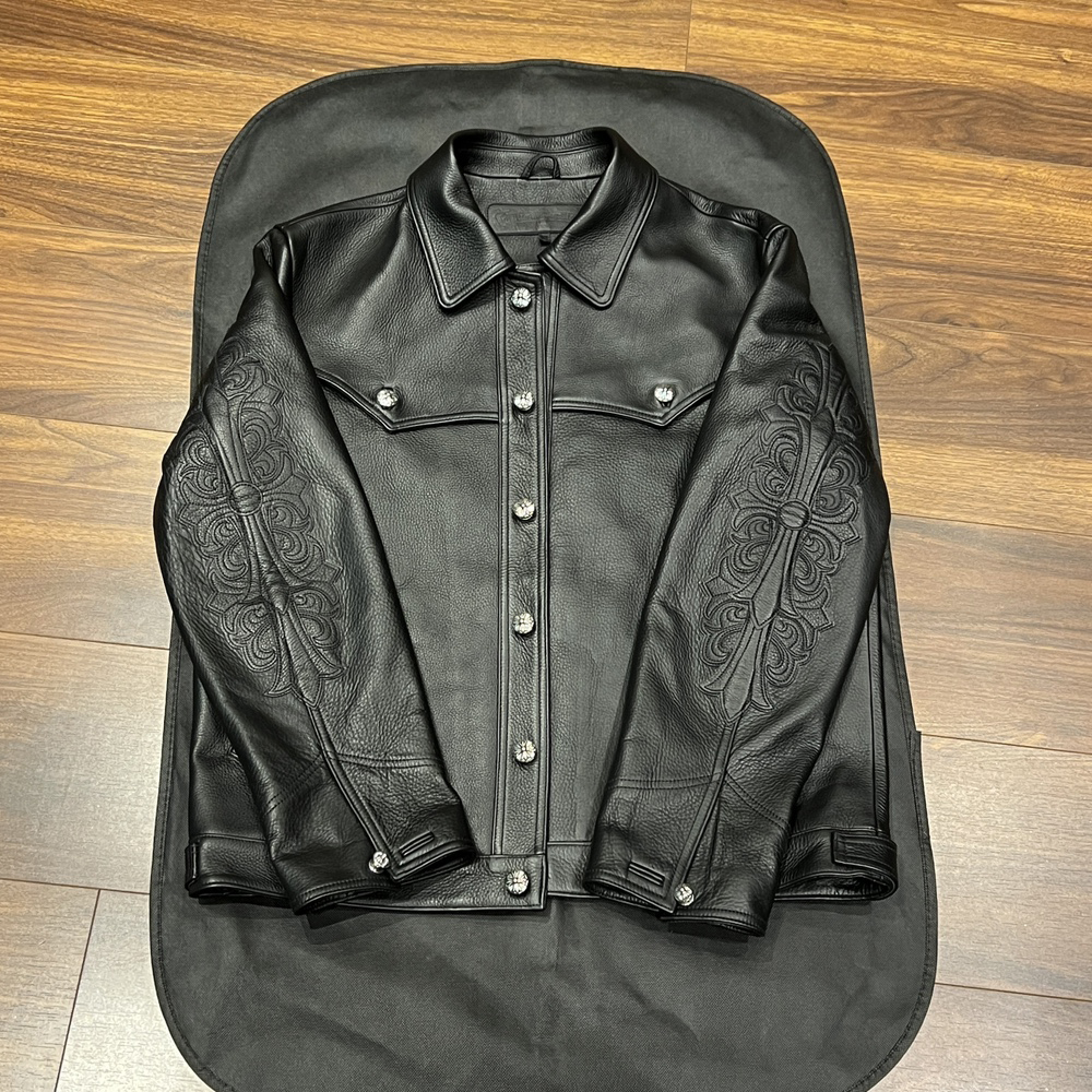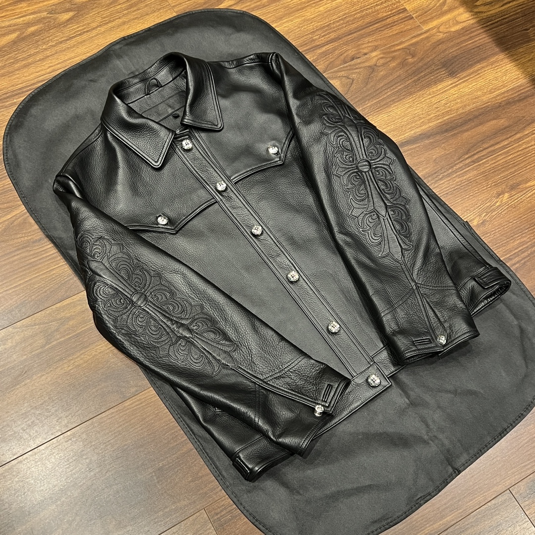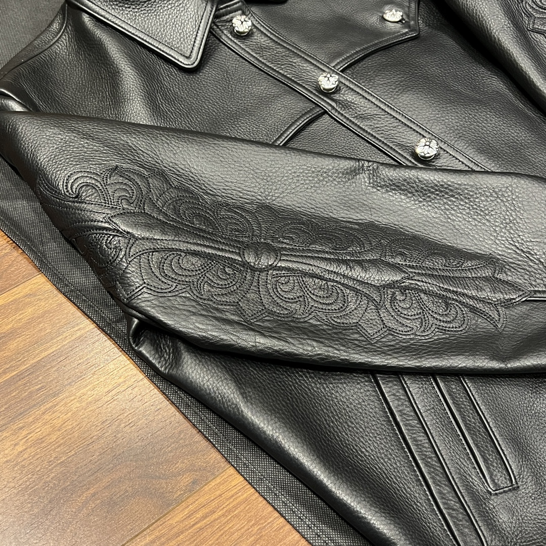 NIGO Chrome Hearts Men's Autumn and Winter Solid Color Cow Leather Single Breasted Long Sleeve Jacket #nigo73972