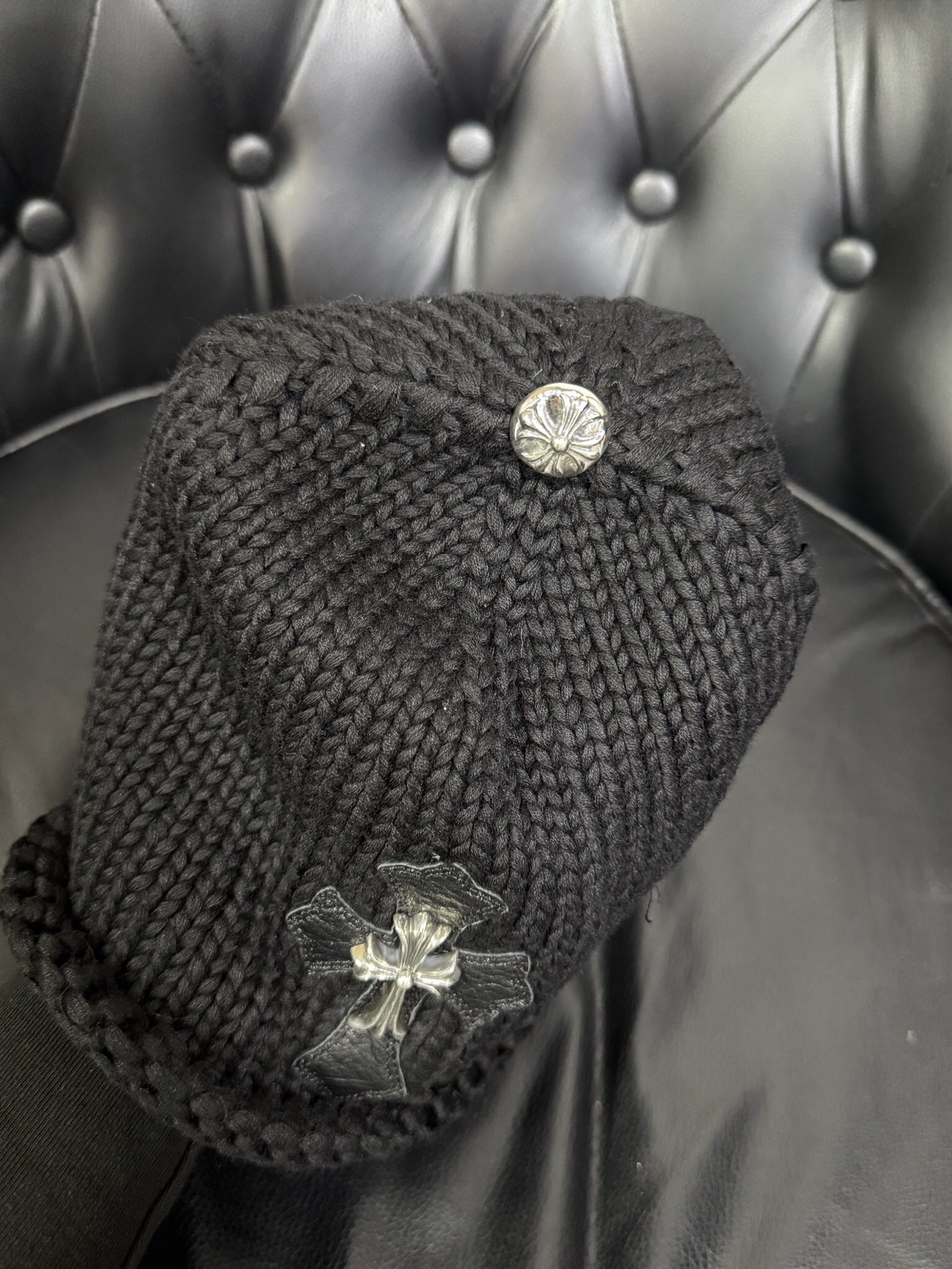 NIGO Chrome Hearts Sterling Silver Leather Embellished Cold Hat #nigo333922