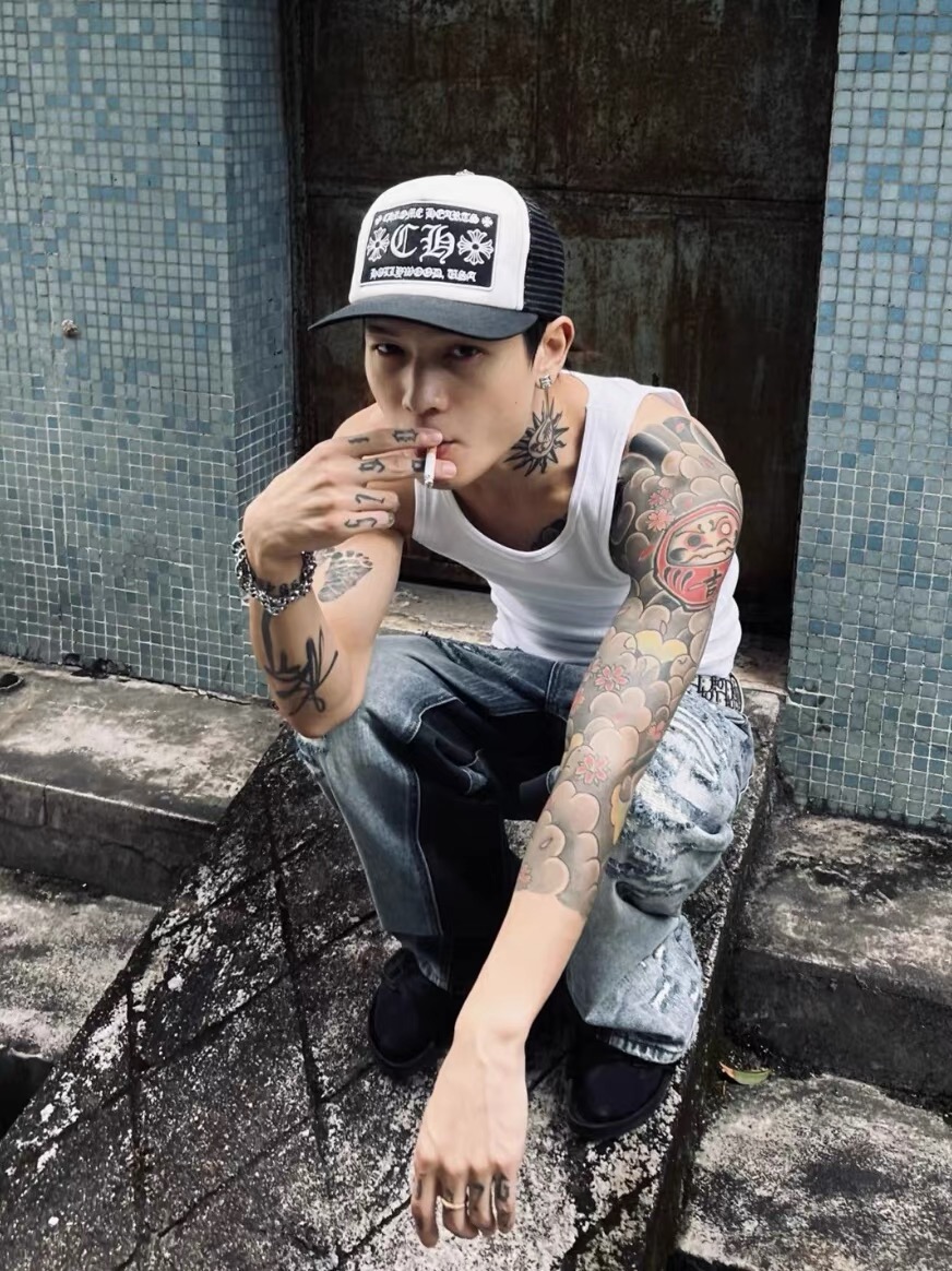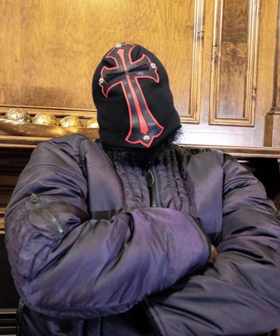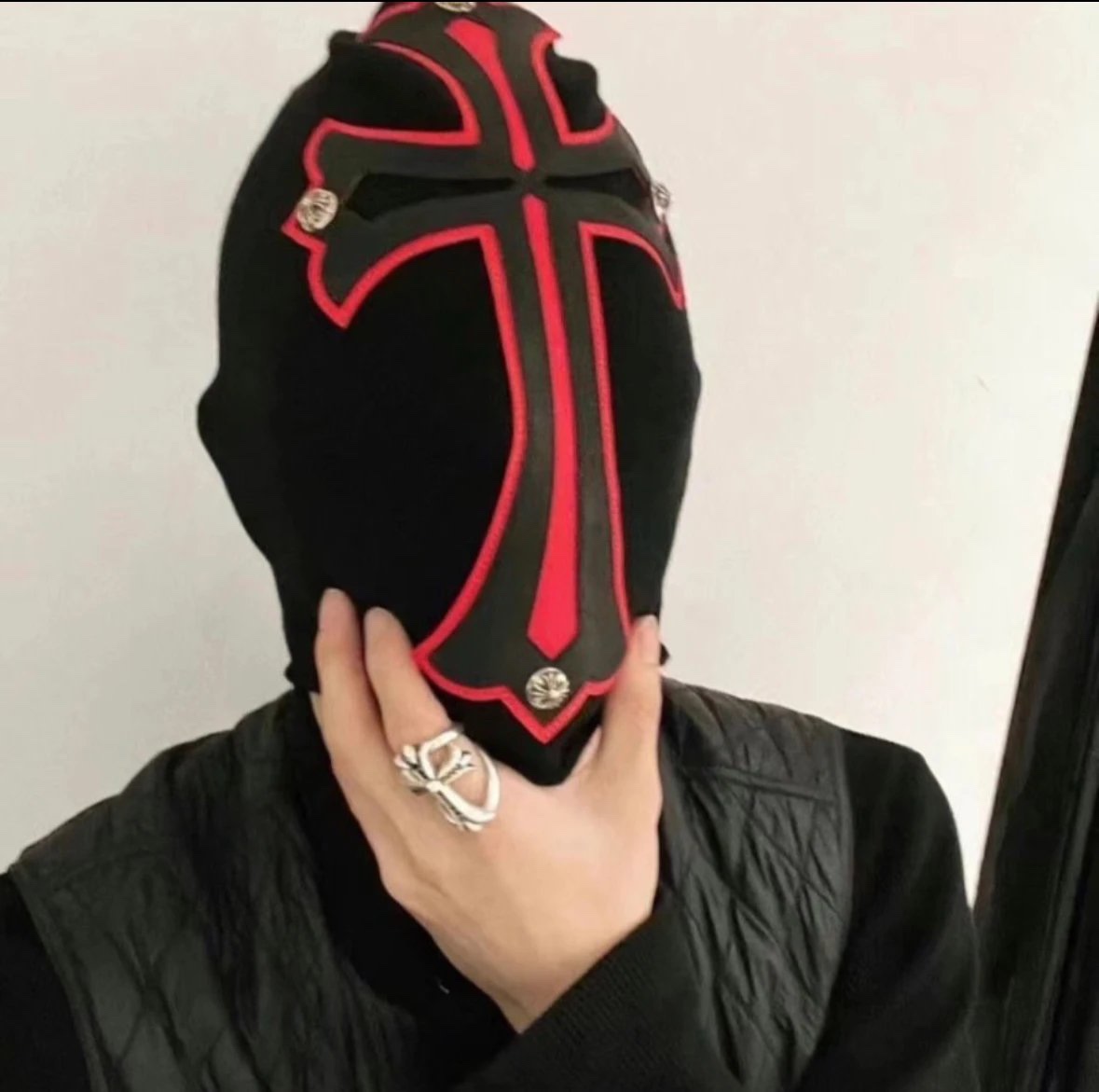 NIGO Chrome Hearts Men's Black and Red Cross Patchwork Leatherface Photo Hooded Hat Cap #nigo72853
