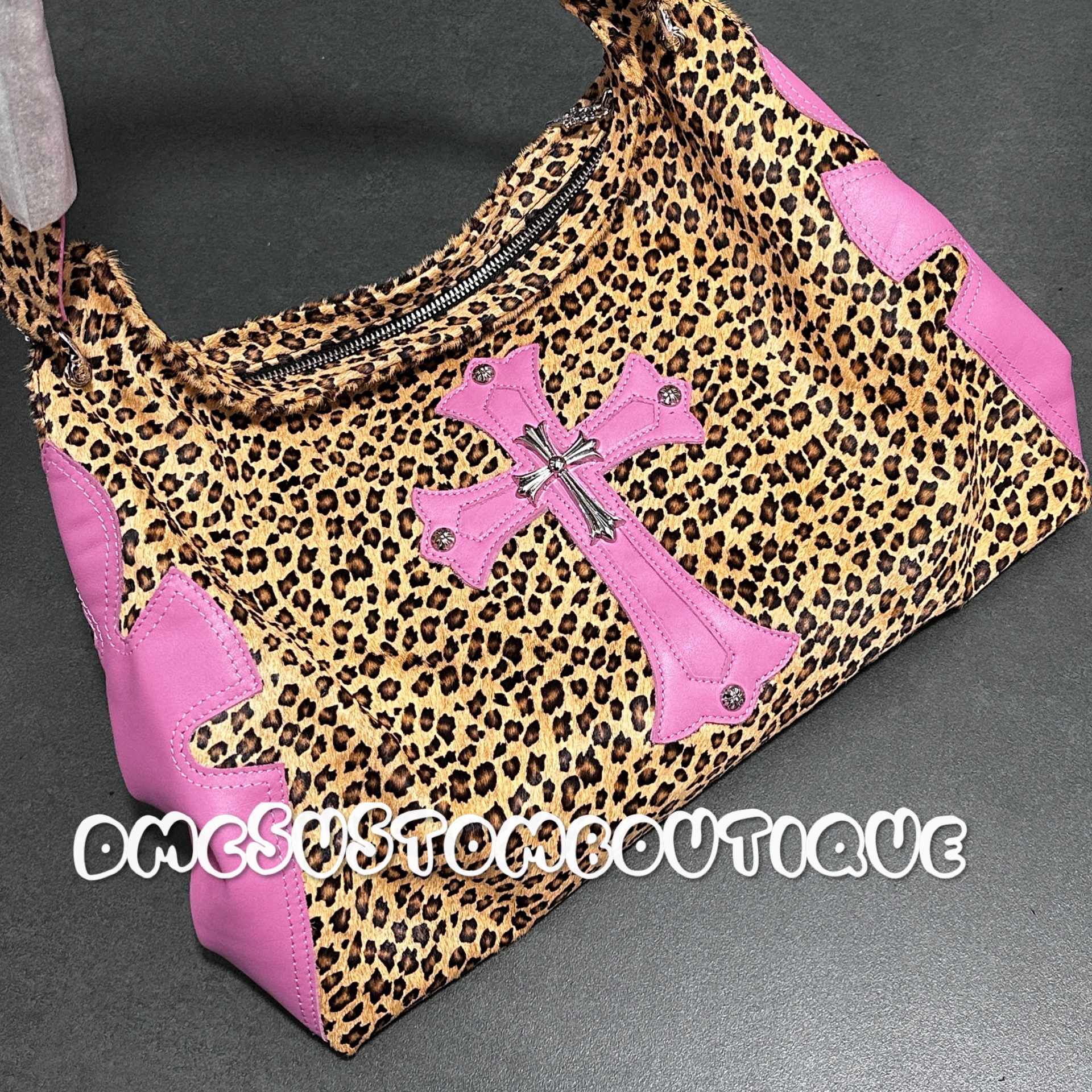 NIGO Chrome Hearts Women's Leopard Print Cowhide Leather Shoulder Crossbody Bag Bags #nigo99543