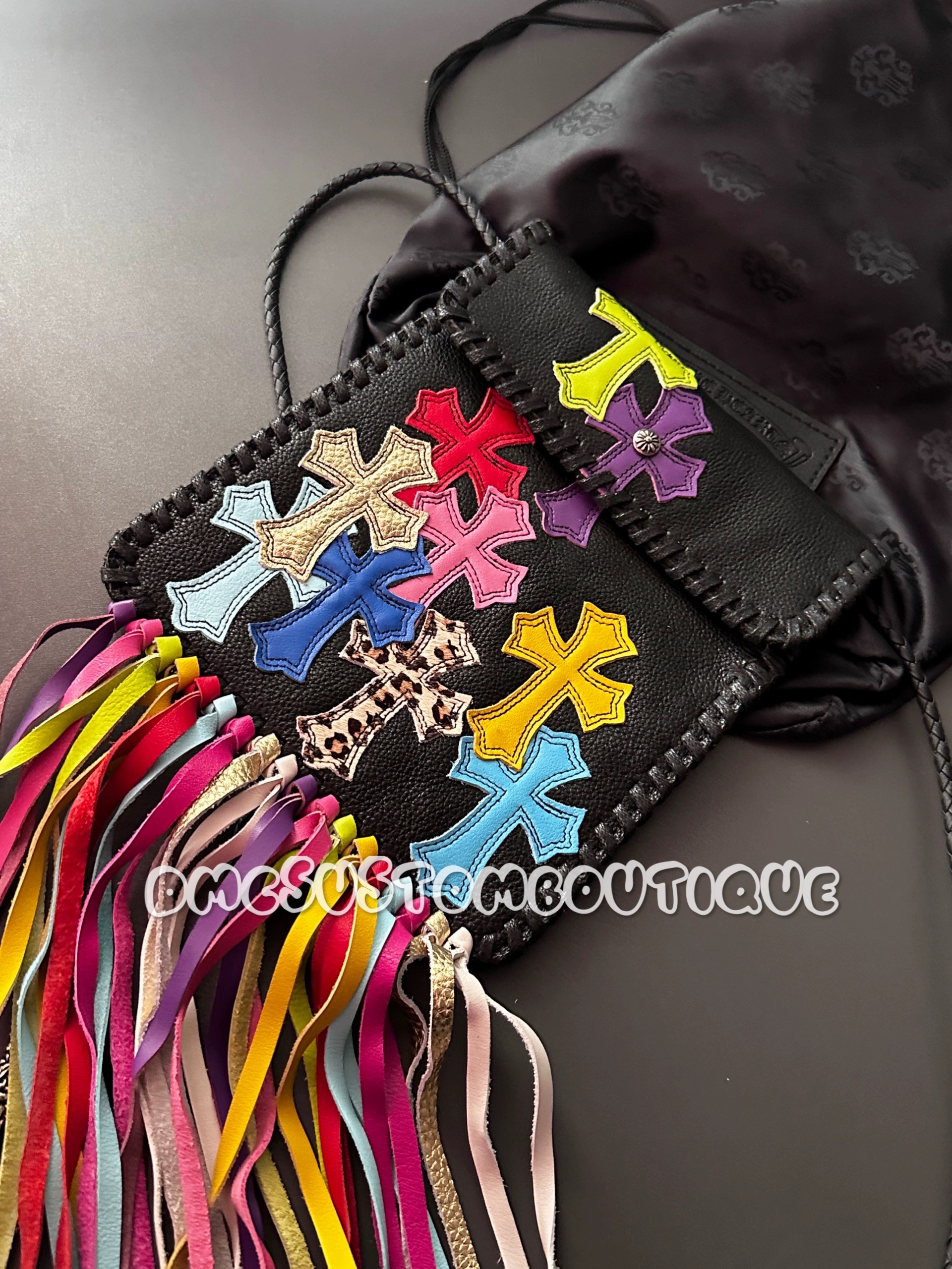 NIGO Chrome Hearts Women's Cross Labelled Tassel Cowhide Leather Crossbody Shoulder Bag Bags #nigo99549