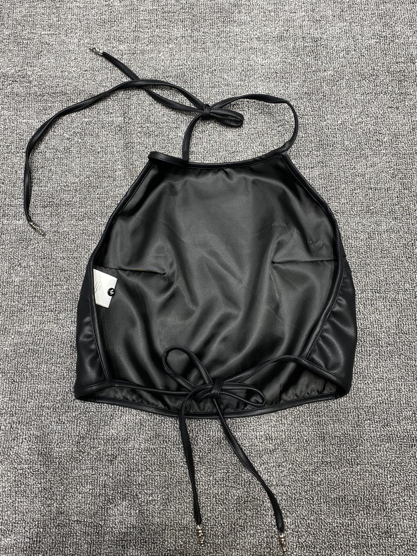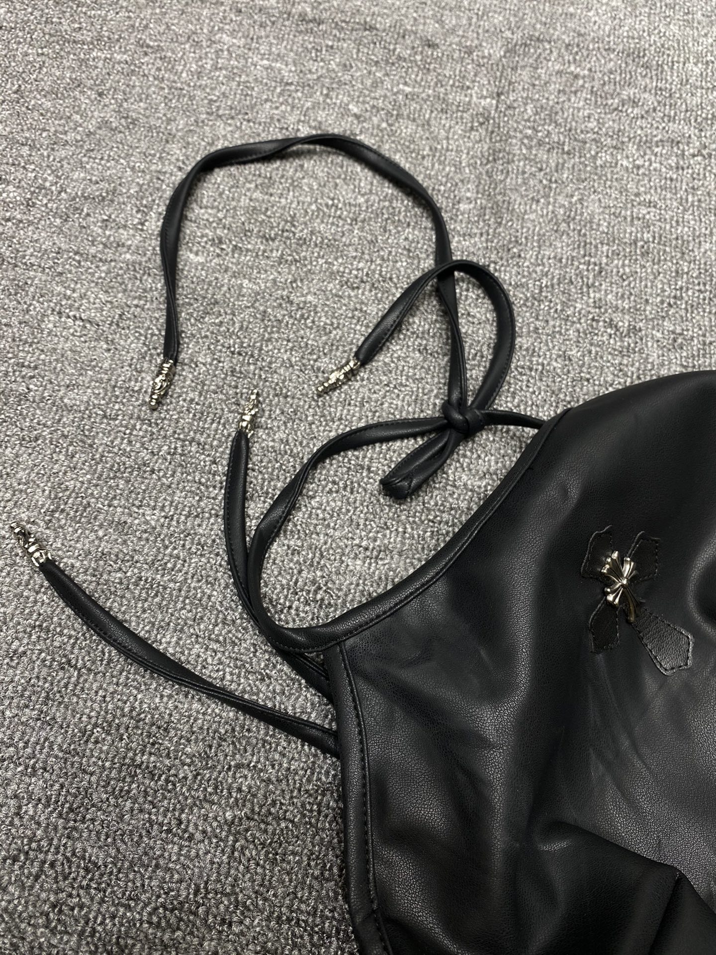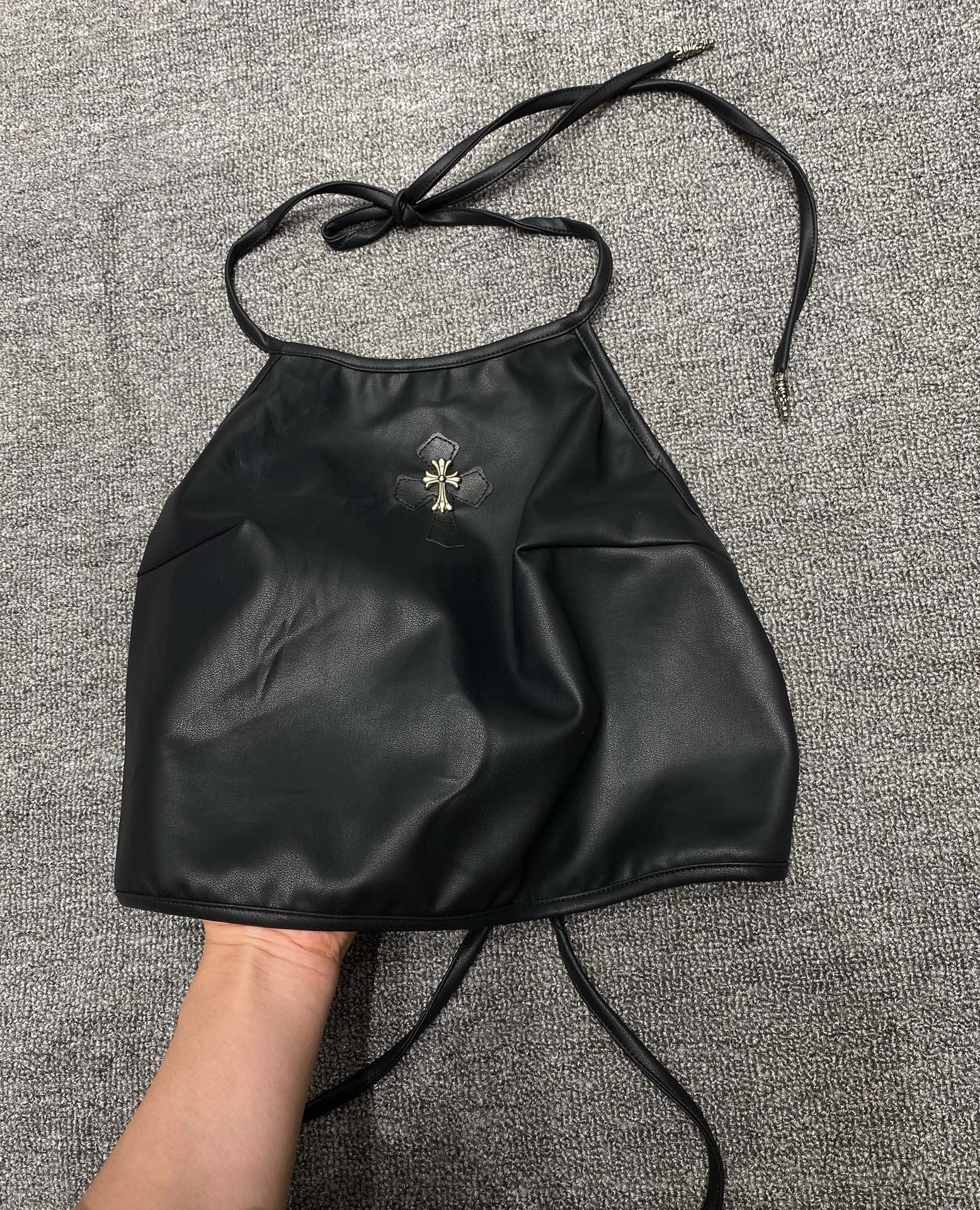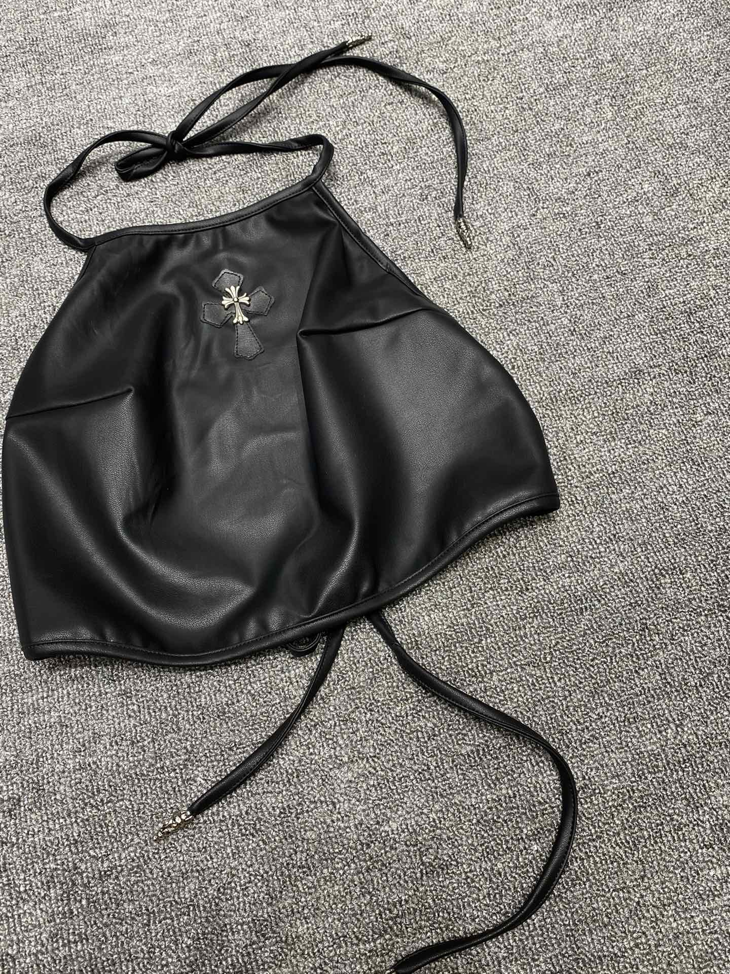 NIGO Chrome Hearts Women's Summer Black Leather Sling Belly Bib Top #nigo99678