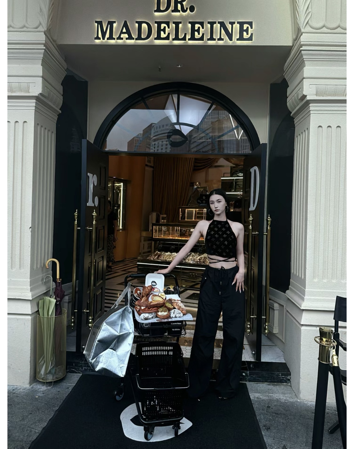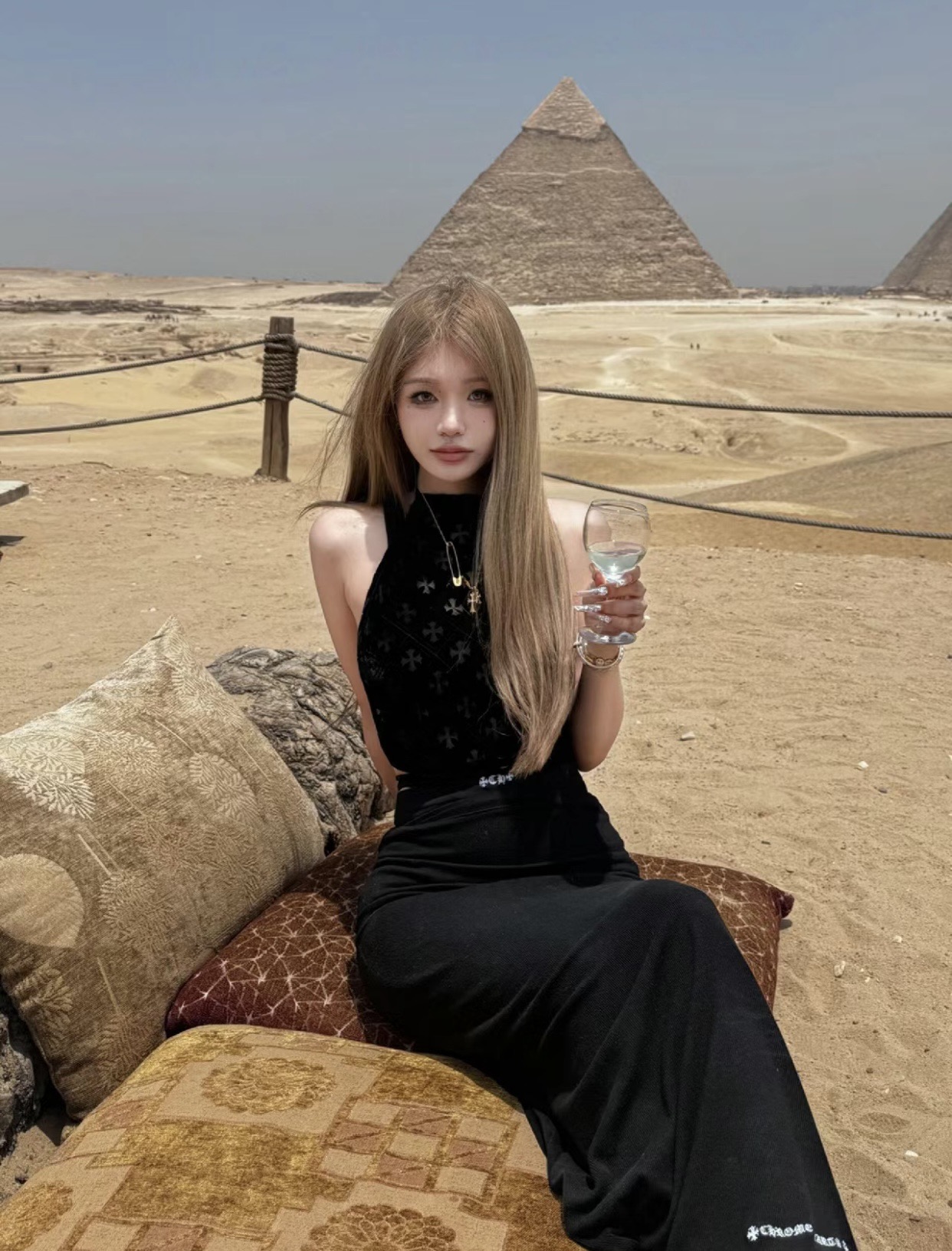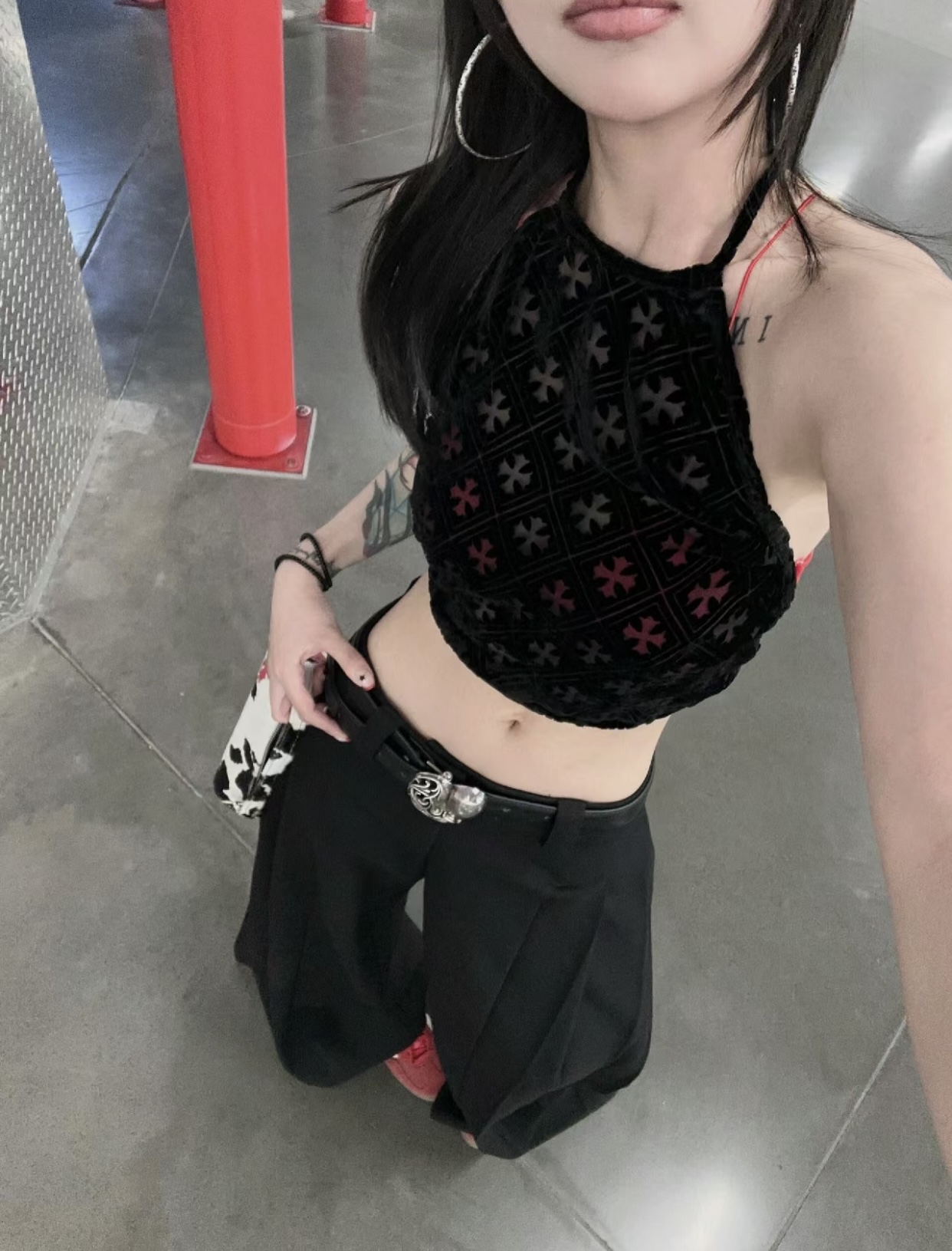 NIGO Chrome Hearts Women's Summer Hollow Cross Black Velvet Neck Sexy Sleeveless Top Halter Straps #nigo99824