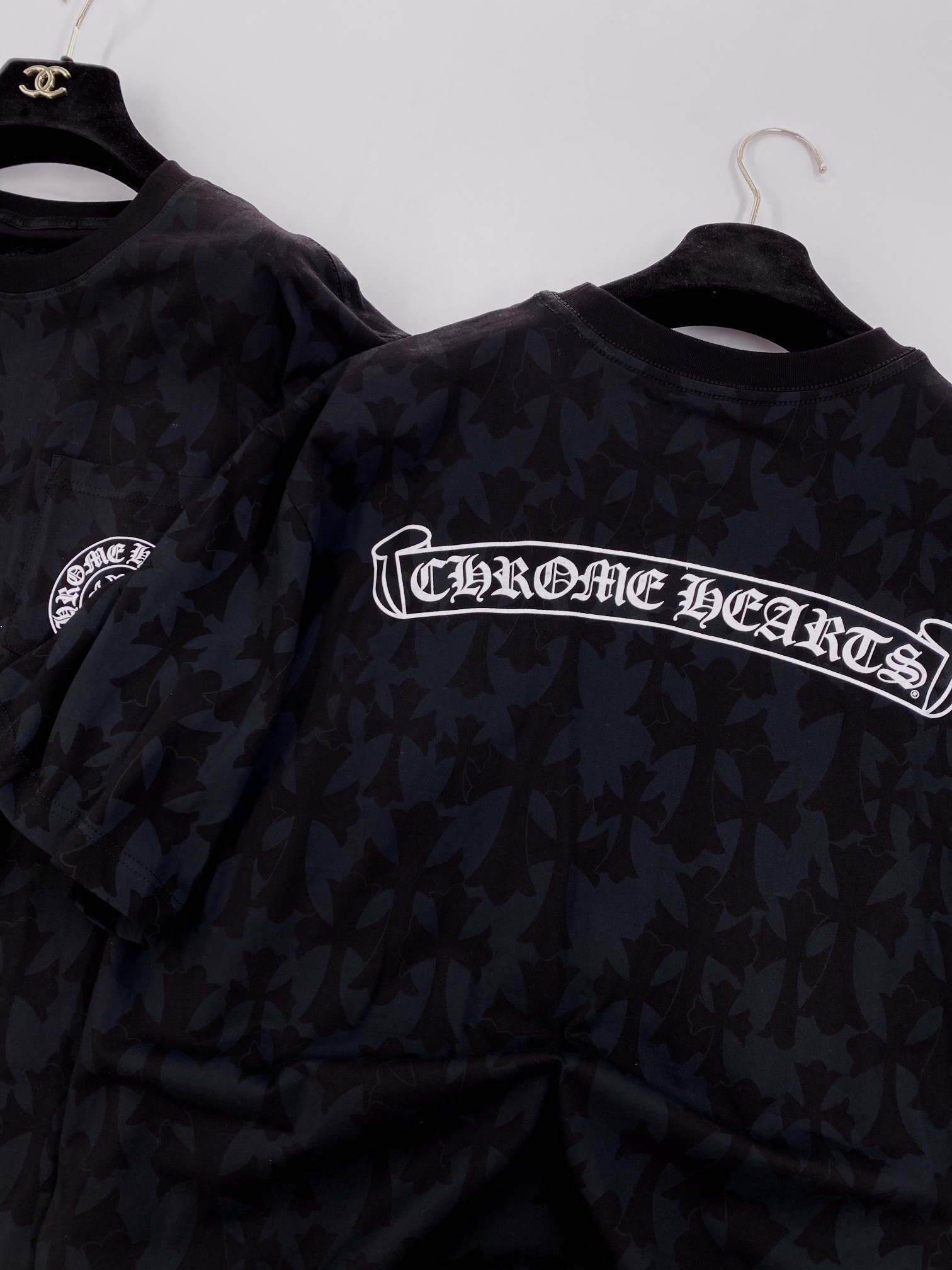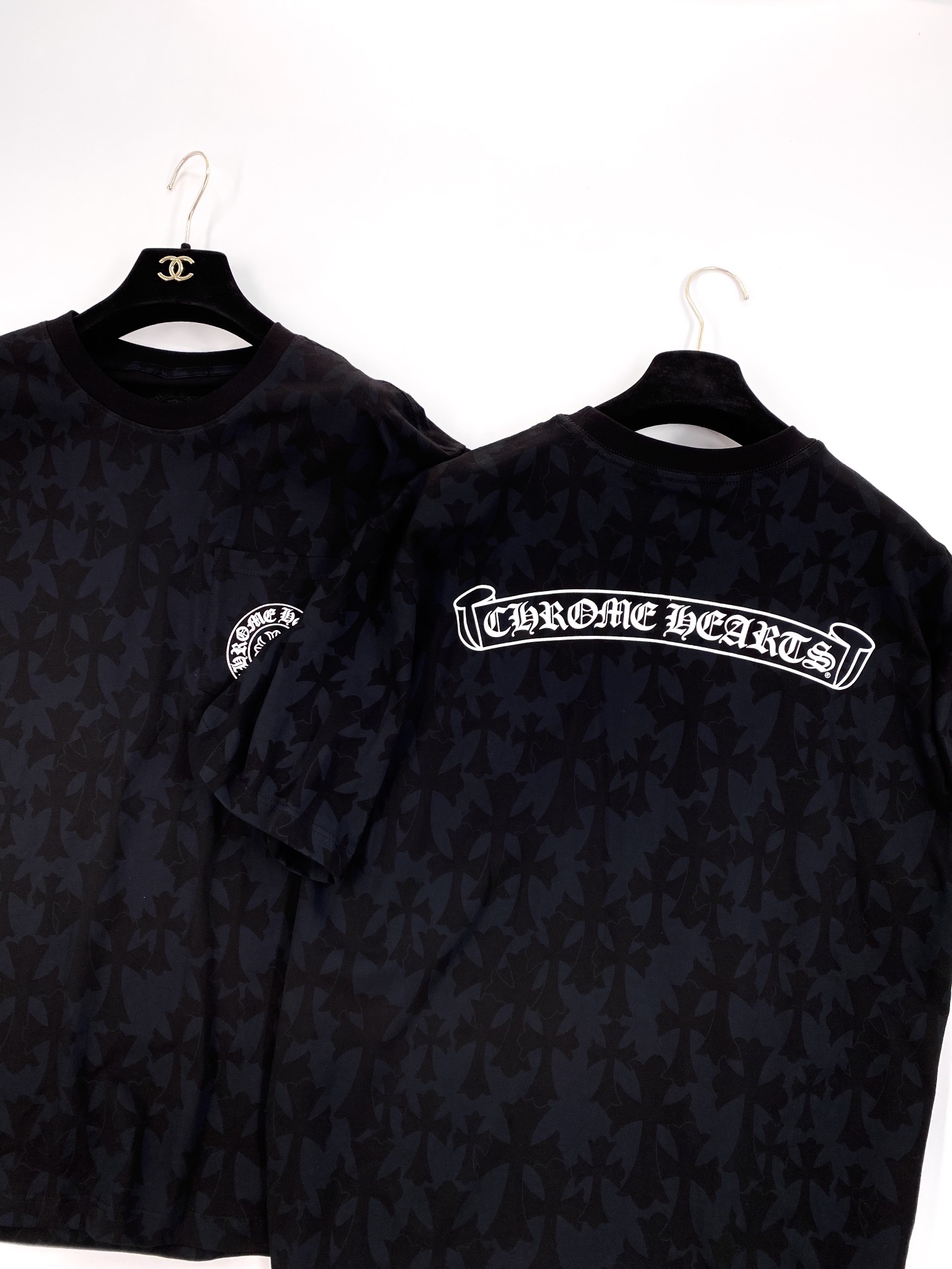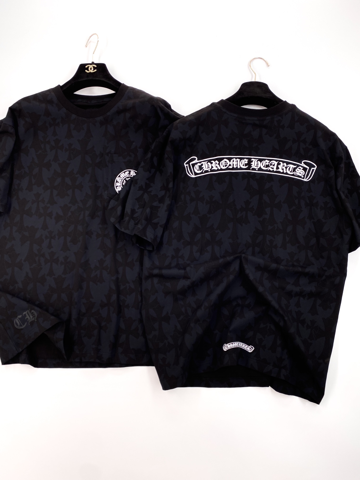NIGO Chrome Hearts Men's Summer Black Logo Printed Round Neck Straight Short Sleeve T-Shirt #nigo99844
