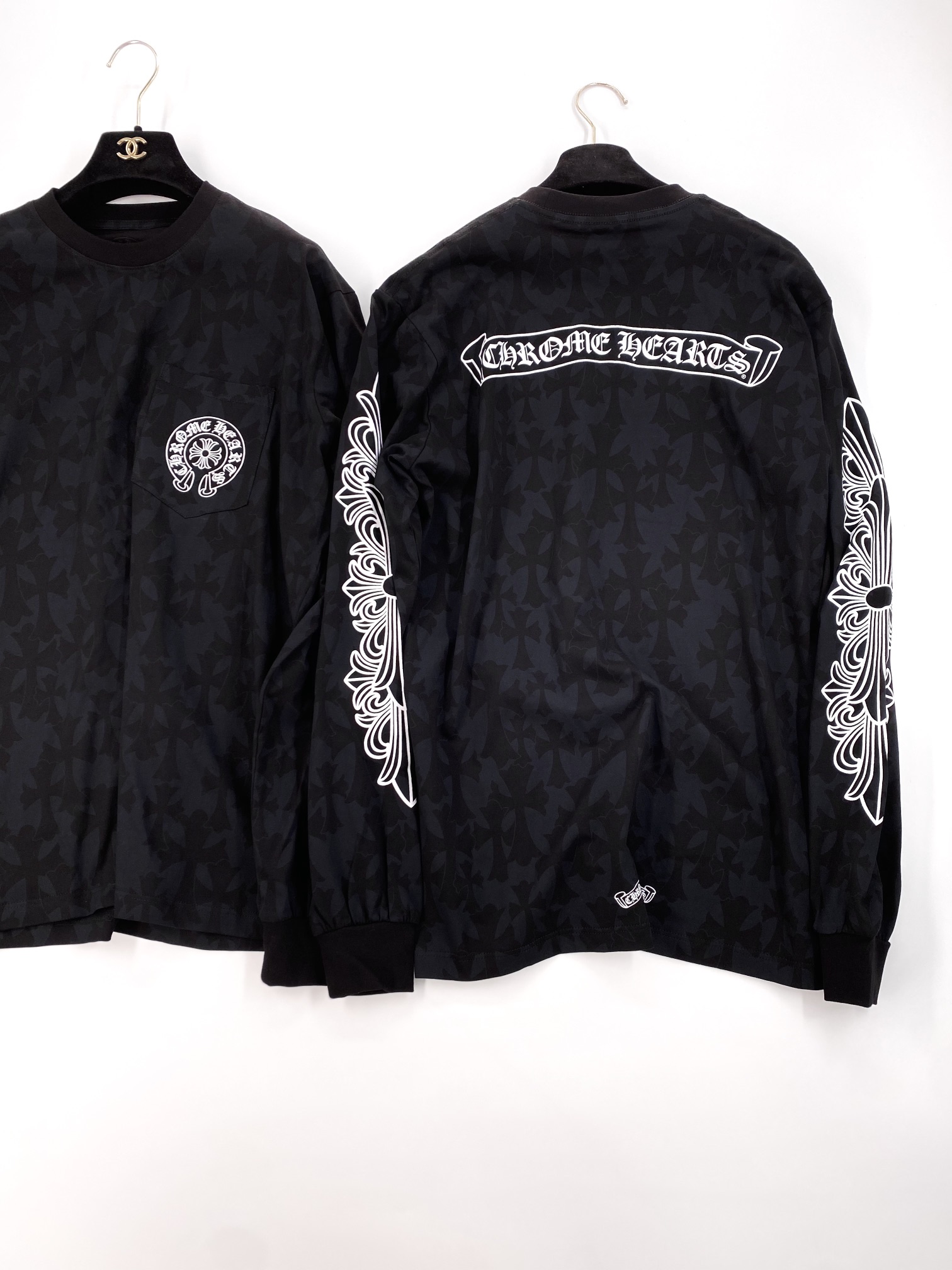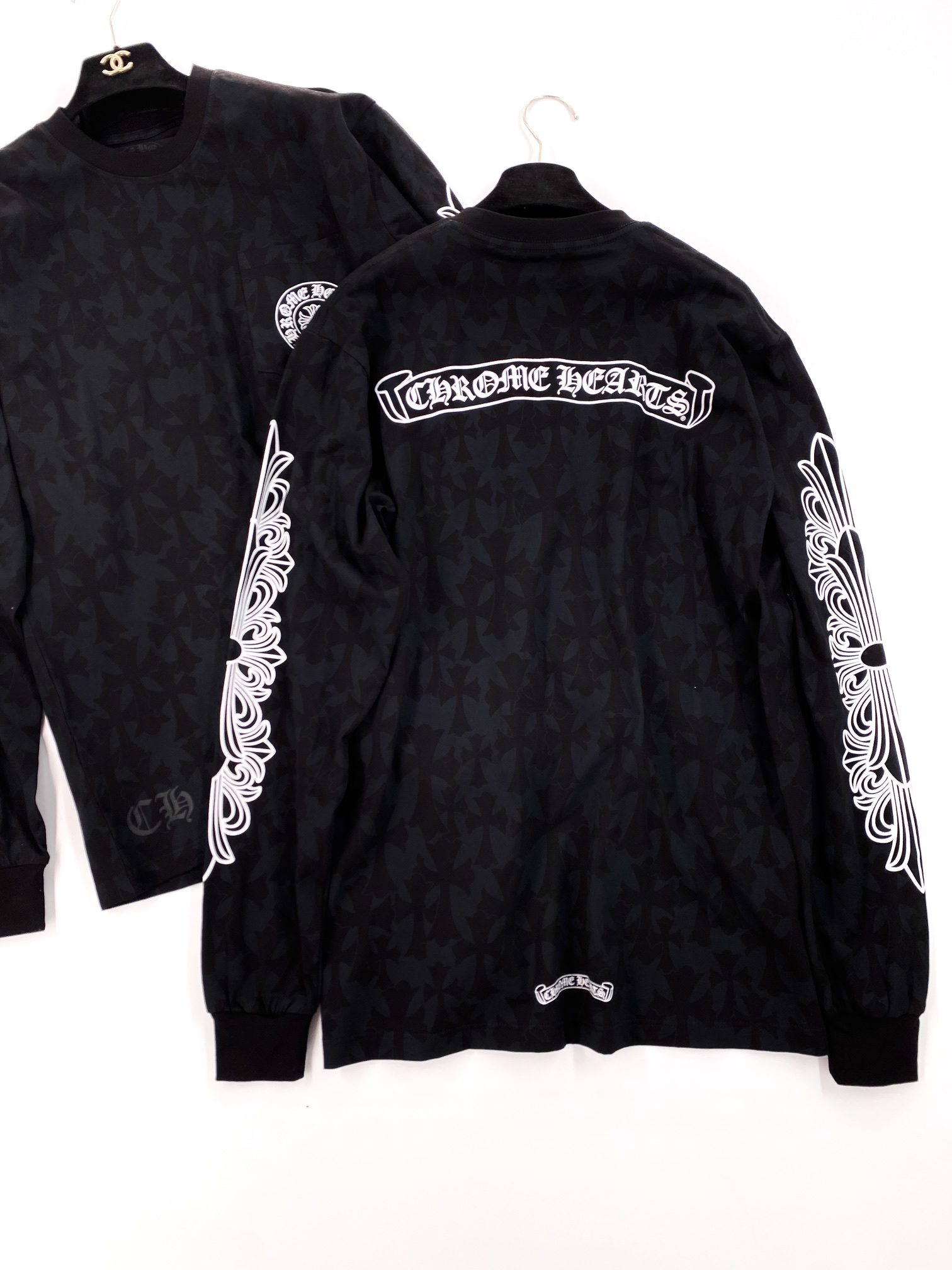 NIGO Chrome Hearts Men's Summer Black Logo Print Round Neck Straight Long Sleeve T-Shirt #nigo99845
