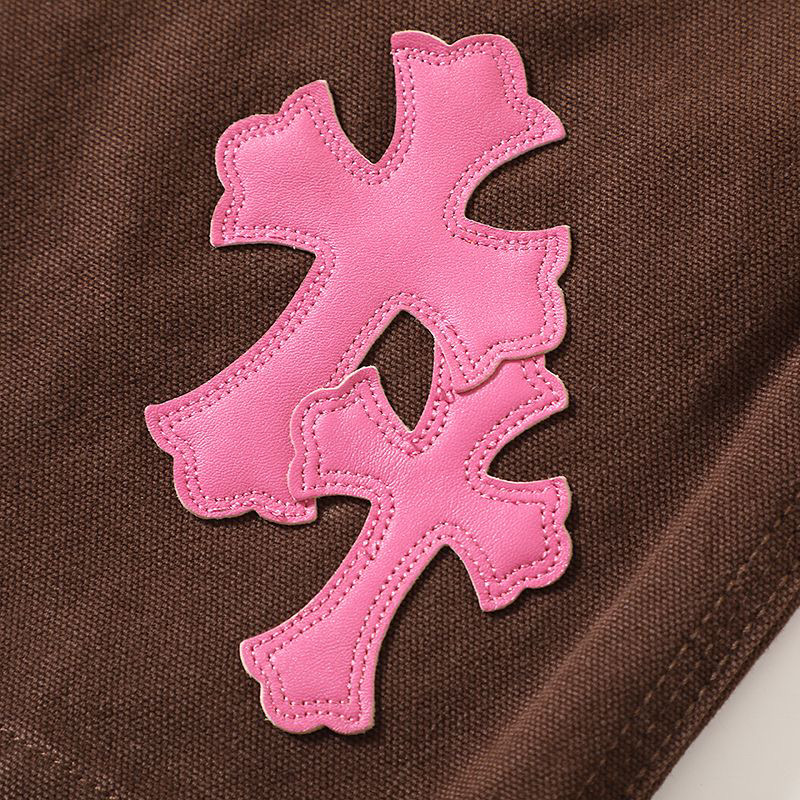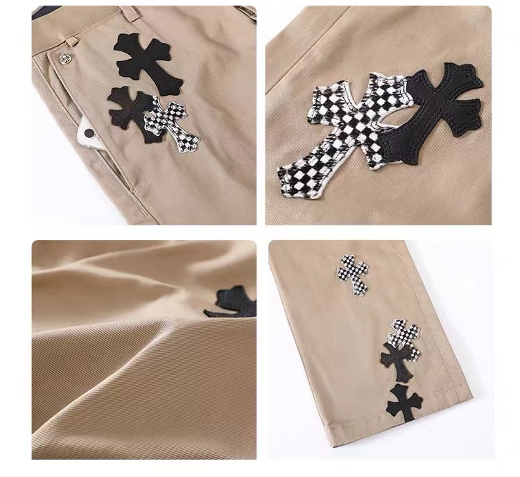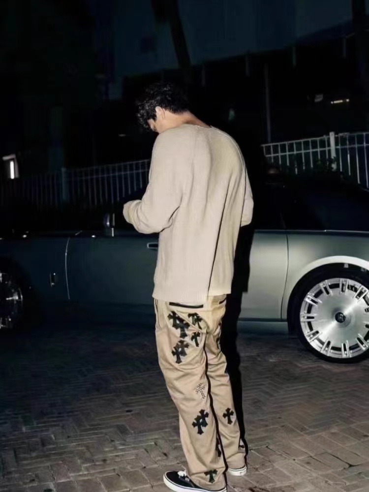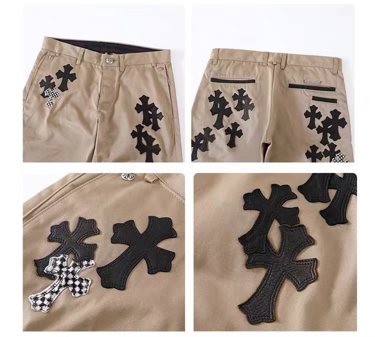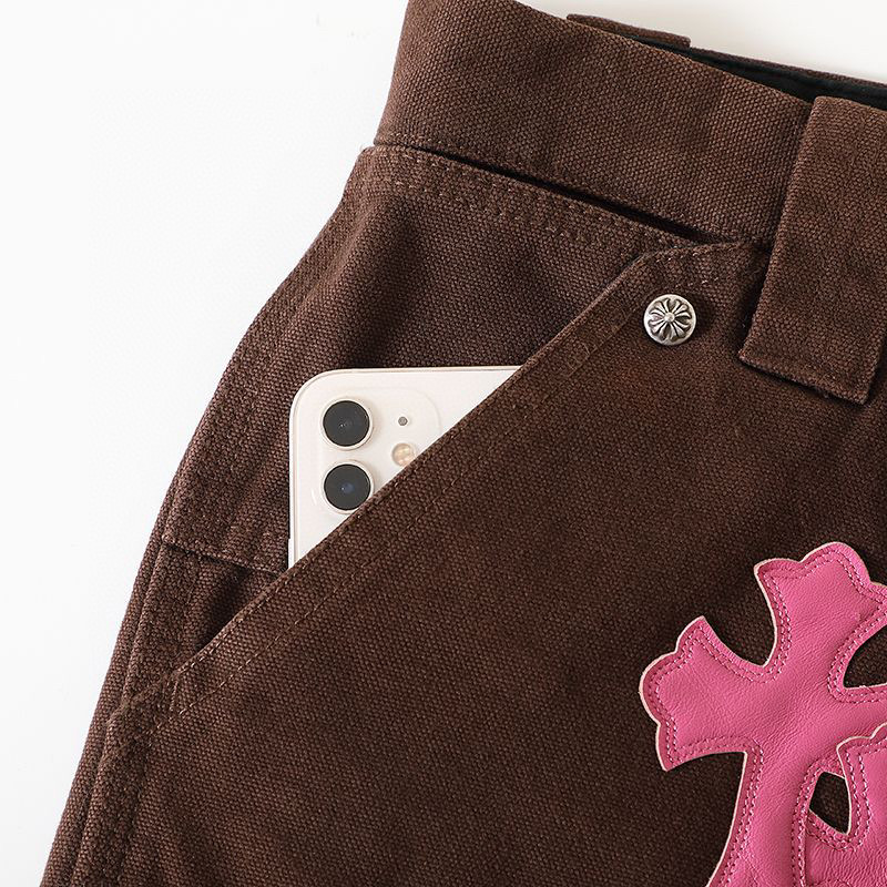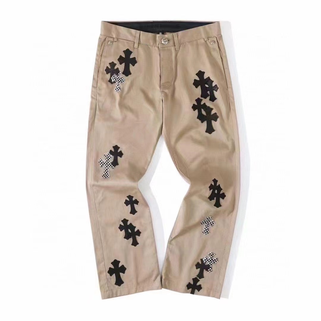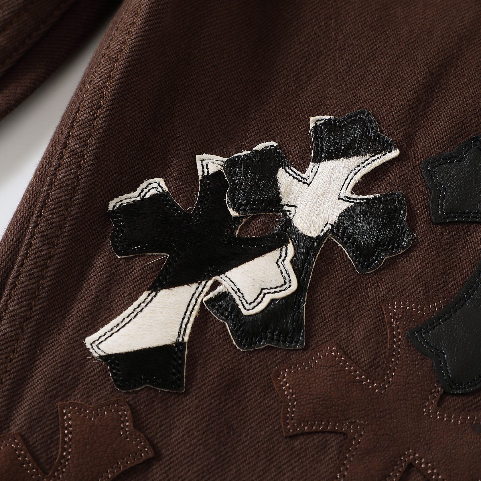 NIGO Chrome Hearts Patchwork Leather Cross Embroidered Straight Leg Aged High Street Loose Jeans Pants #nigo96918