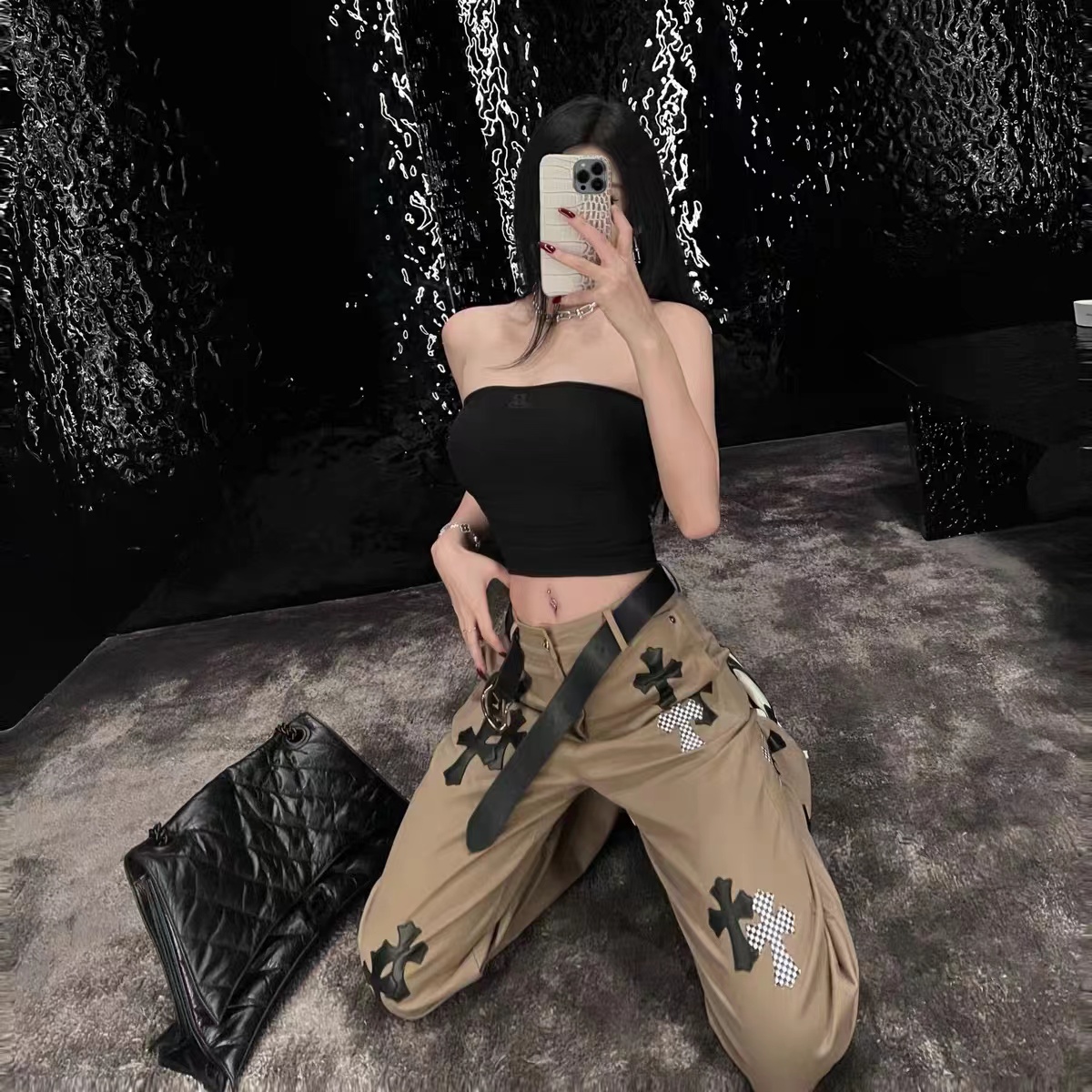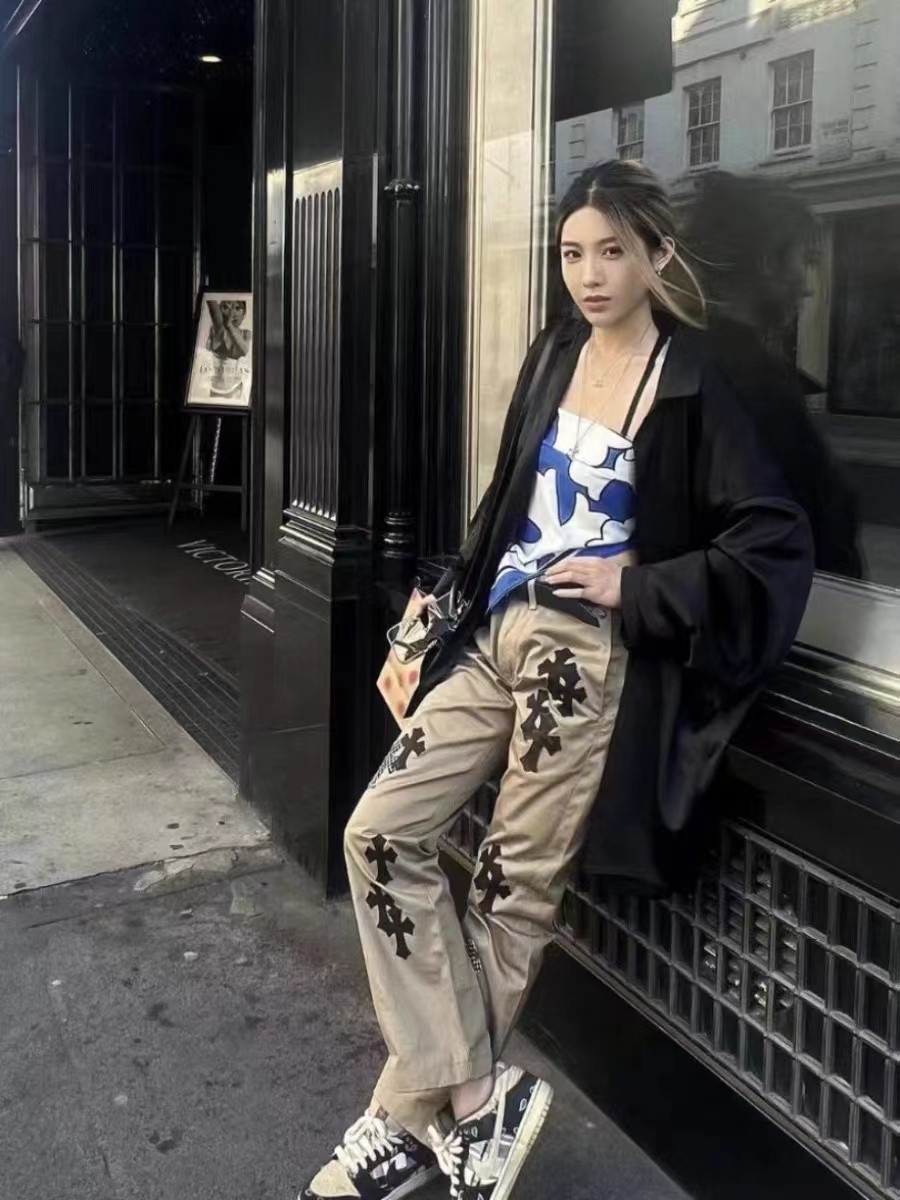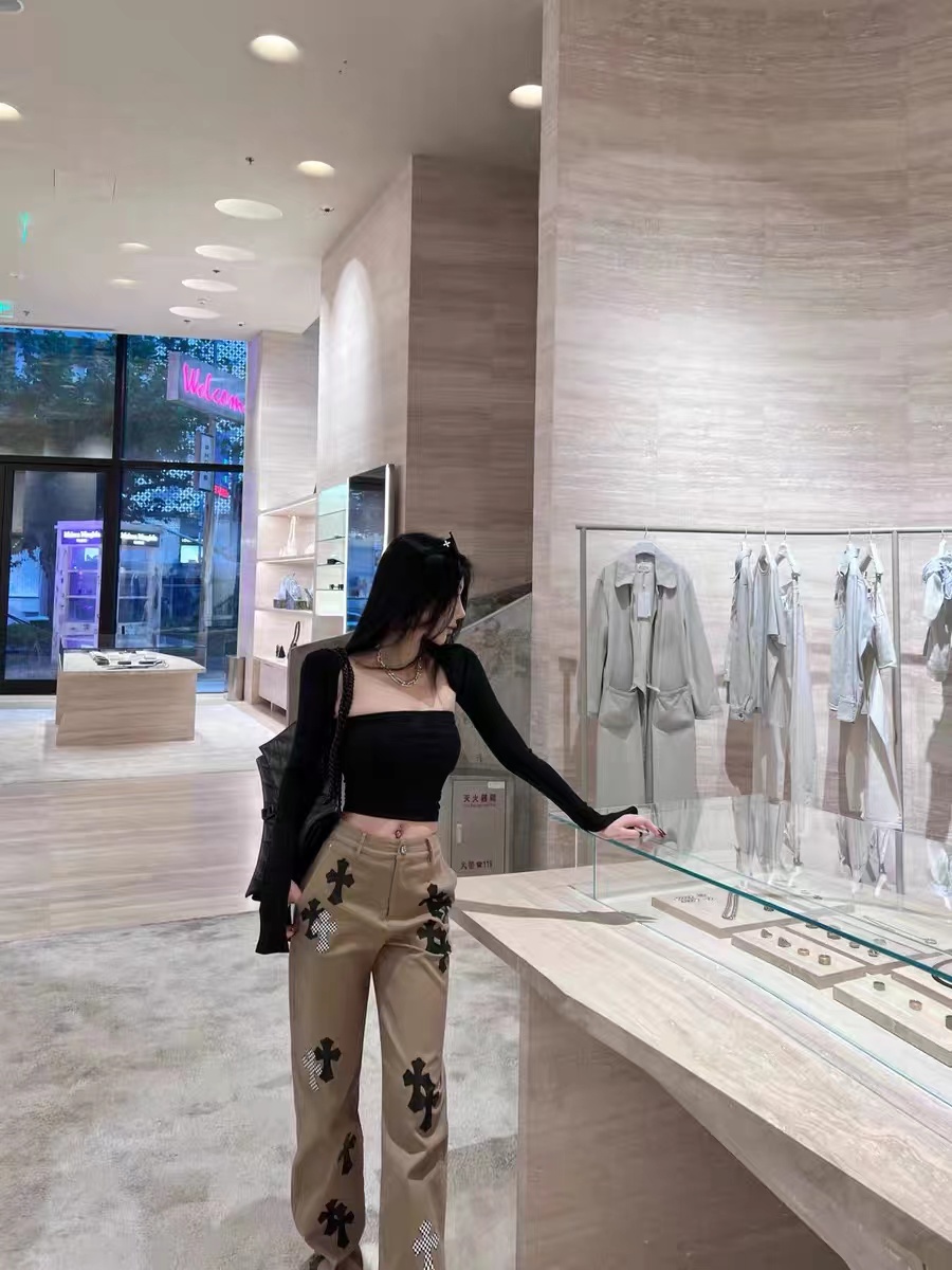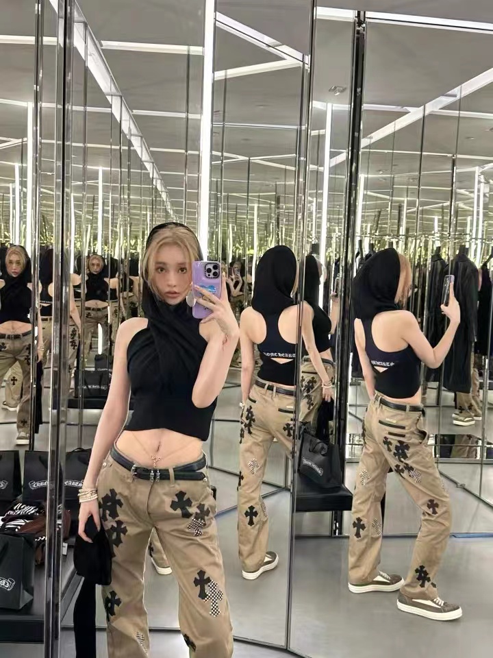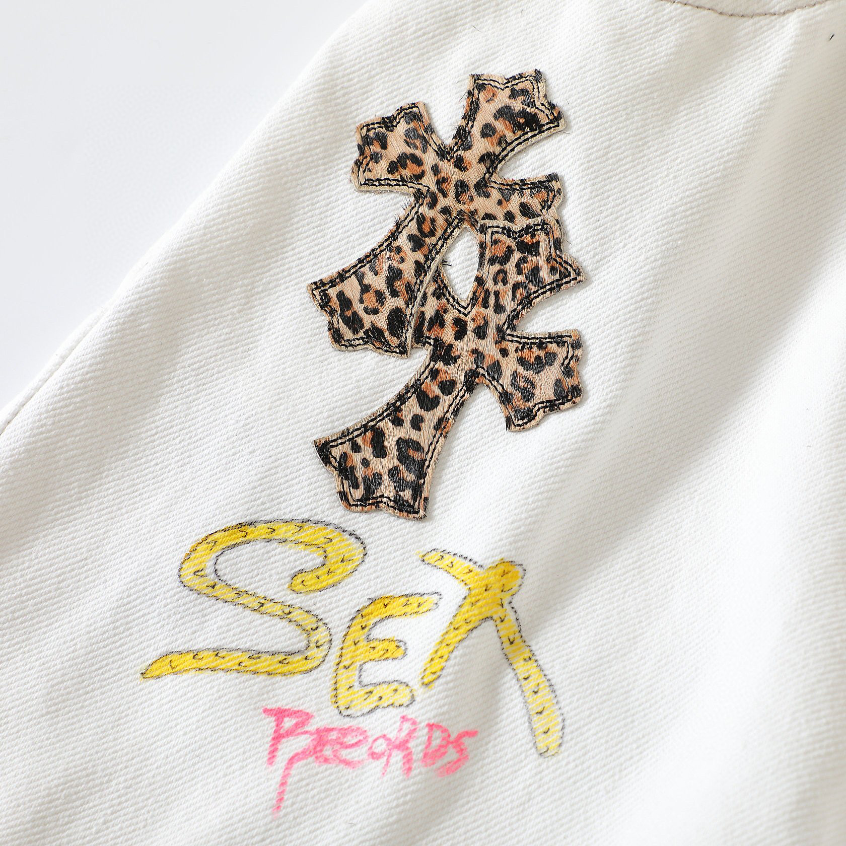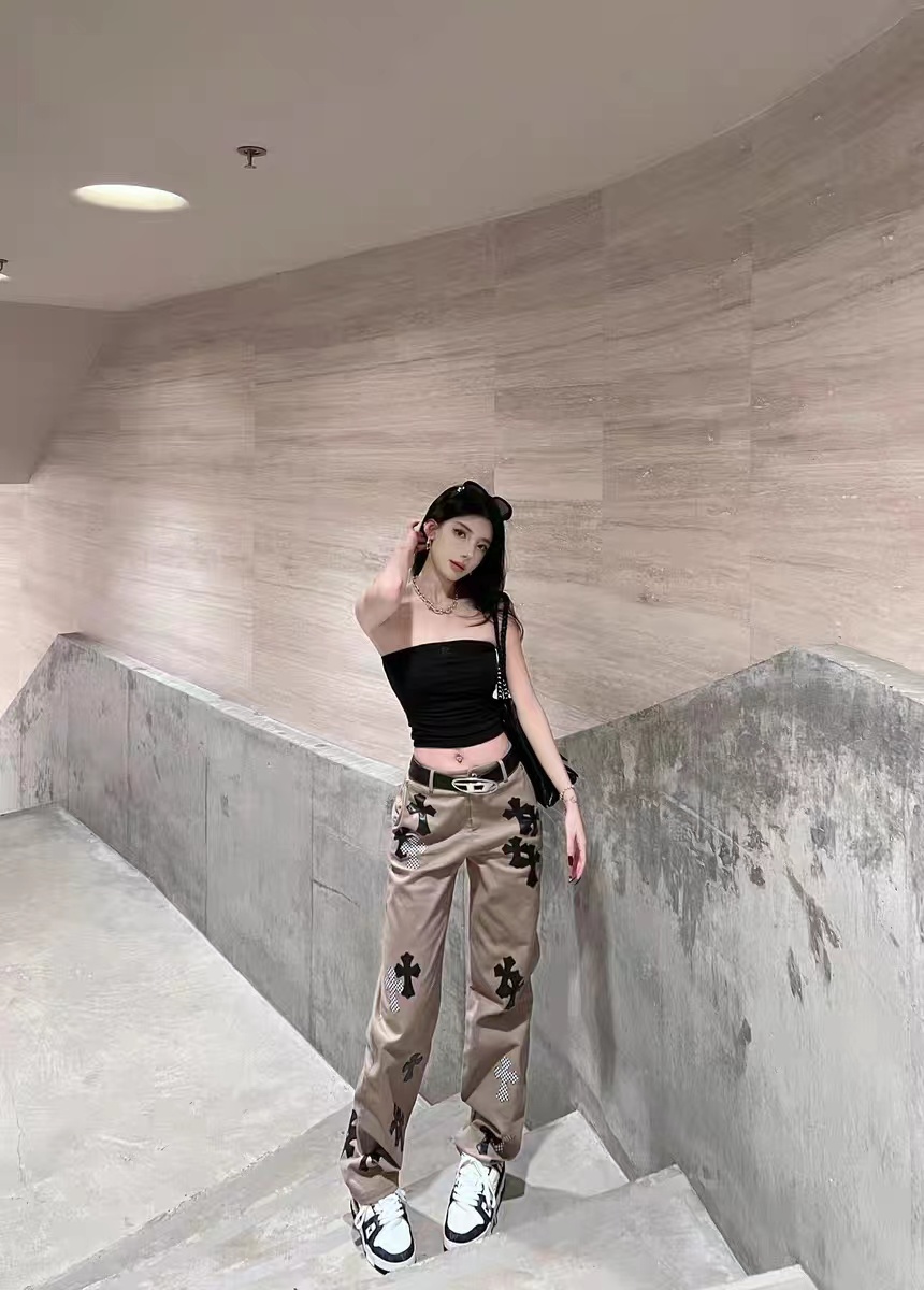 NIGO Chrome Hearts Patchwork Leather Cross Embroidered Straight Leg Aged High Street Loose Jeans Pants #nigo96918