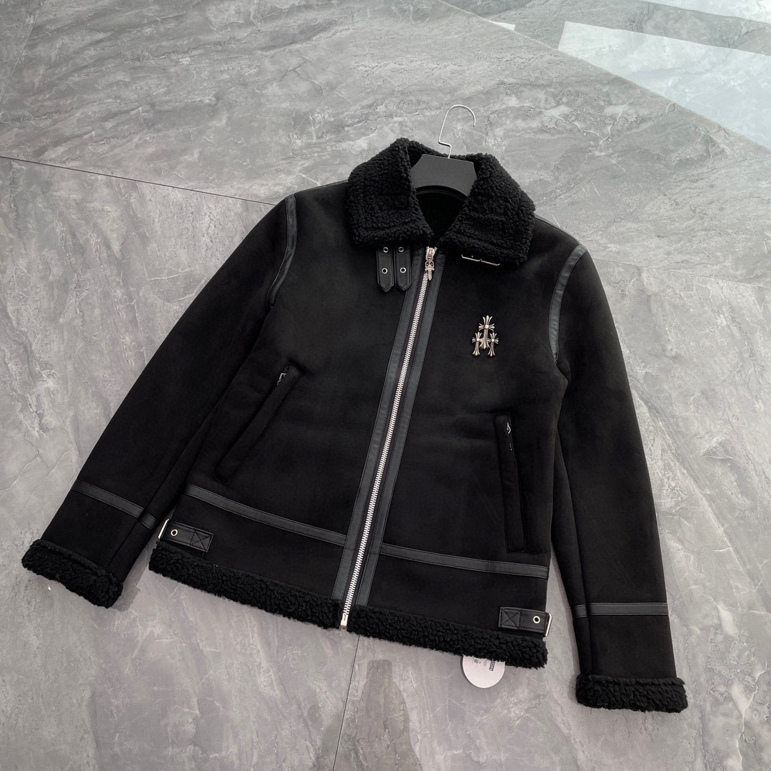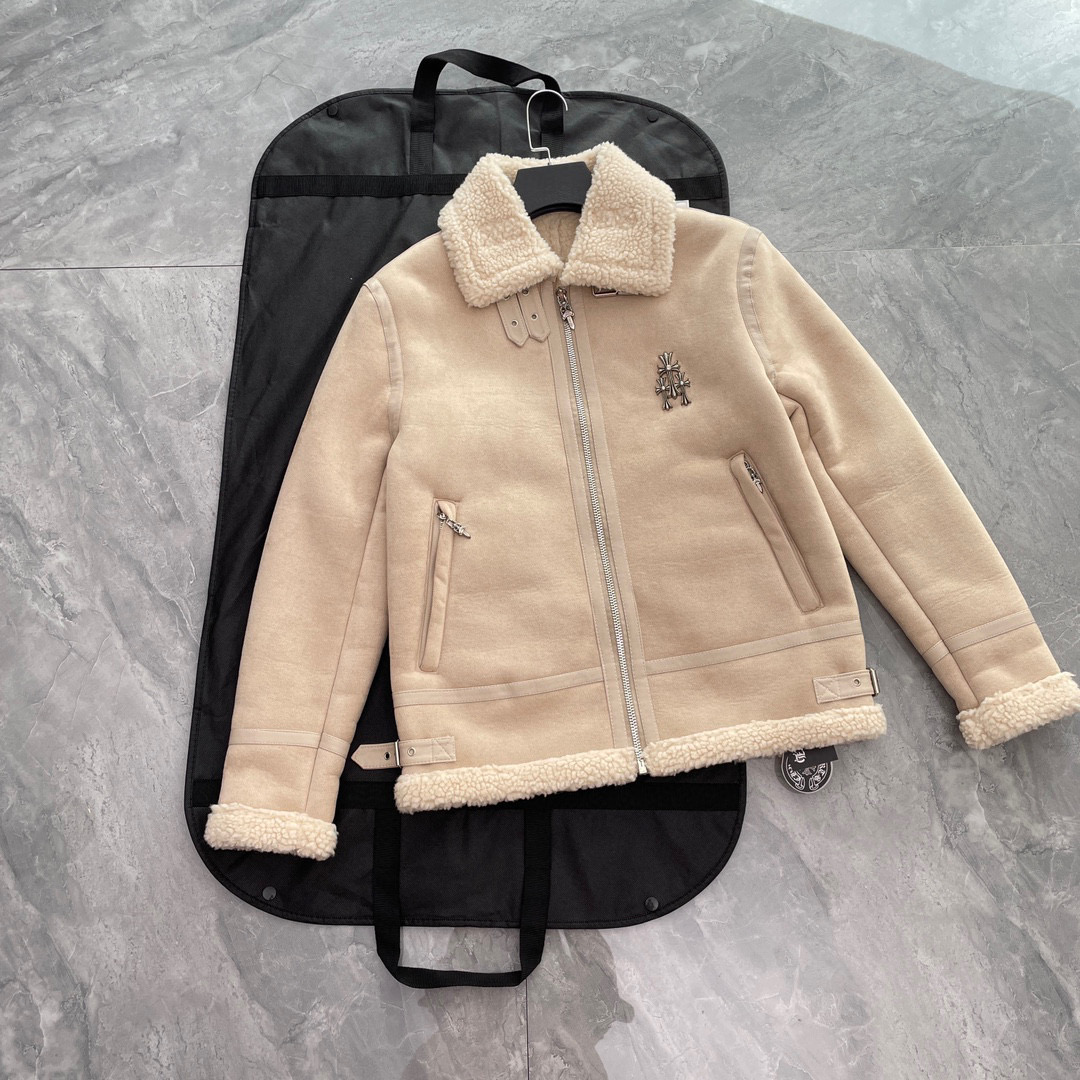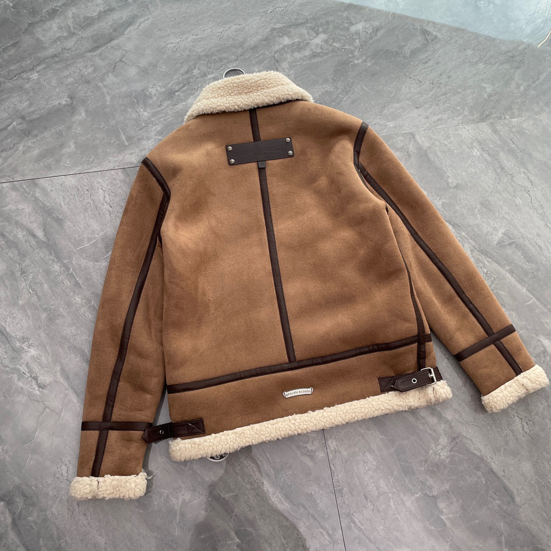 NIGO Chrome Hearts Men's Winter Suede Wool Lapel Zipper Solid Color Jacket #nigo96856