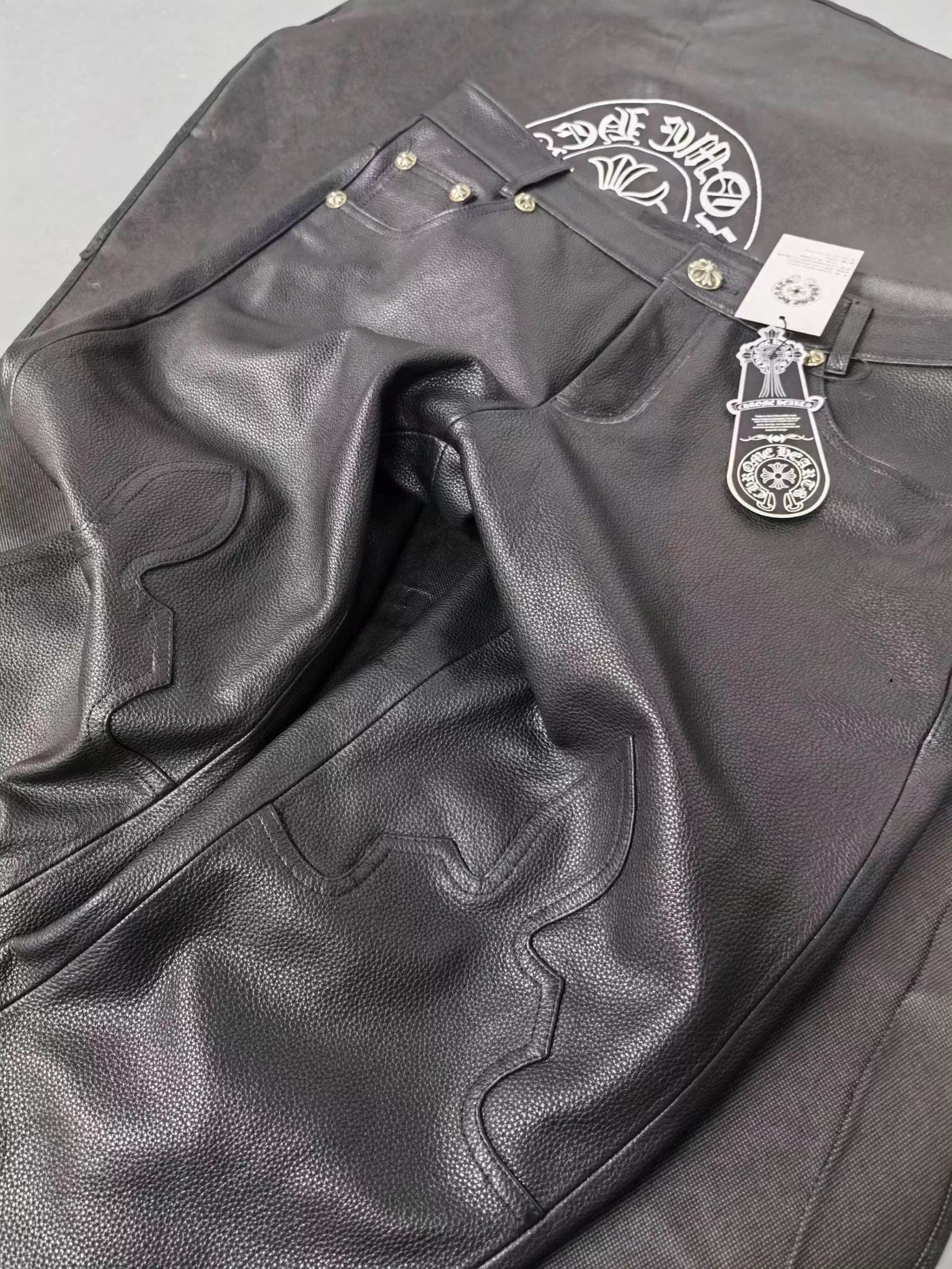 NIGO Chrome Hearts Mens Black Leather Slim Fit Trousers Pants #nigo96922