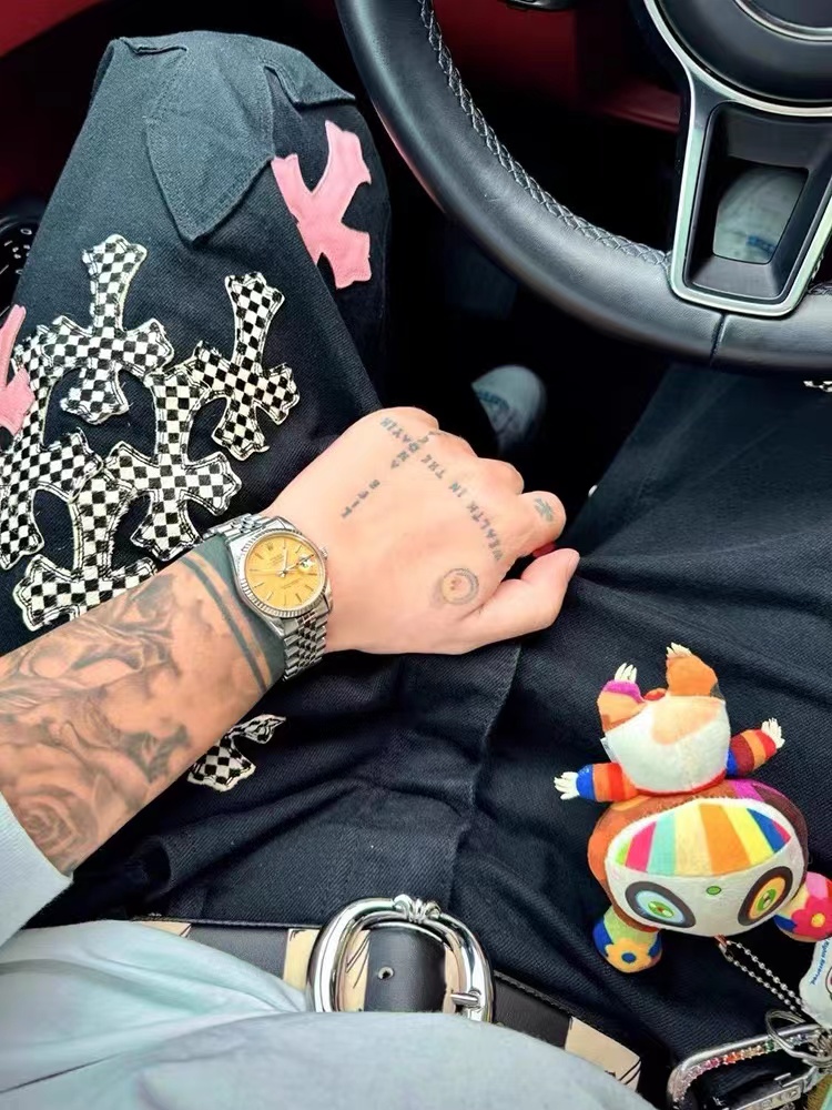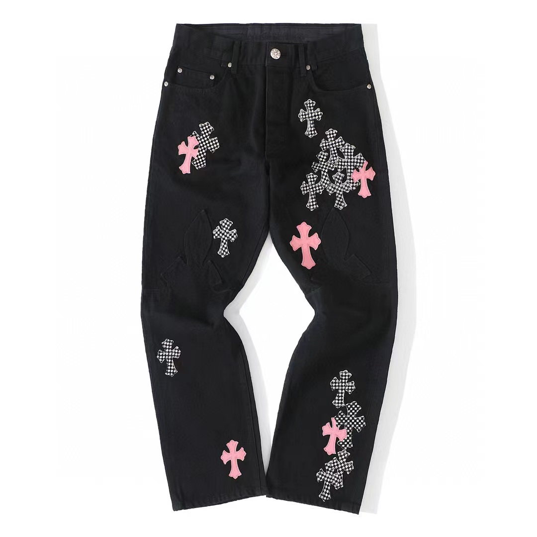 Chrome Hearts Men's Black Printed Straight Leg Denim Pants #nigo96847