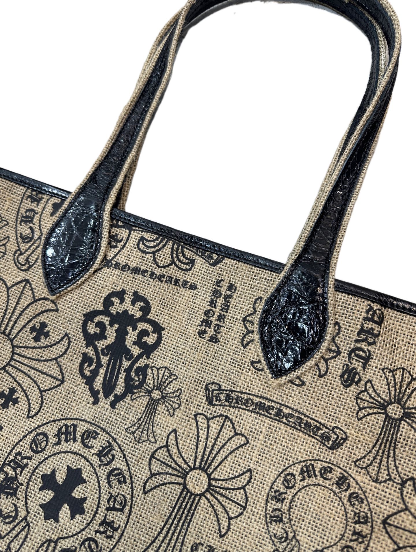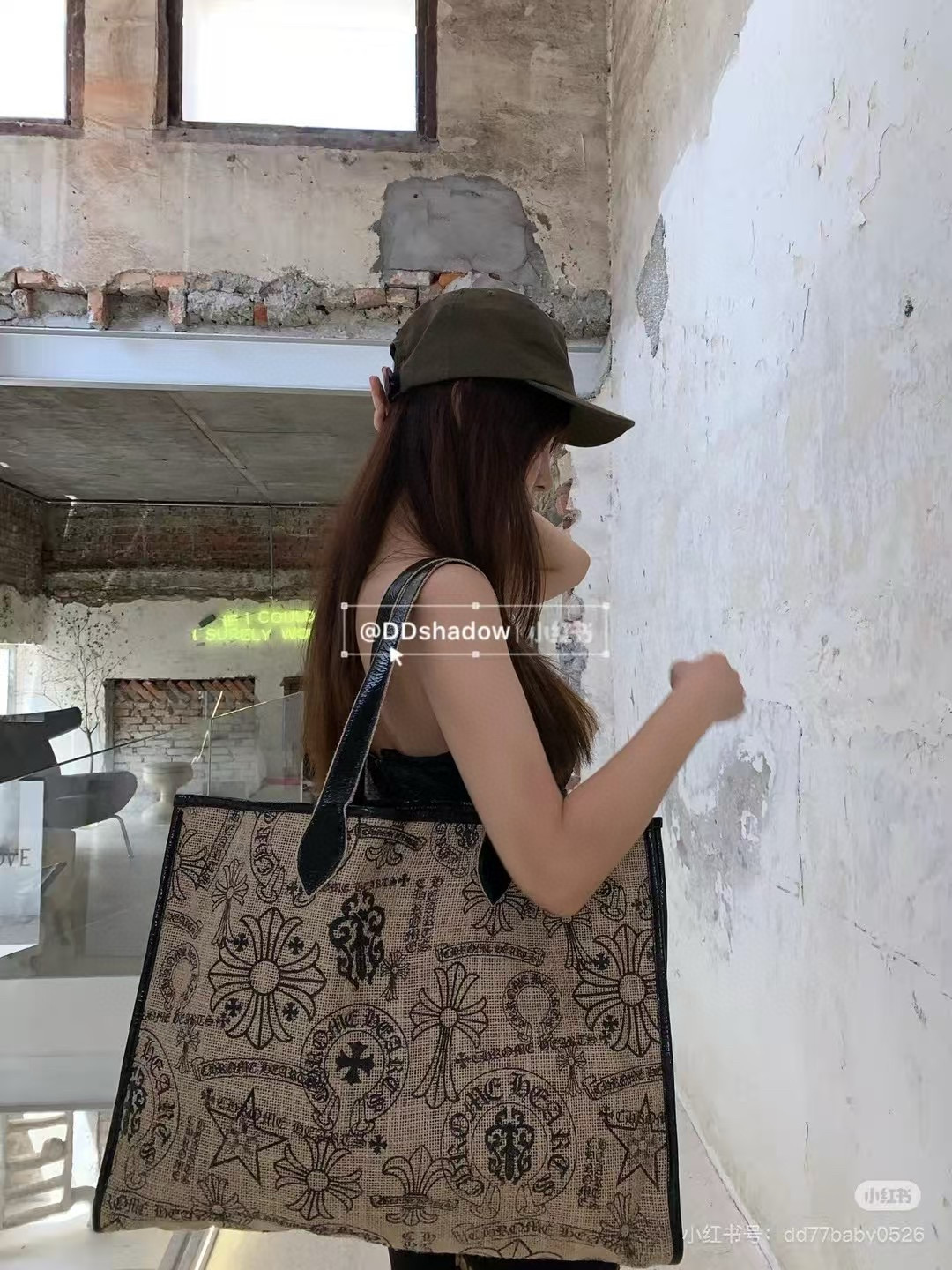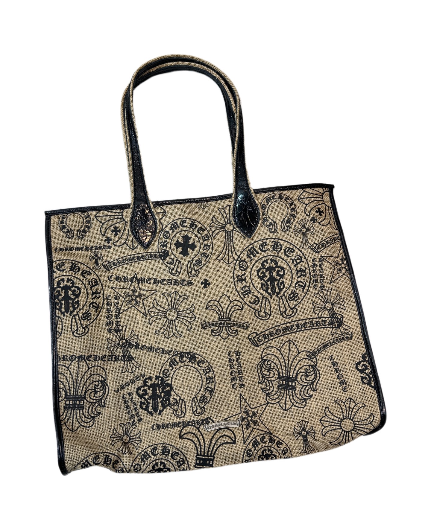 NIGO Chrome Hearts Women's All-Over Pattern Printed Straw and Leather Shopping Bag Tote Bags Handbag #nigo77937