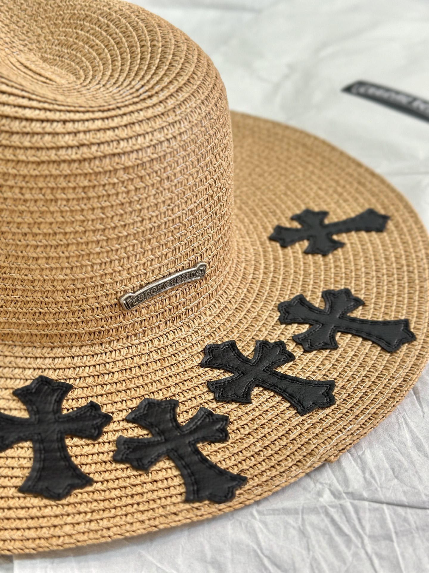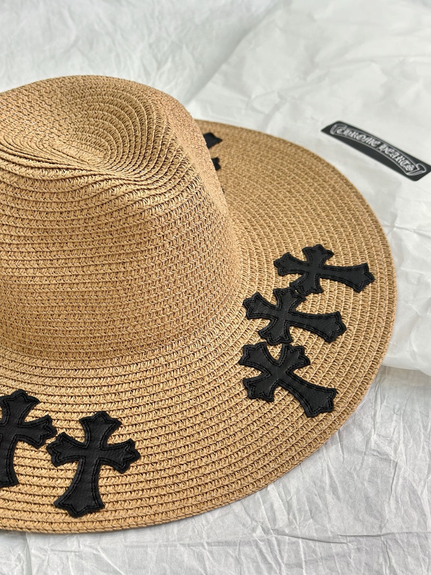 NIGO Chrome Hearts Men's And Women's Plain Colored Straw Hat With Cross Leather Logo Cap #nigo77796