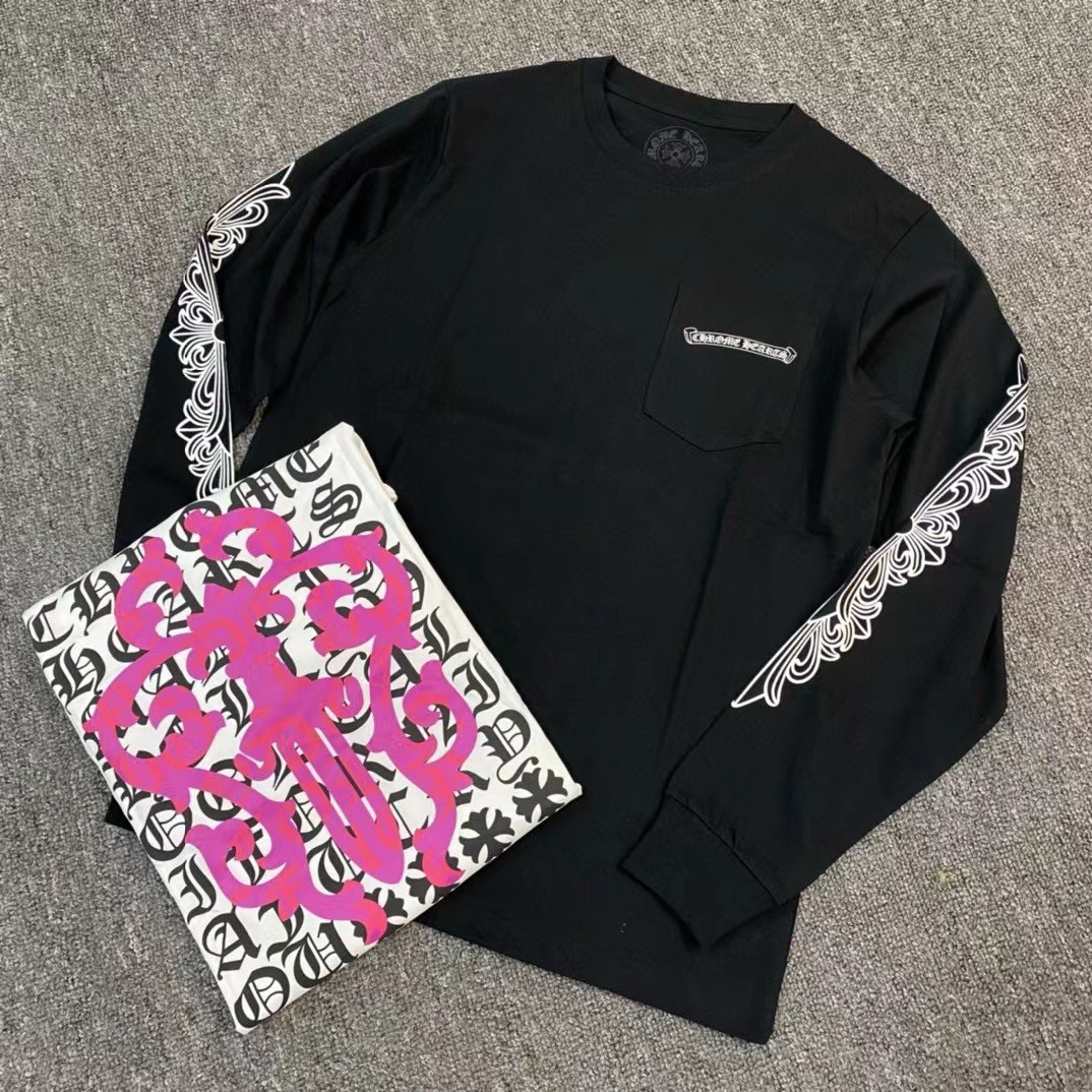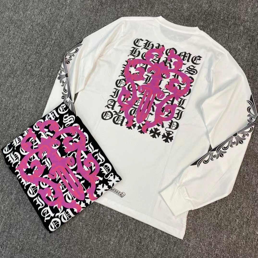 NIGO Chrome Hearts Women's Spring Autumn Cross Pattern Print Long Sleeve Round Neck Cotton T-Shirt #nigo77815