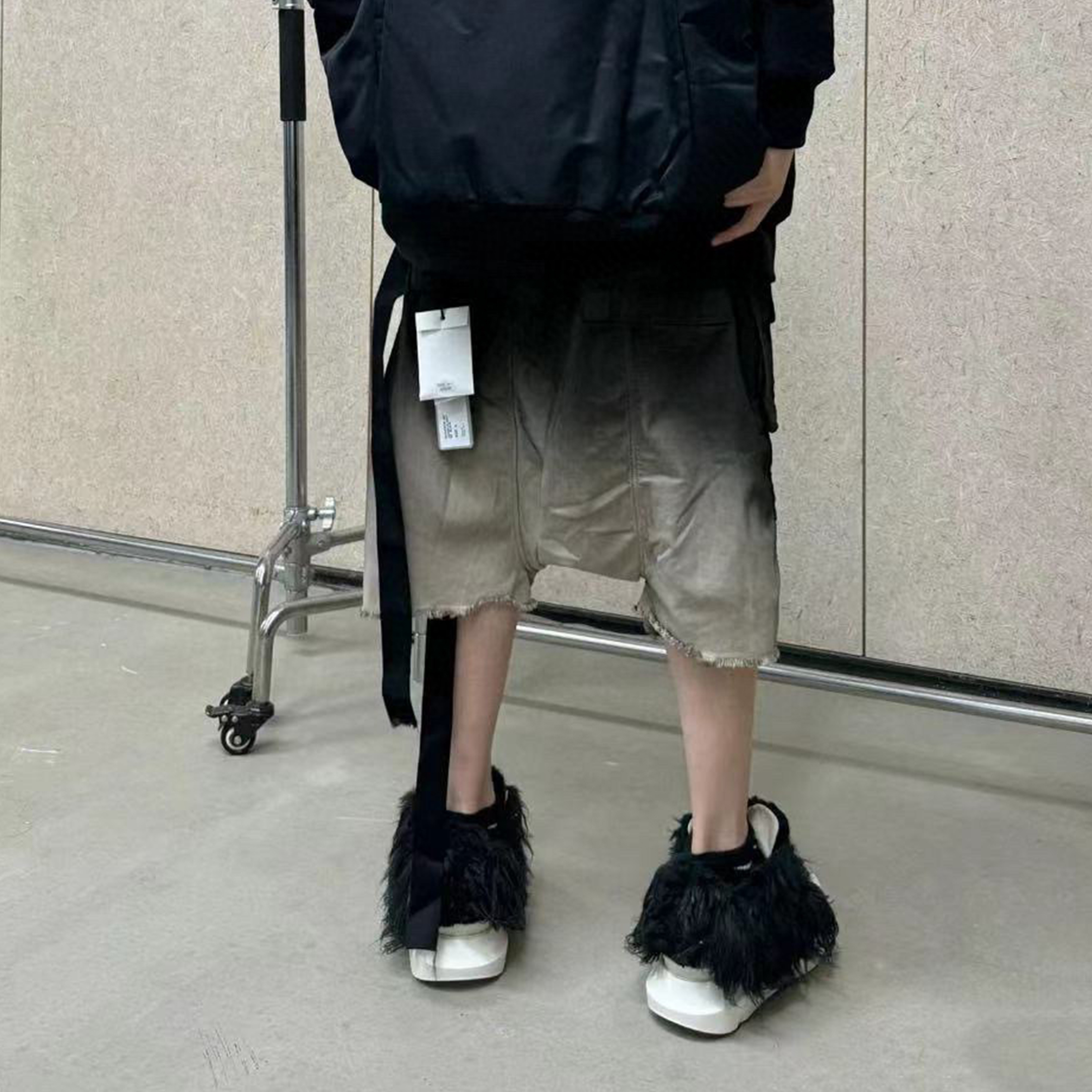 NIGO Rick Owens Dekshdw Men's Summer Flap Pocket Waxed Elastic Waist Solid Color Loose Fit Denim Shorts Ngvp #nigo1548