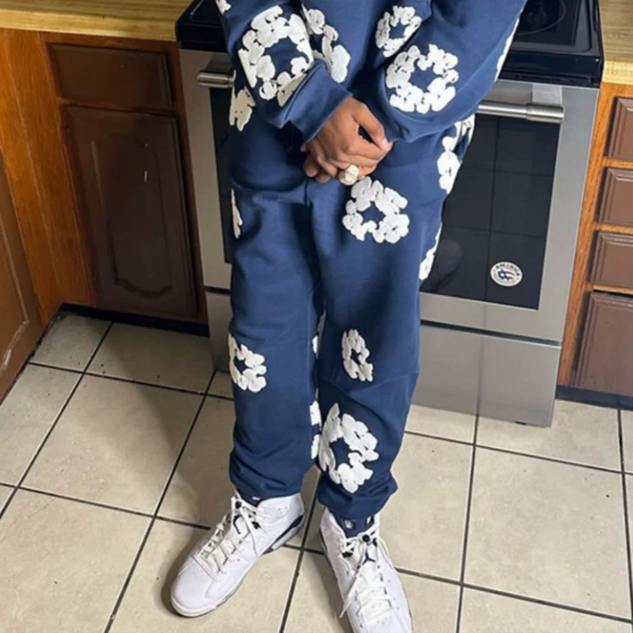 NIGO Denim Tears Men's And Women's Spring And Autumn Fashion Trends High Street Kapok Flower Casual Cotton Ribbed Loose Pants Ngvp #nigo8877