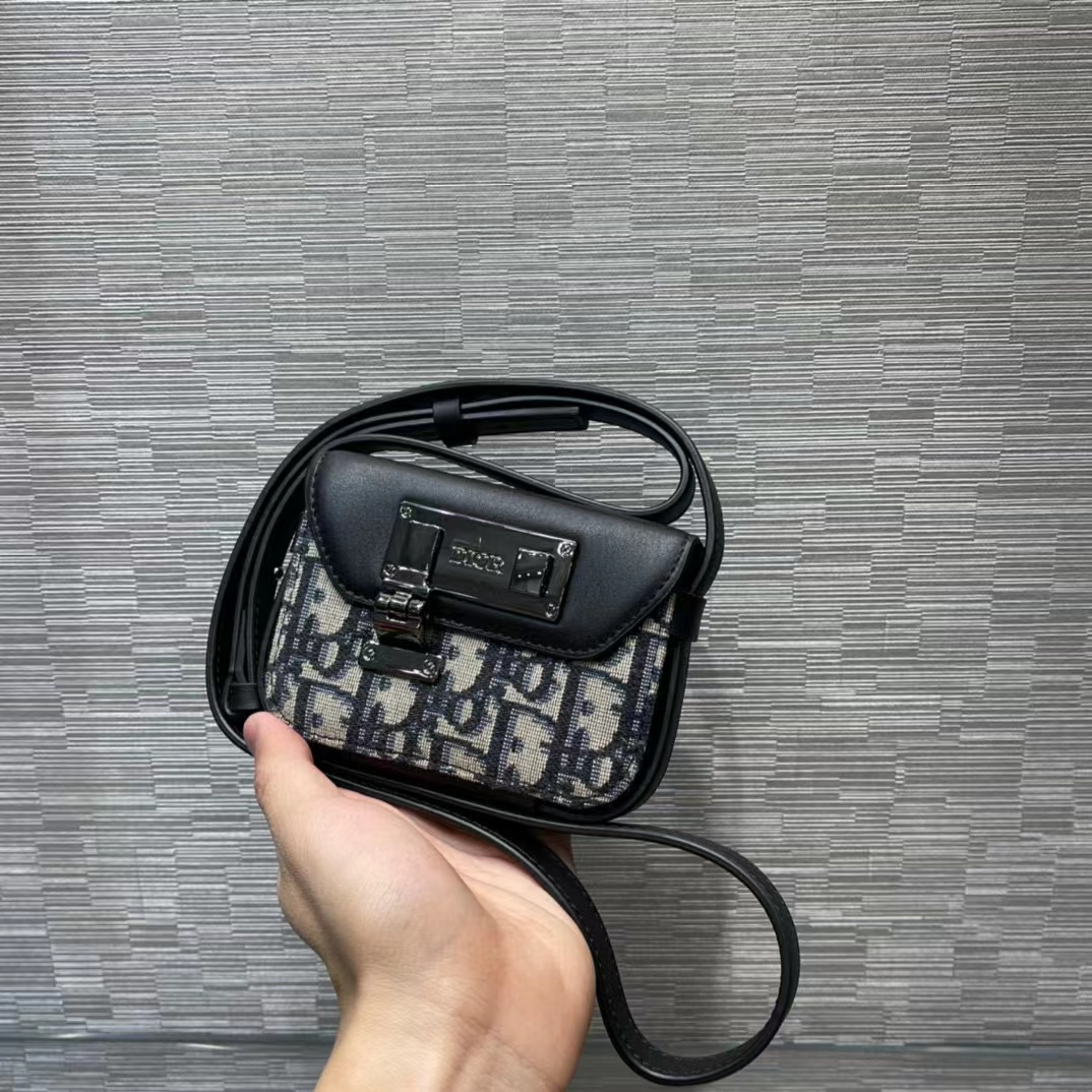 DIOR Lock Oblique Headphone Bag Storage Supplies Change Leather Shoulder Strap #nigo54611