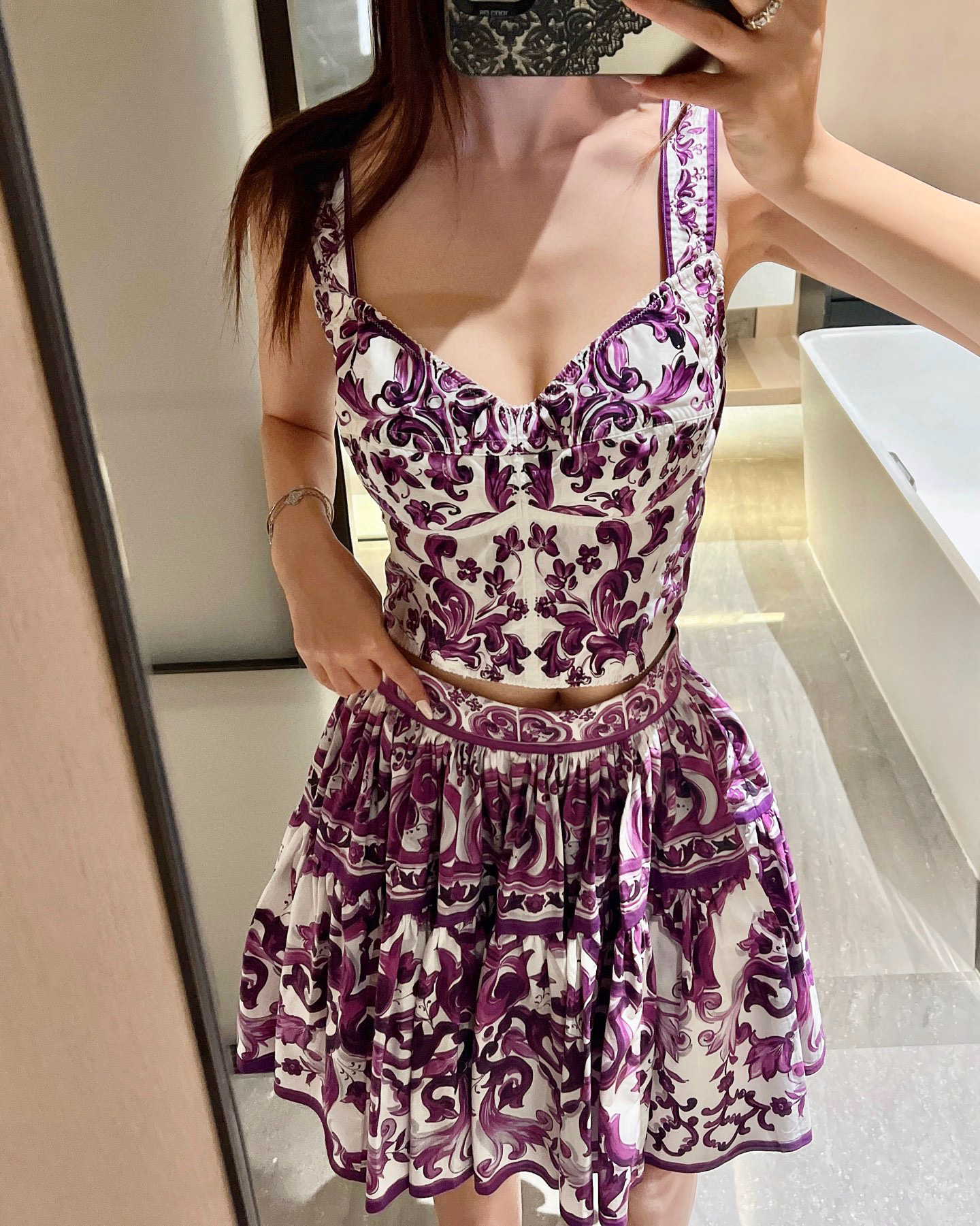 NIGO Dolce&Gabbana Women's Summer Majolica Print V-Neck Bustier Camisole Sleeveless Tank Top Vest Ngvp #nigo2319