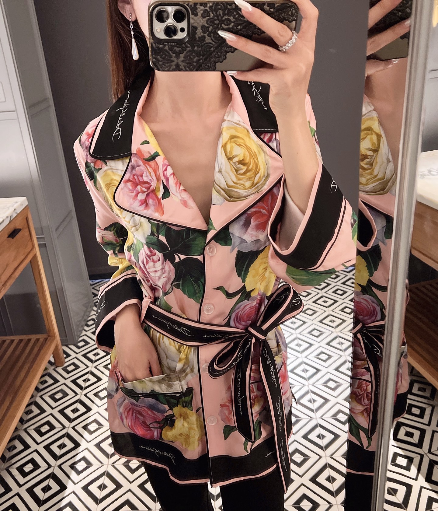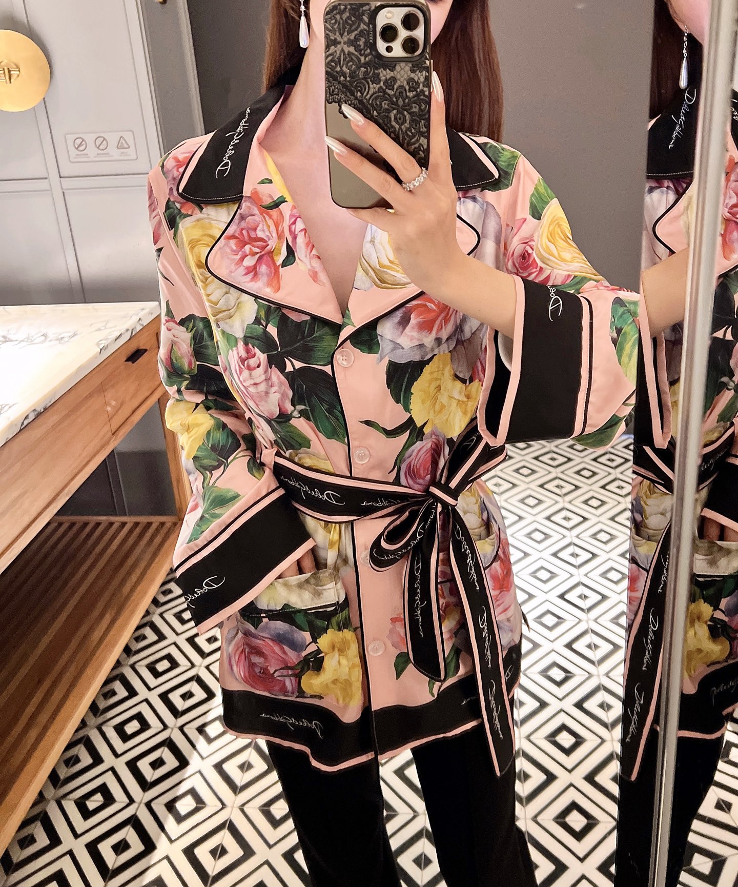 NIGO Dolce&Gabbana Women's Summer Floral Print Fitted Satin Long-Sleeve Crew Neck Dress Ngvp #nigo2375