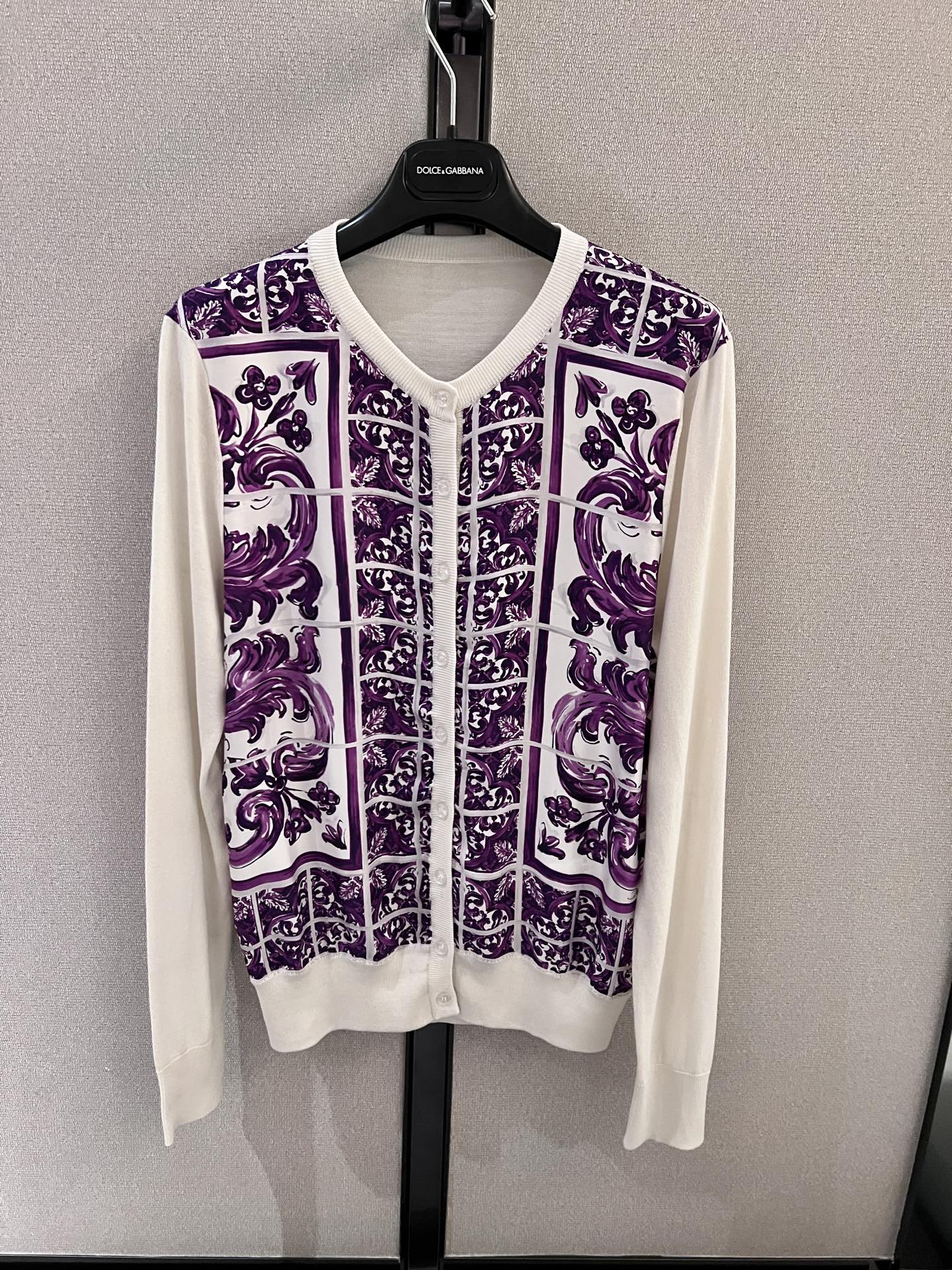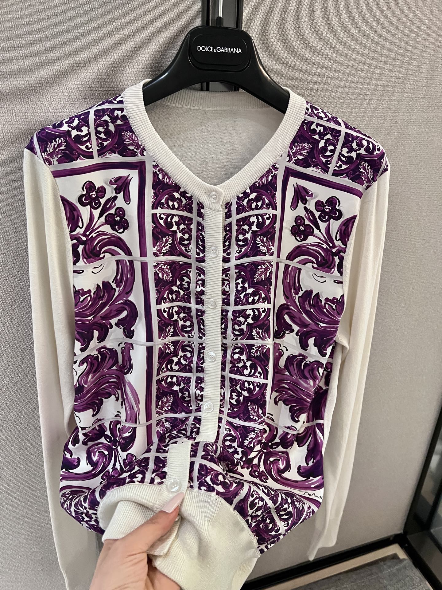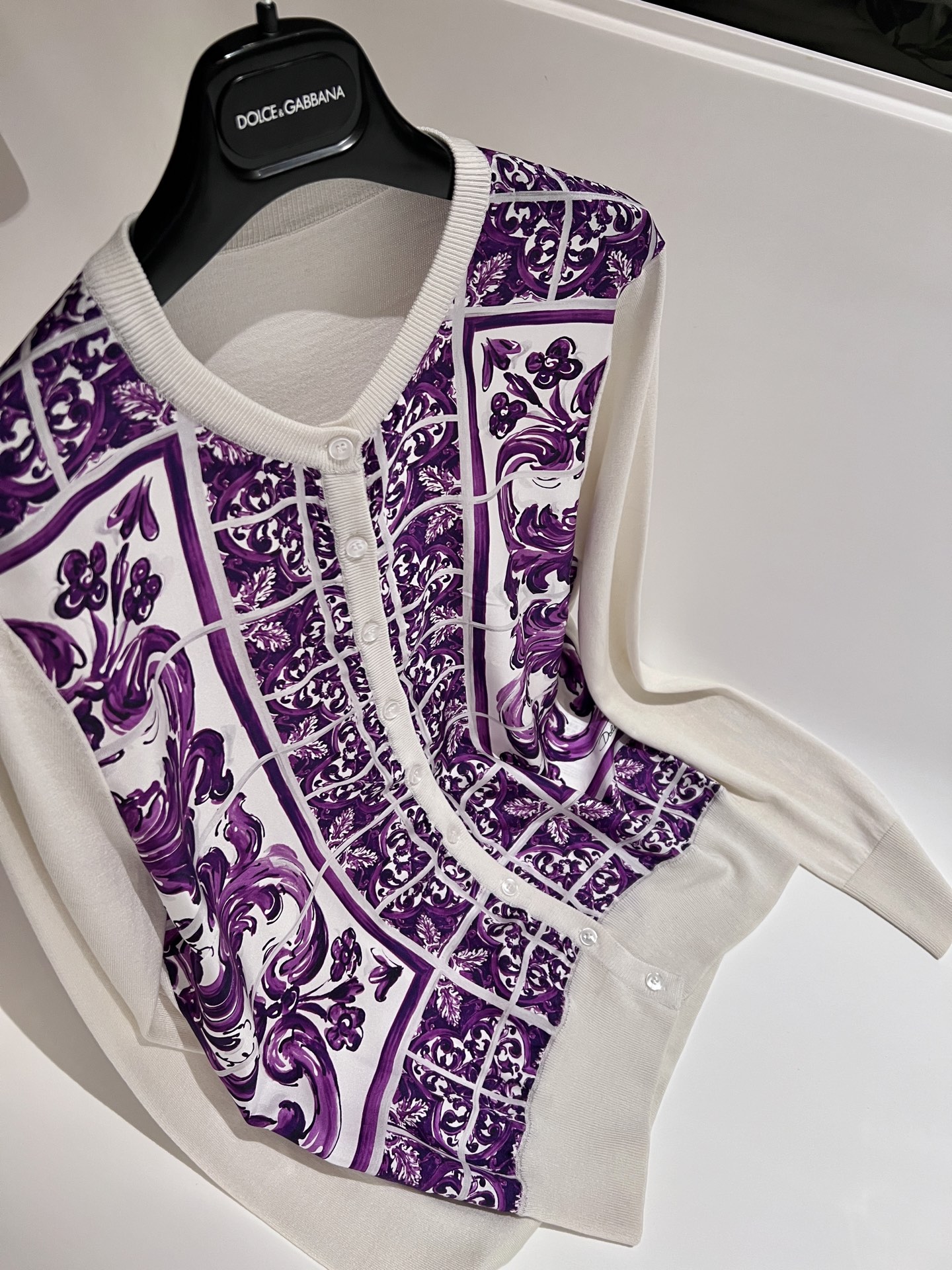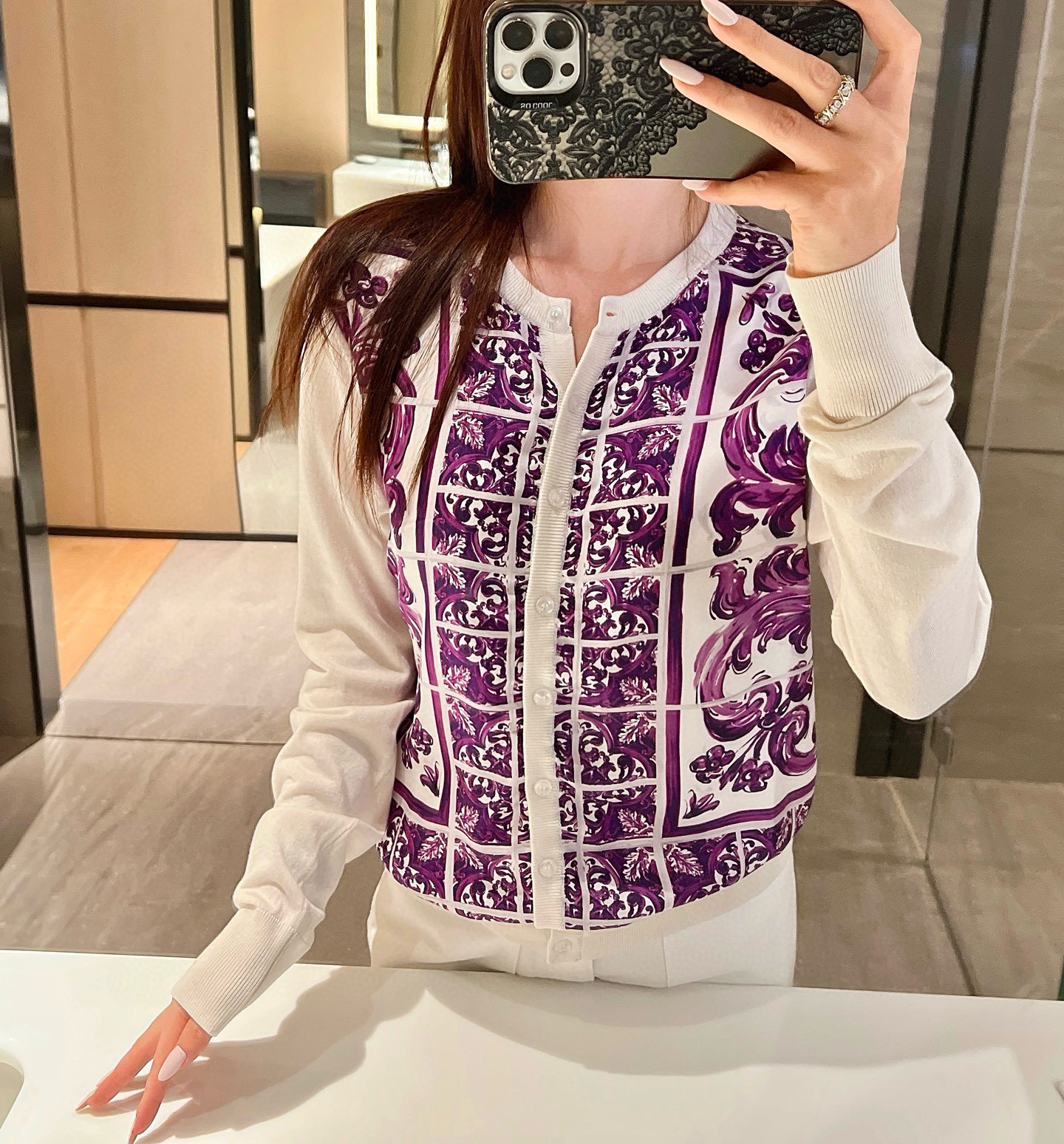 NIGO Dolce&Gabbana Majolica Printed Silk knitted Cardigan Women's Spring Summer Purple Fashion Elegant Single Breasted Sweater Ngvp #nigo2427