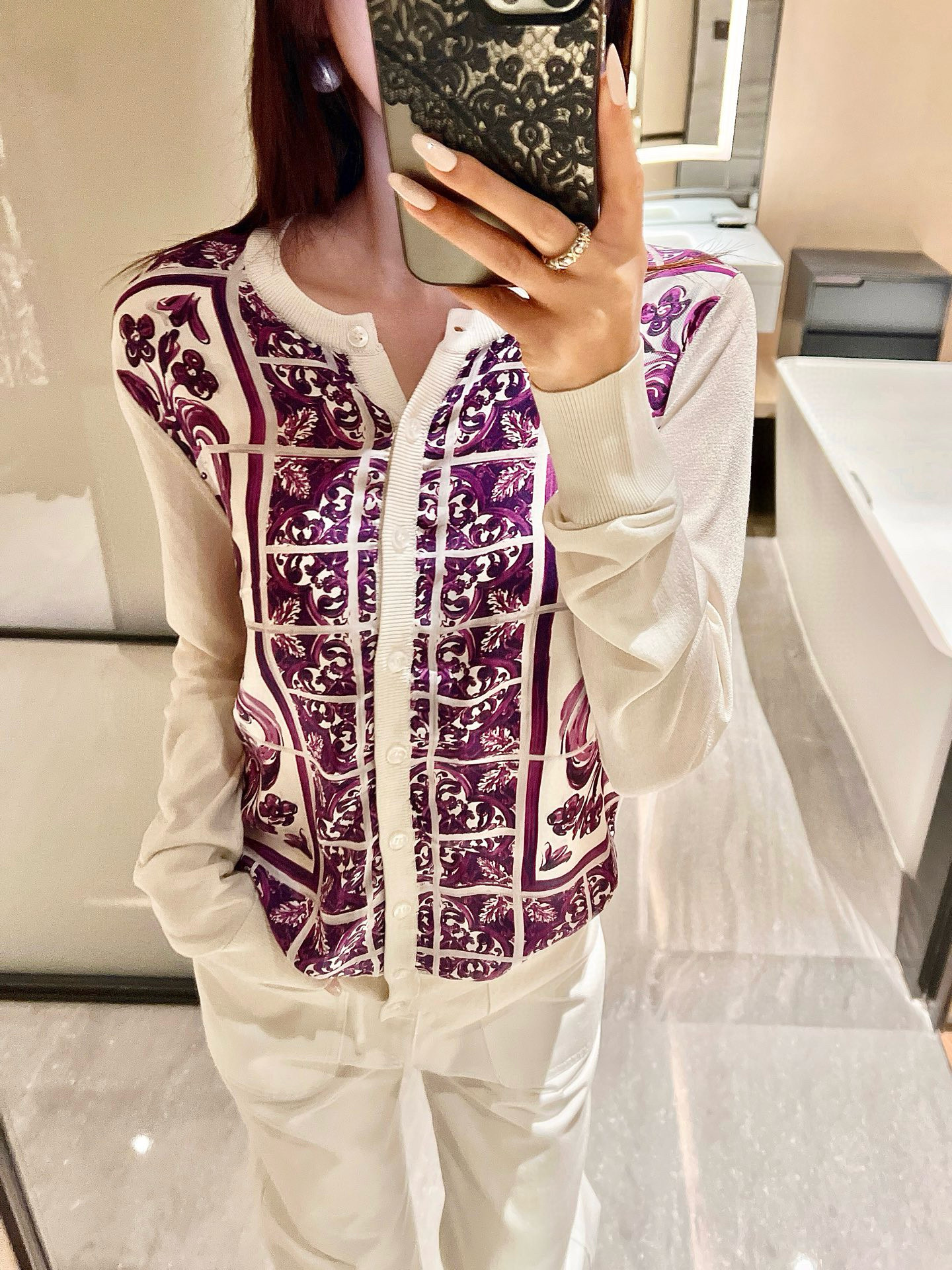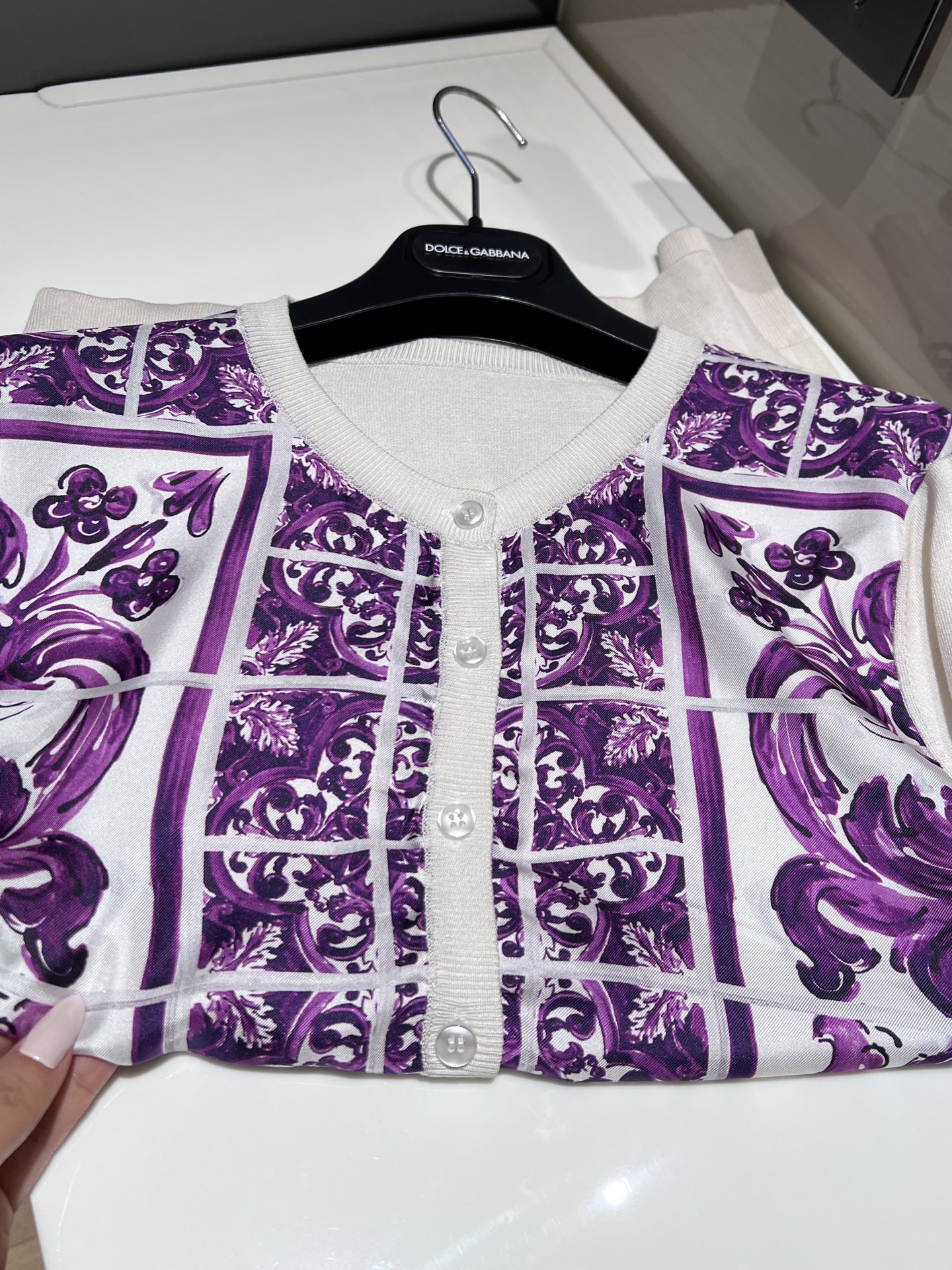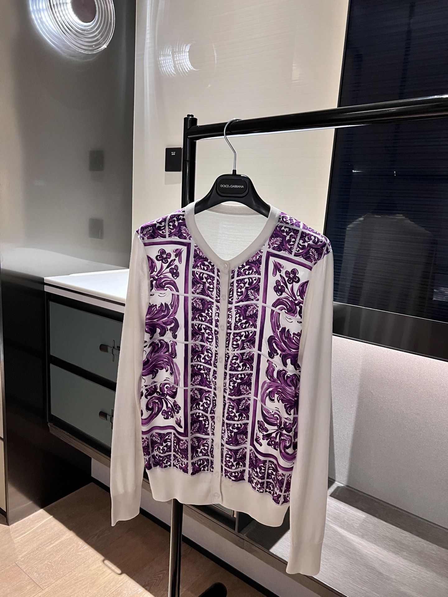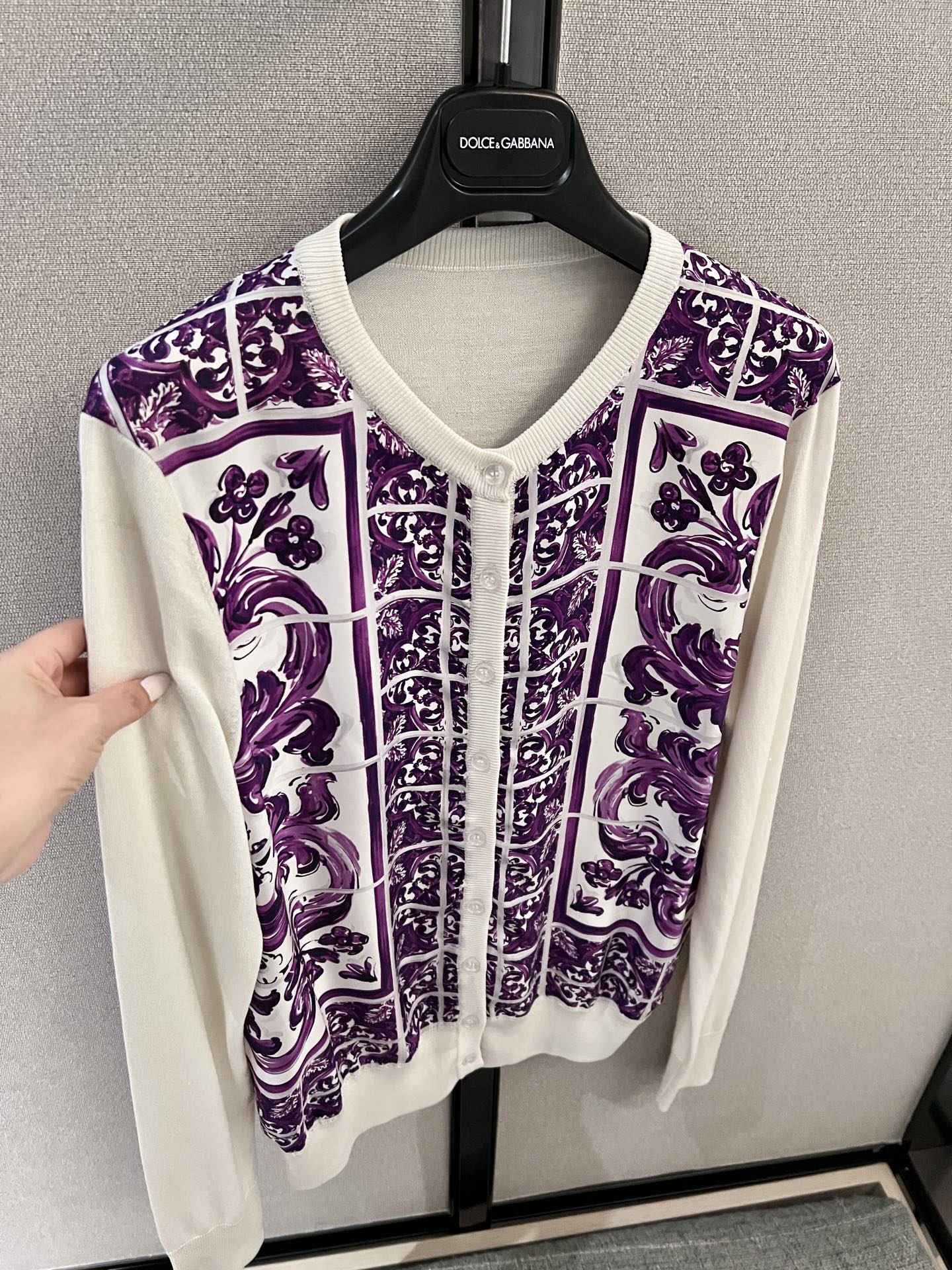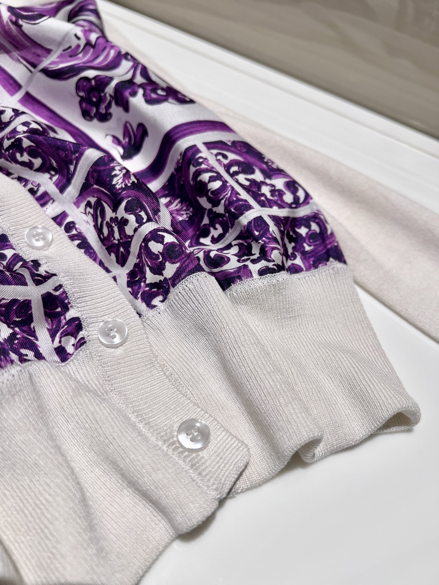 NIGO Dolce&Gabbana Majolica Printed Silk knitted Cardigan Women's Spring Summer Purple Fashion Elegant Single Breasted Sweater Ngvp #nigo2427