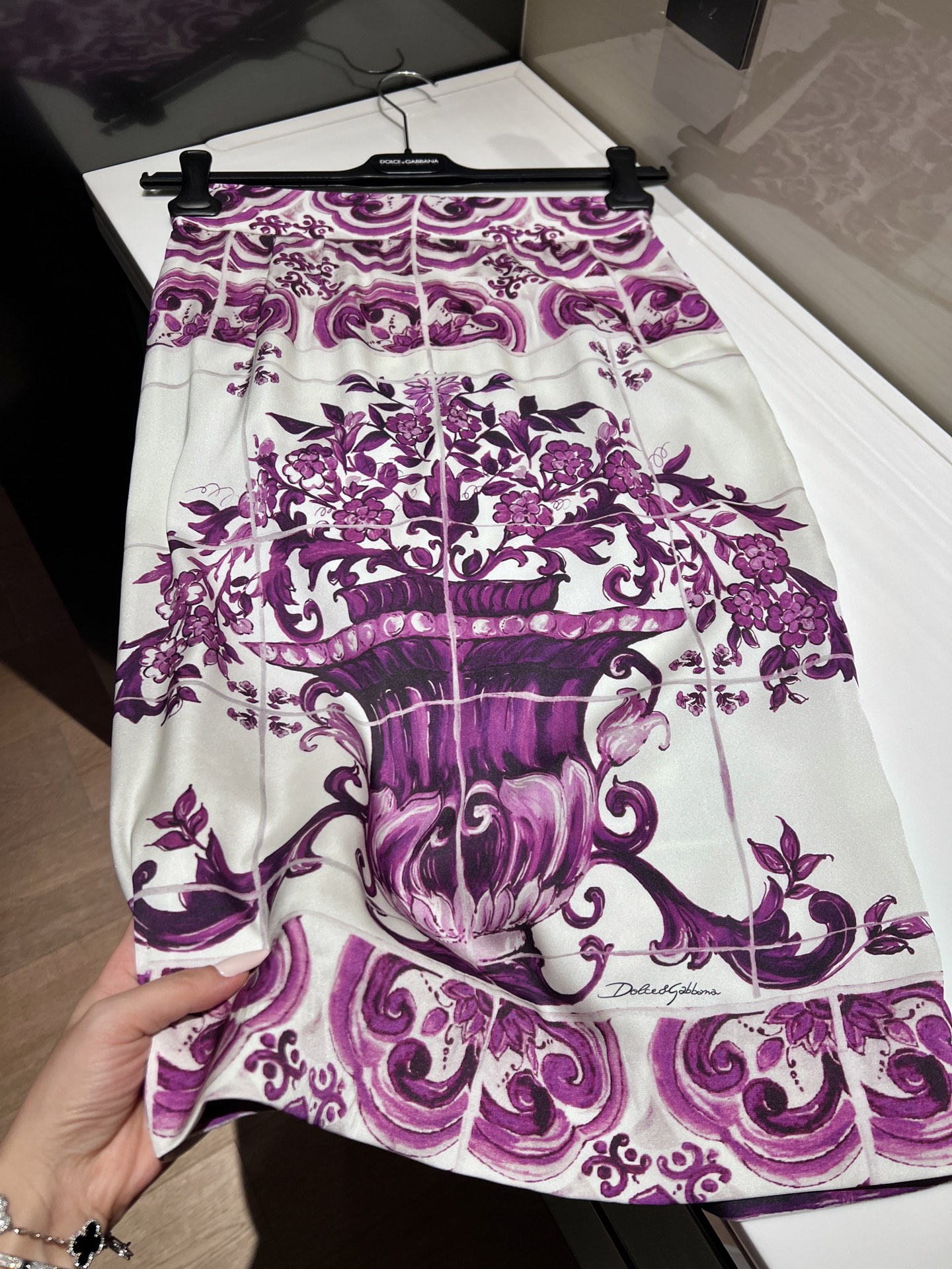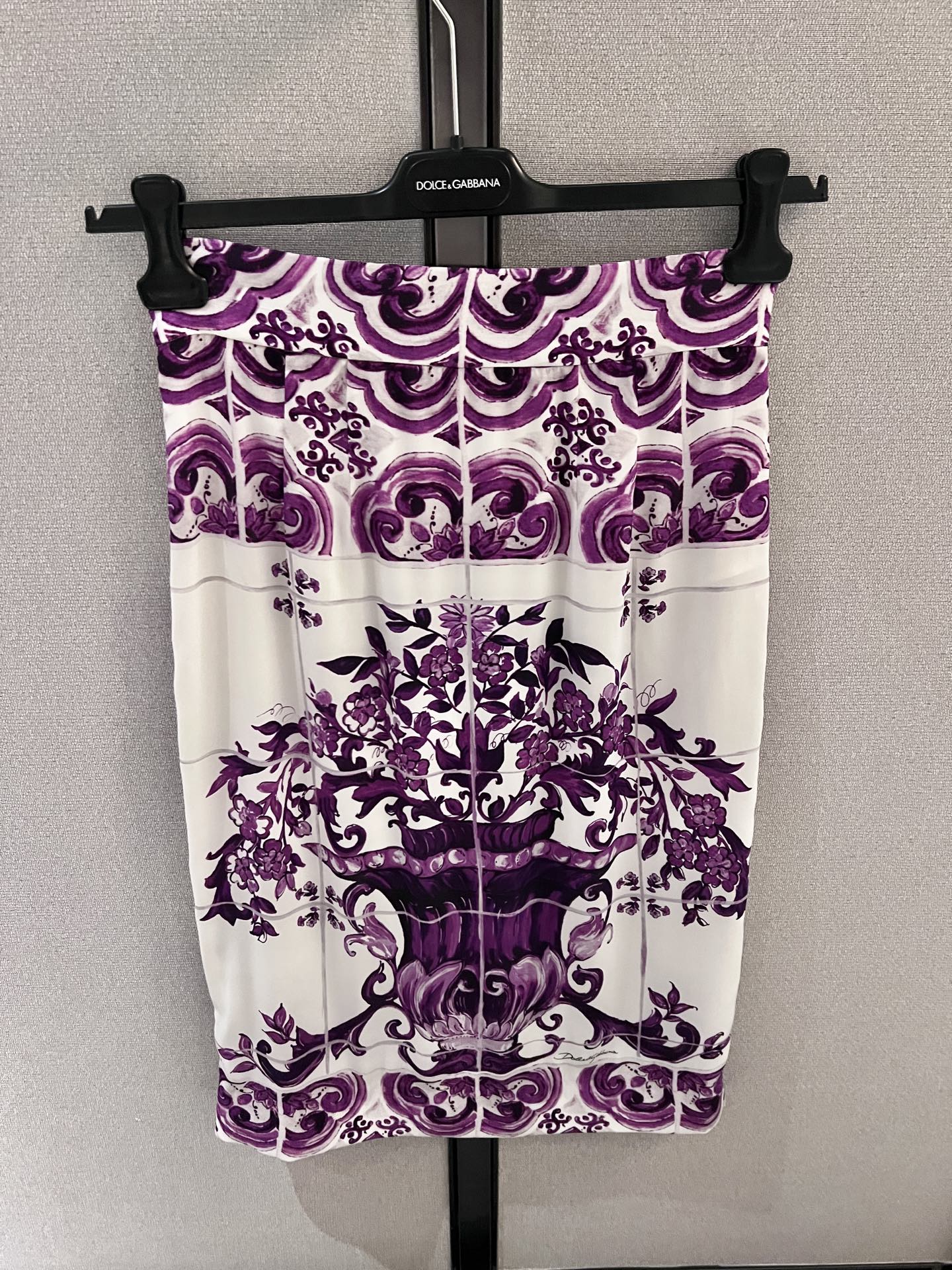 NIGO Dolce&Gabbana Majolica Printed Tight Half Skirt Women's Spring Summer Purple Silk Midi Half Skirt Ngvp #nigo2426